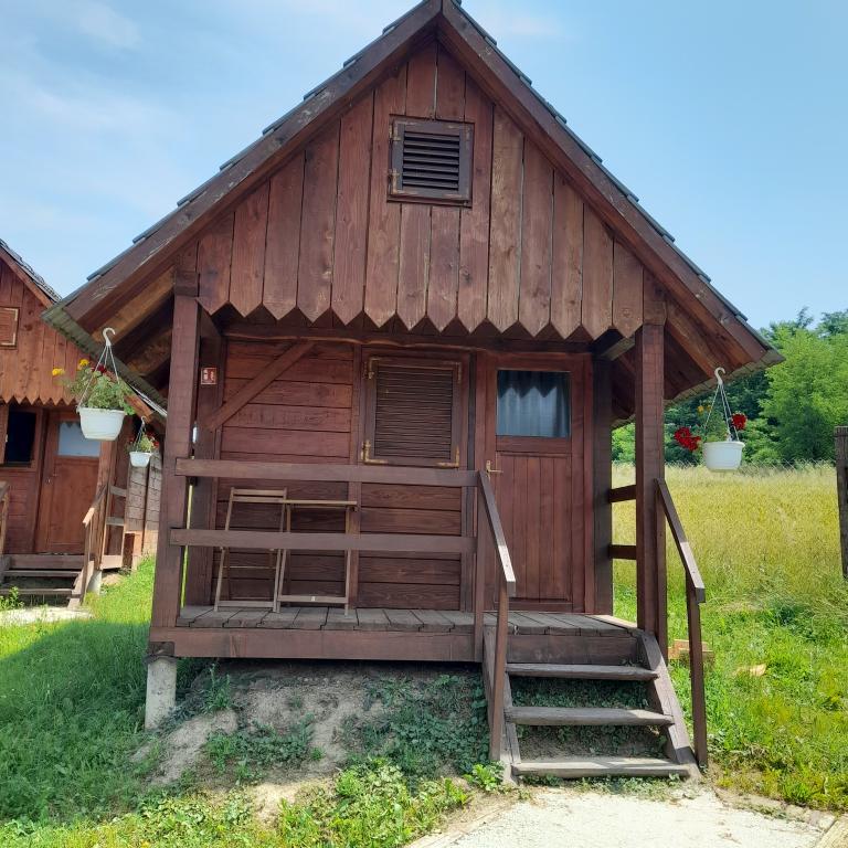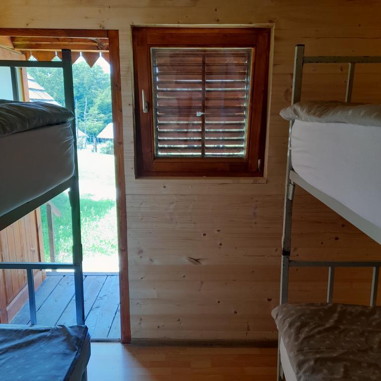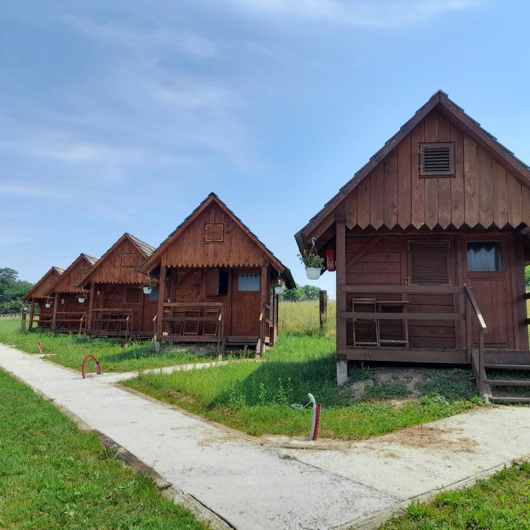 Domy wykonane są z naturalnych materiałów – drewna. Zbudowane są w tradycyjny sposób i mają wymiary 4 x 3 m. Dom może pomieścić 5 osób dorosłych i dwoje dzieci do 15 lat lub 3 osoby dorosłe. Każdy dom posiada taras z widokiem. Toaleta i prysznice znajdują się w centralnym węźle sanitarnym, zaledwie 20 metrów od domu. Położone są w otoczeniu pięknej przyrody, w bezpośrednim sąsiedztwie parku linowego.