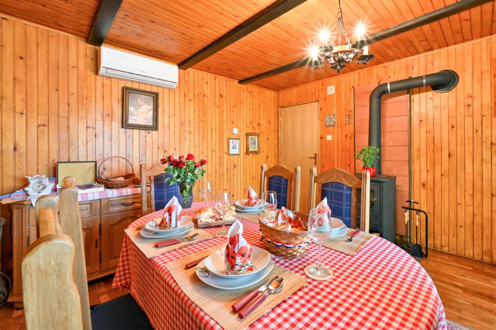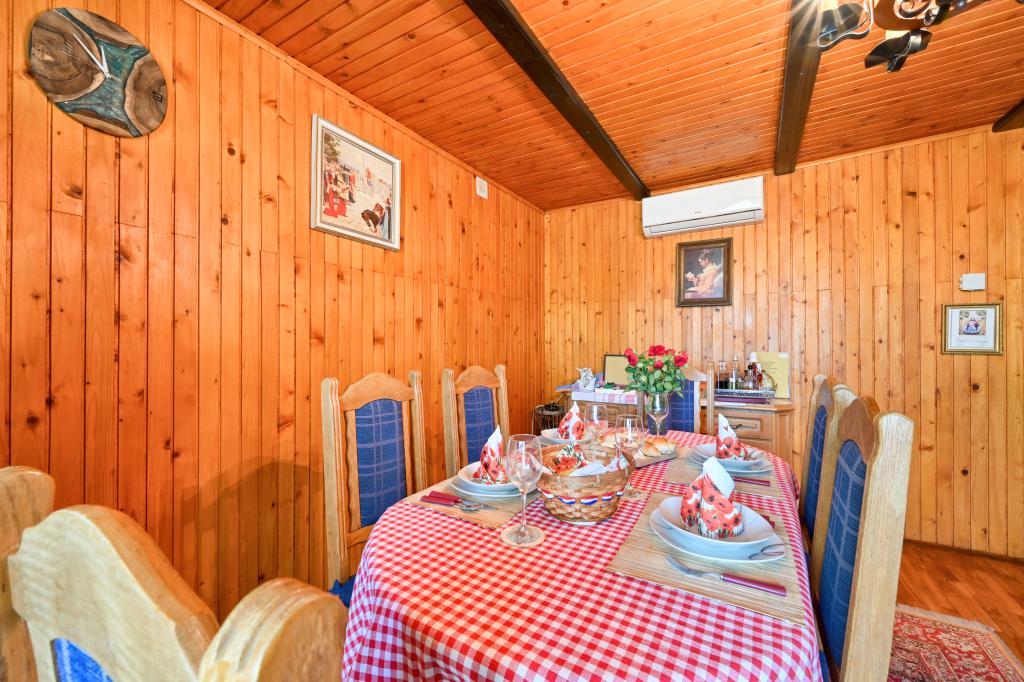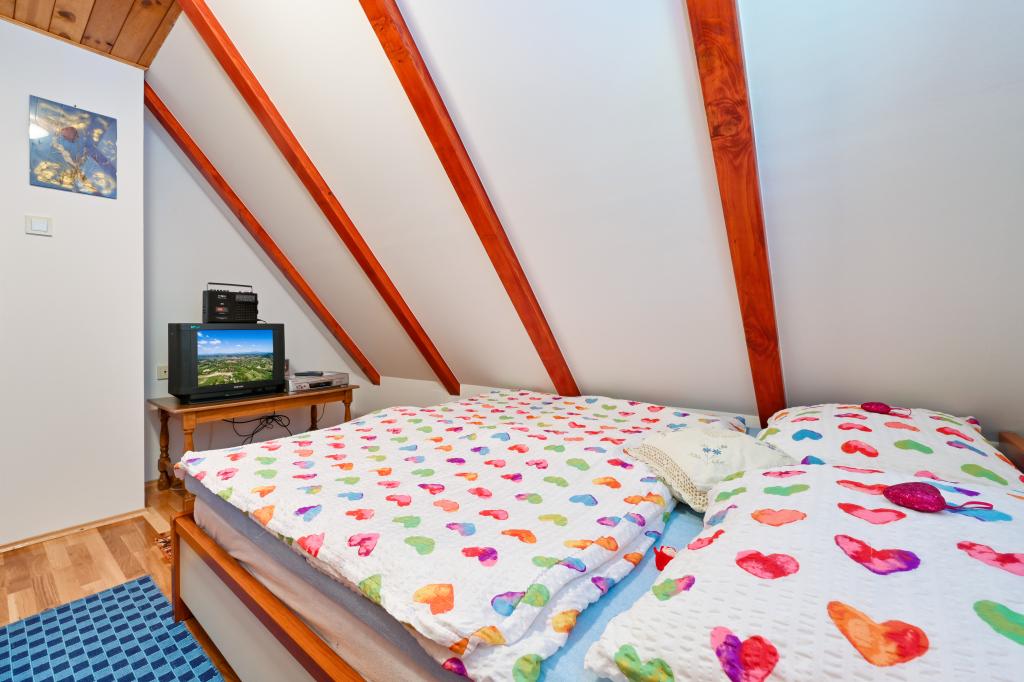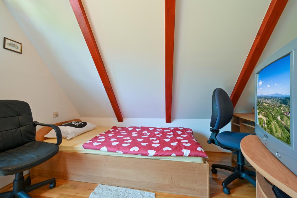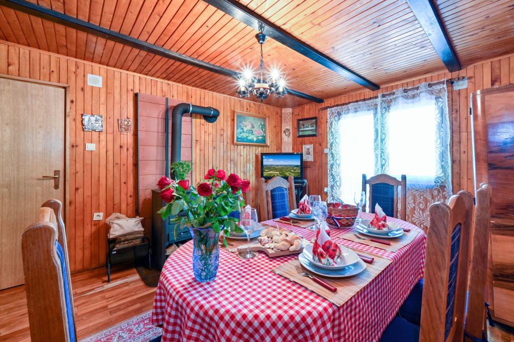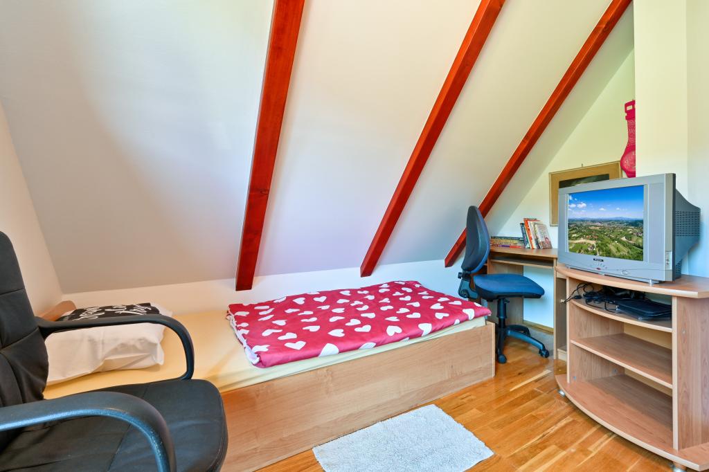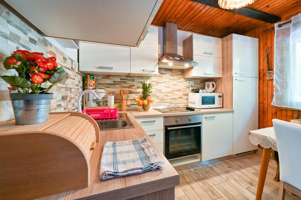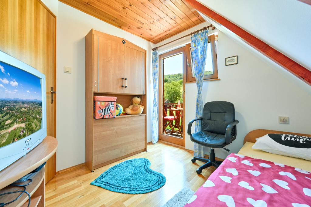 Dom wakacyjny Rukova Hiža Rukova Hiža jest urządzony jako połączenie przeszłości i teraźniejszości, dolna część jest odnowiona w starym stylu, a poddasze jest urządzone w stylu teraźniejszym z nowoczesnymi meblami i materiałami, każdy znajdzie coś dla siebie. Zakwaterowanie dla 4 osób w trzech pokojach (+ łóżeczko). Dostępna jest w pełni wyposażona kuchnia. Łazienka + dodatkowa toaleta Darmowe wi-fi, IPTV. Na podwórku i dwóch tarasach znajduje się grill. Dom składa się z parteru, na którym znajduje się łazienka, kuchnia oraz salon z obszernym stołem mogącym pomieścić dziesięć osób, natomiast na poddaszu znajdują się trzy sypialnie i łazienka. W pokojach znajduje się podwójne łóżko, dwa łóżka i łóżeczko dziecięce. Wszystkie pokoje wyposażone są w pościel, odbiornik TV, sygnał wi-fi. W bezpośrednim sąsiedztwie Term Jezerčica i Terme Stubičke toplice Schronisko Gupčevy Żyjący arcybiskup Gupčevy lipy Kaplica św. Krzyża Gupčeva lipa Muzeum i zamek Człowiekowi bardzo niewiele potrzeba do szczęścia, a to dziwne, jak mało potrzebuje tak często