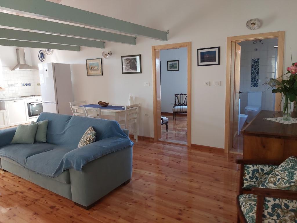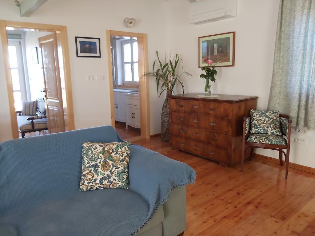 Chociaż nasz dom znajduje się 5 minut spacerem od centrum idyllicznego miasteczka Ilovik, jest wyjątkowy i wart odwiedzenia. Jako jedyni na terenie gospodarstwa posiadamy przestronny, luksusowo urządzony apartament z 4 słońcami, którego niełatwo znaleźć na wyspach. Podłogi drewniane, czyli połączenie nowoczesnych i zabytkowych mebli drewnianych, które w większości samodzielnie odnawiamy, zaskoczą Państwa komfortem i pięknem. Z sypialni roztacza się piękny widok na cały port i sąsiednie wyspy św. Piotr i Orjule. A co najważniejsze, w nocy masz ciszę i widok na rozgwieżdżone niebo. Mieszkanie spełnia wszystkie pragnienia współczesnego człowieka, ale oferuje też coś więcej. Jesteśmy autorami monografii o Iloviku, tutaj dowiesz się wszystkiego, co musisz wiedzieć o historii wyspy, przyrodzie, obyczajach, do Twojej dyspozycji jest duża biblioteka. Jesteśmy miłośnikami zwierząt, hodujemy owce i kozy, z którymi można spędzać czas, a także nasze psy, koty, kaczki (w końcu jesteśmy farmą!). Na dużym, zadaszonym tarasie można skorzystać z dużego drewnianego stołu.