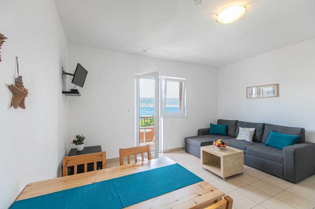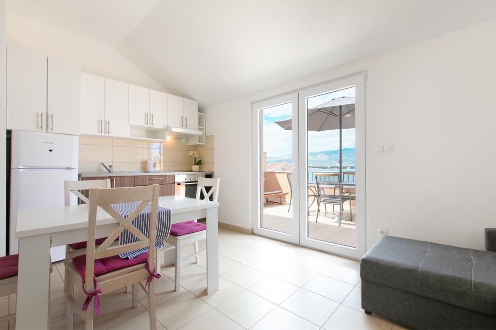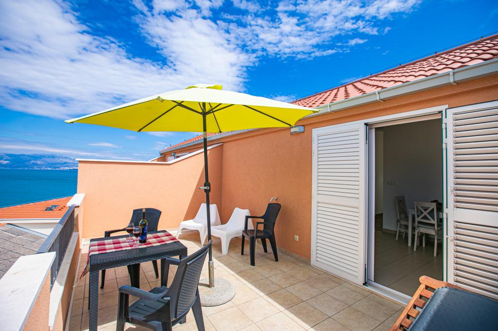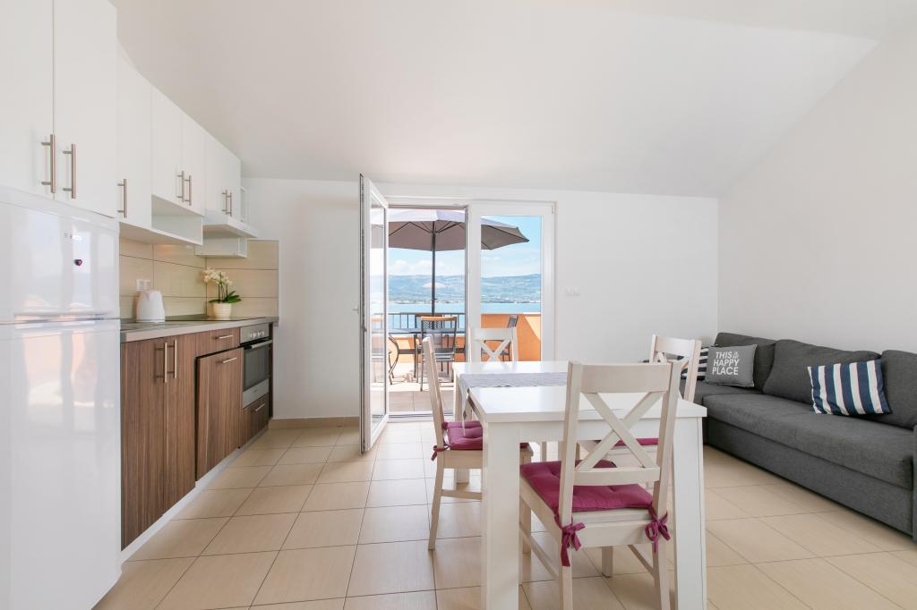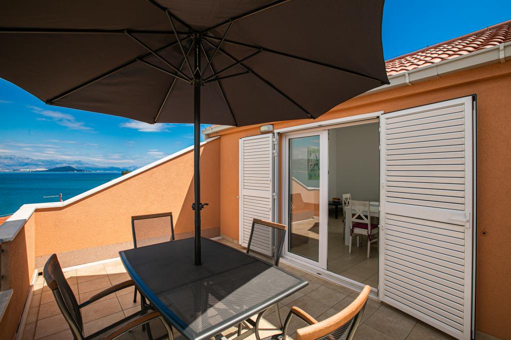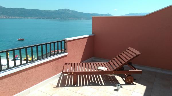 Ładnie urządzony apartament z dużym tarasem i pięknym widokiem na morze. Mieszkanie jest tuż nad morzem z ładną plażą i spokojną okolicą. Bardzo przyjaźni gospodarze. Nie możemy się doczekać powrotu w przyszłym roku!