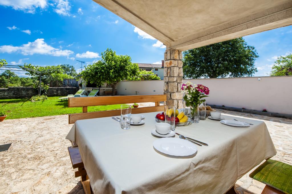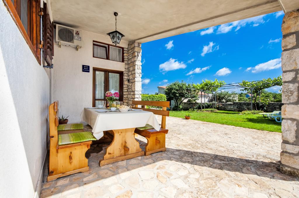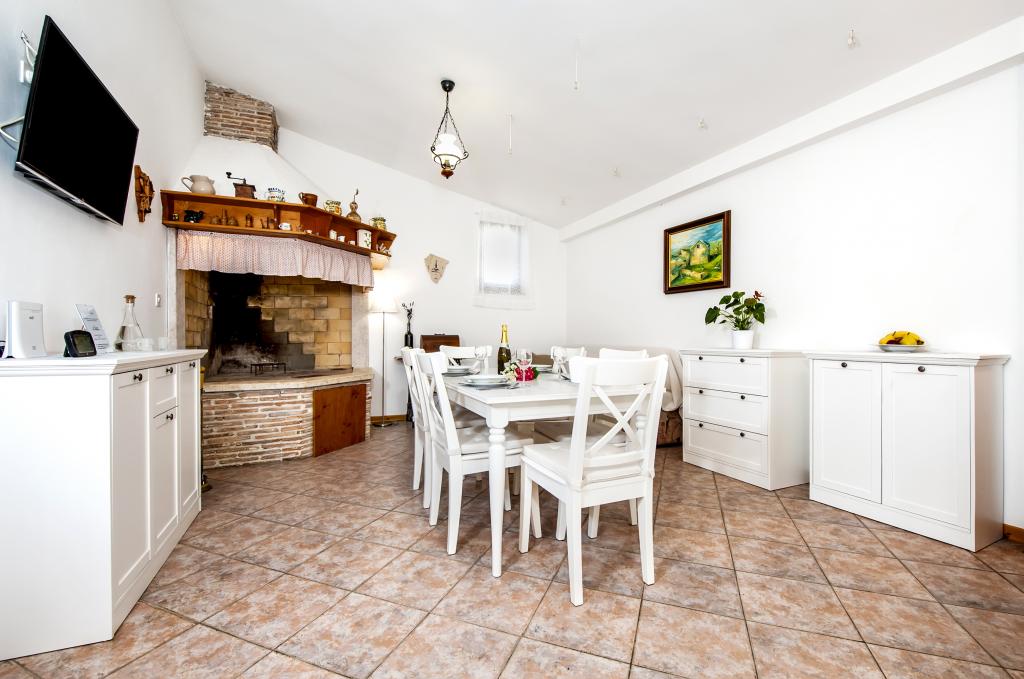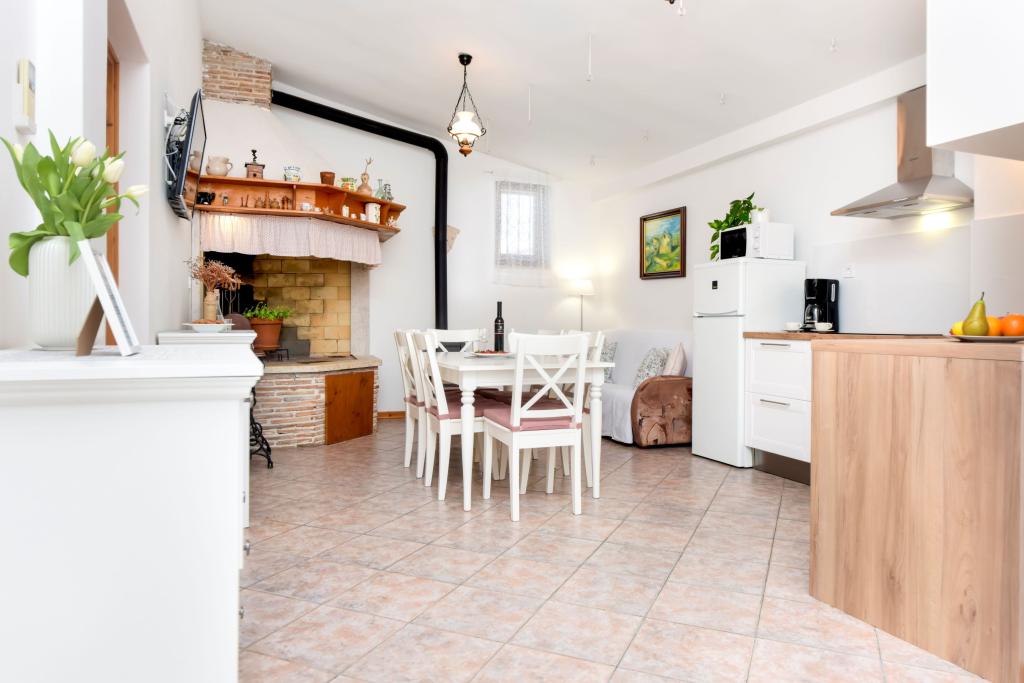 Dom Nino położony jest we wsi Krmed, osadzie położonej 7 km na północny wschód od gminy Bale. Znajduje się przy drodze powiatowej Bale – Smoljanci – Svetvinčenat. To tylko 8 minut jazdy samochodem do Bal i 25 minut do Rovinj. Jeśli szukasz noclegu z dala od miejskiego zgiełku, ale jednocześnie wystarczająco blisko wszystkich okolicznych atrakcji, jest to idealny wybór dla Ciebie. Najbliższa plaża w Bala (Colone lub San Polo) oddalona jest zaledwie o 13 km samochodem, a plaża Cisterna – o 16 km. Do Państwa dyspozycji cały dom, ogród, grill węglowy i drzewny. Idealne zakwaterowanie dla rodziny z dziećmi i zwierzętami. Dom został zbudowany w charakterystycznym stylu istryjskim, jest pokryty kamieniem. To nasze dziedzictwo, dlatego jesteśmy do niego szczególnie przywiązani. Posiada dwie sypialnie, pokój dzienny i kuchnię, łazienkę i zadaszony taras. Przed domem znajduje się ogrodzony dziedziniec, na którym można przebywać w spokoju. Zwierzęta są mile widziane! Mieszkamy w Rovinj i przyjeżdżamy do Krmedu po wcześniejszym umówieniu. Szanujemy twoją prywatność