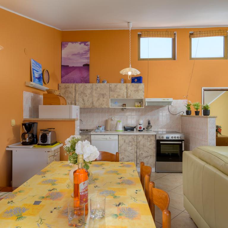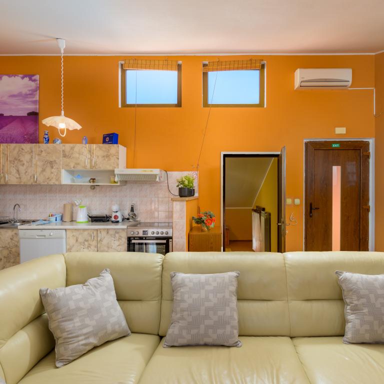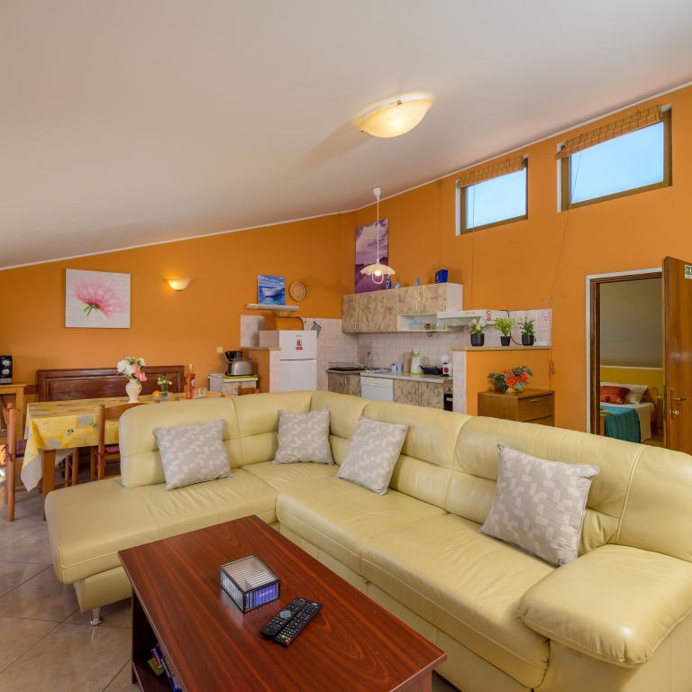 Apartament położony w pierwszym rzędzie od morza, na pierwszym piętrze, z tarasem i cudownym widokiem na błękitne morze i niebo. Obiekt położony jest w spokojnej części Banjole, we wsi Volme. Jest to ciche i spokojne miejsce, blisko wszystkich udogodnień. 5 minut do plaży i 15 minut do hotelu po drugiej stronie wybrzeża. W pobliżu znajdują się ścieżki rowerowe prowadzące do Parku Narodowego Kamenjak. Pula oddalona jest o trzy kilometry, a Premantura o cztery kilometry.
