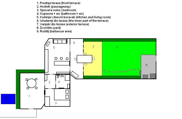 Barbariga, turystycznej miejscowości w pobliżu Puli Najpiękniejsza część wybrzeża Istrii. Idealny dla rodzin z dziećmi. Turystycznym Barbariga w Istrii, znajduje się w południowo-zachodniej części wybrzeża Istrii, 15 km na zachód od Puli. Na północ od Barbariga znajduje się w Rovinj Perłą Adriatyku. Od Barbariga widać wyspy Brijuni National Park, słynnego na całym świecie, uwzględnione w zabytki UNESCO, dziedzictwo przyrodnicze i kulturowe, które warto odwiedzić. Jest to idealne miejsce dla rodzin z dziećmi oraz dla miłośników przyrody. Tutaj można spodziewać cichej i spokojnej, przestronne i piękne plaże z krystalicznie czystym i ciepłym morzem. Nasze apartamenty składają się z sypialni, łazienki, kuchni, pokoju dziennego z rozkładaną sofę dla dwóch dodatkowych łóżek i na taras lub ogród. Są one wyposażone w klimatyzację, telewizję satelitarną. Kuchnia jest w pełni wyposażona. Zabezpieczone ręczniki, pościel i koce. Sprzątanie odbywa się regularnie po wyjeździe. Bezpłatny parking jest bezpośrednio przed mieszkaniu