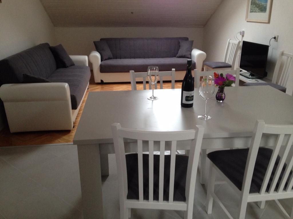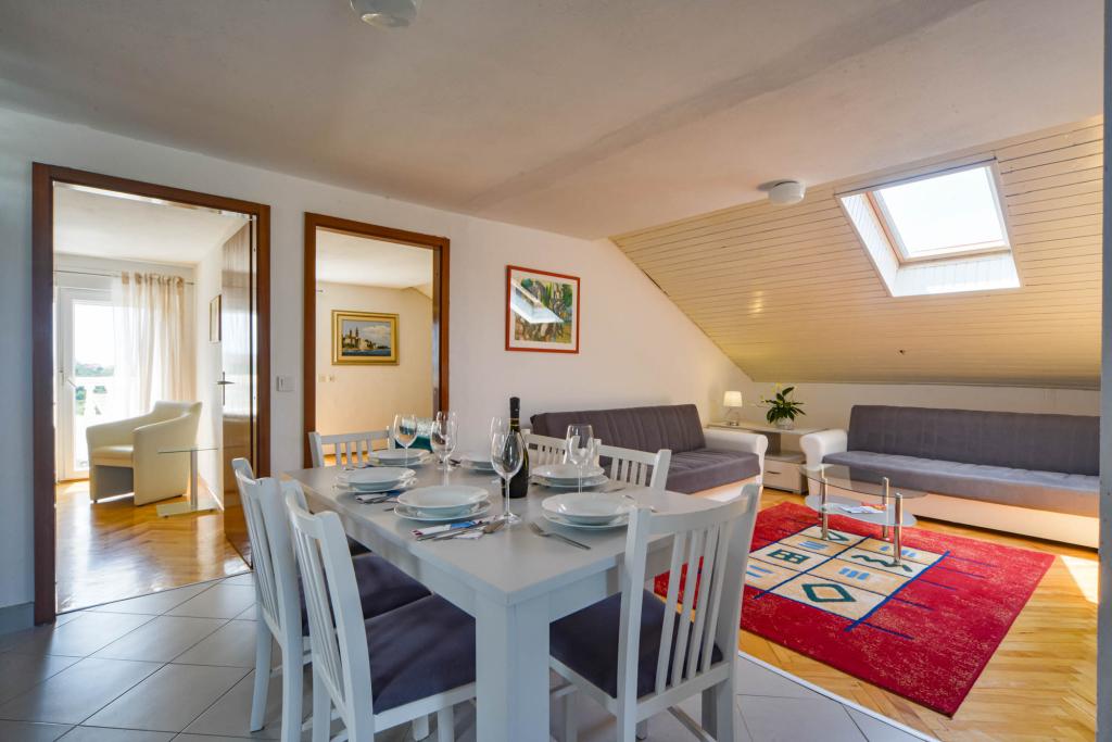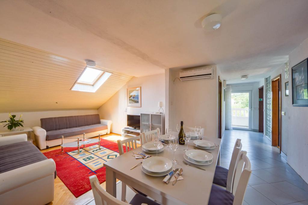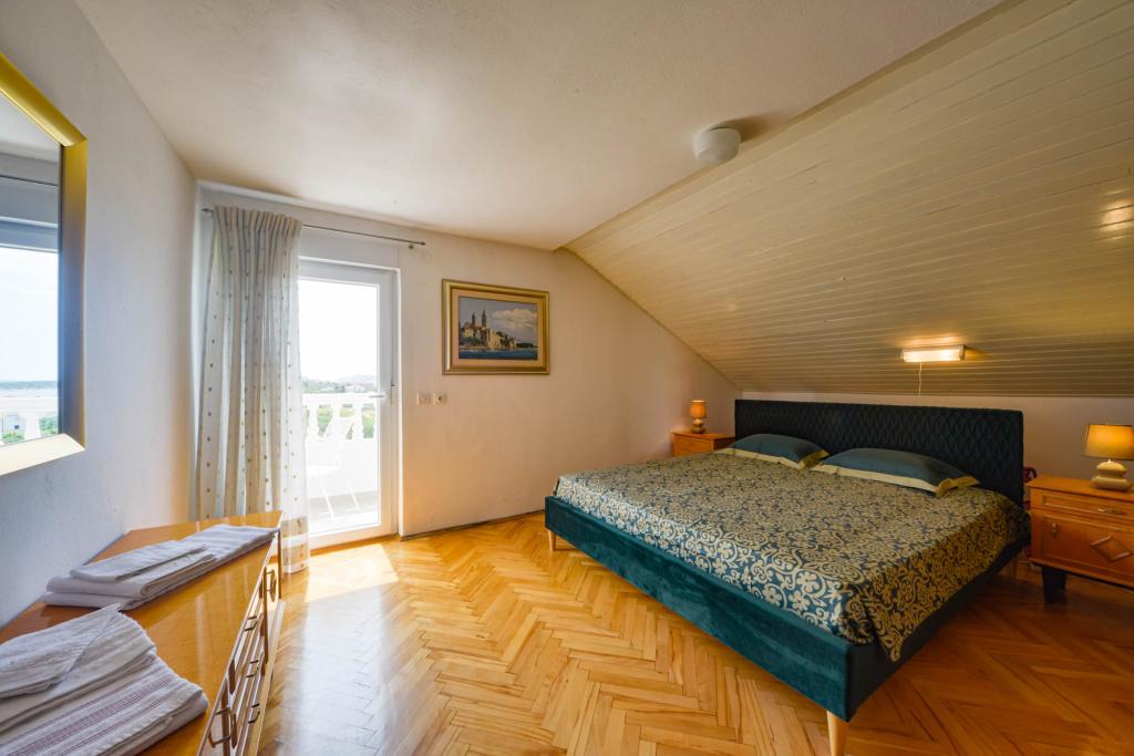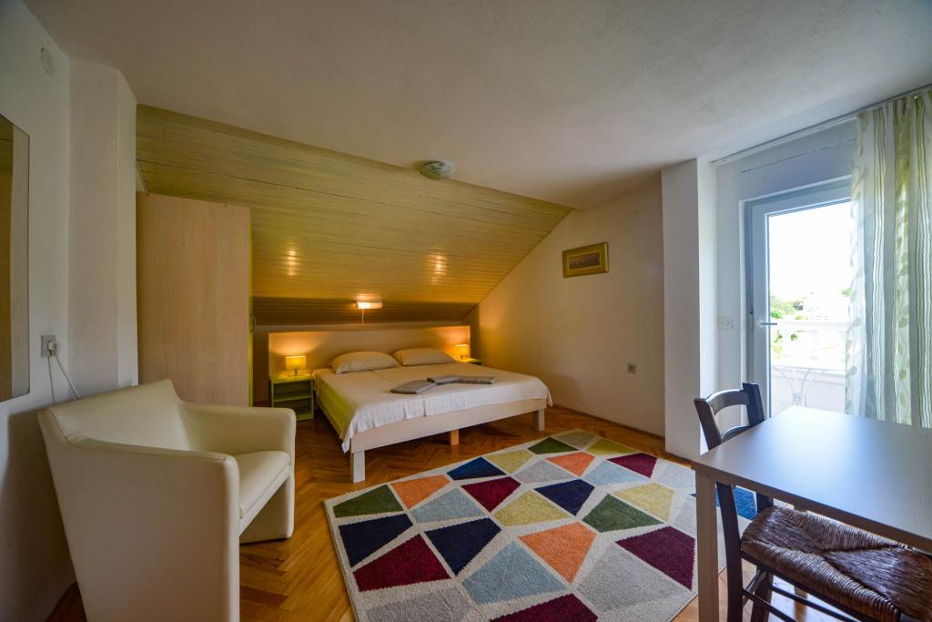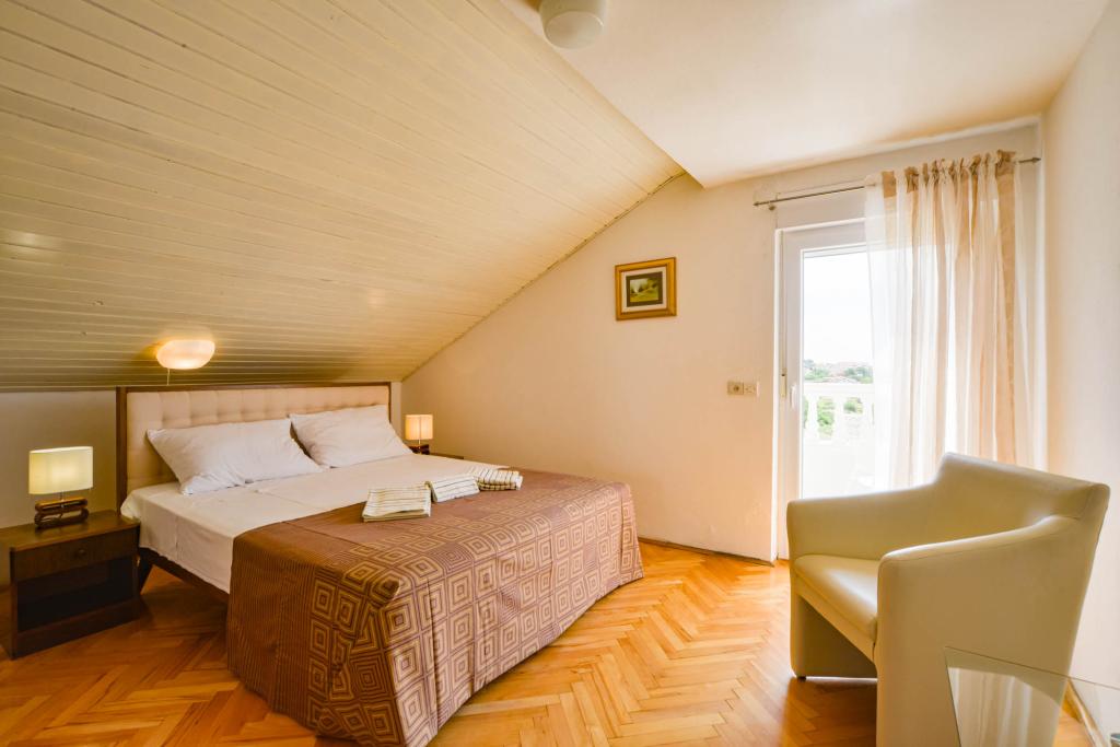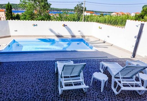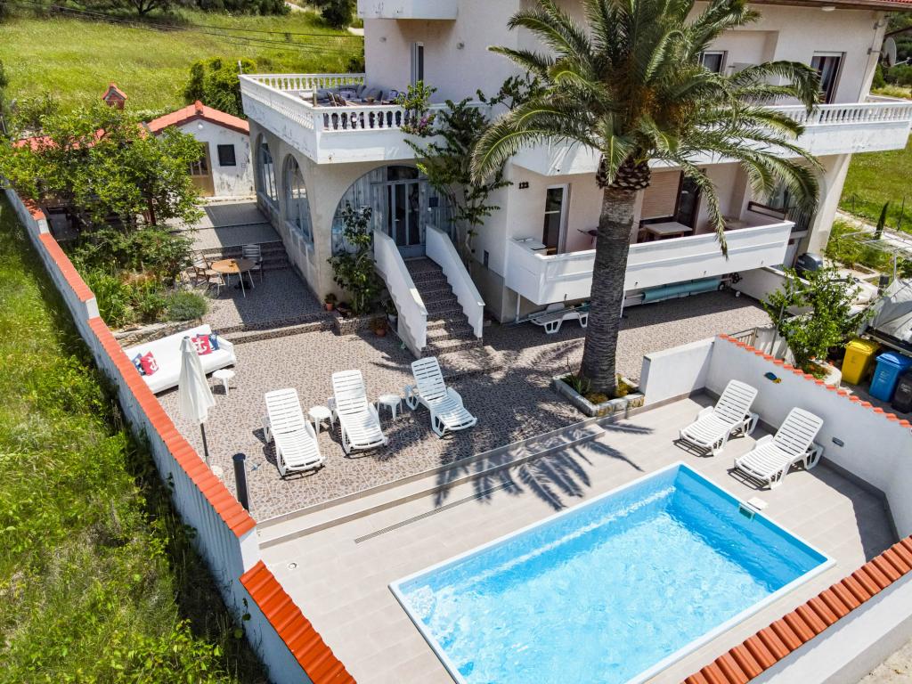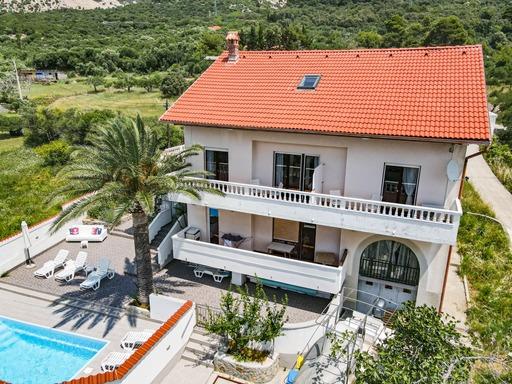 W pełni wyposażone, przestronne apartamenty z widokiem na kanał Barbat i kościół św. Damiana (pozostałości bizantyjskiej twierdzy zwiadowczej z VI wieku), z wystarczającą ilością miejsca na zewnątrz, aby różne grupy mogły cieszyć się prywatnością na przestronnym tarasie, przy basenie lub w zacienionej altanie obok domku grillowego. Dom nadaje się również na wynajem dla całej rodziny (12 osób). Dzieci i zwierzęta są mile widziane. Obiekt znajduje się niecałe 5 minut spacerem od nadmorskiej promenady z plażami, restauracjami i kawiarniami – 300 m.