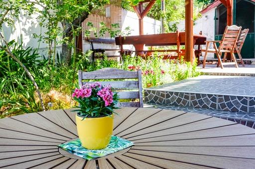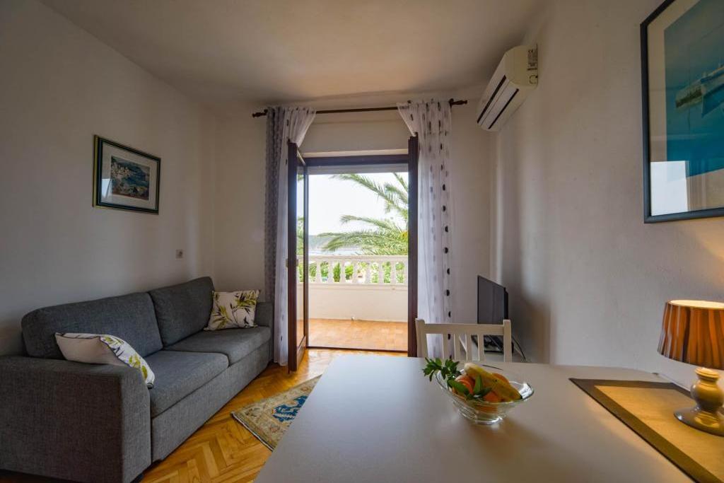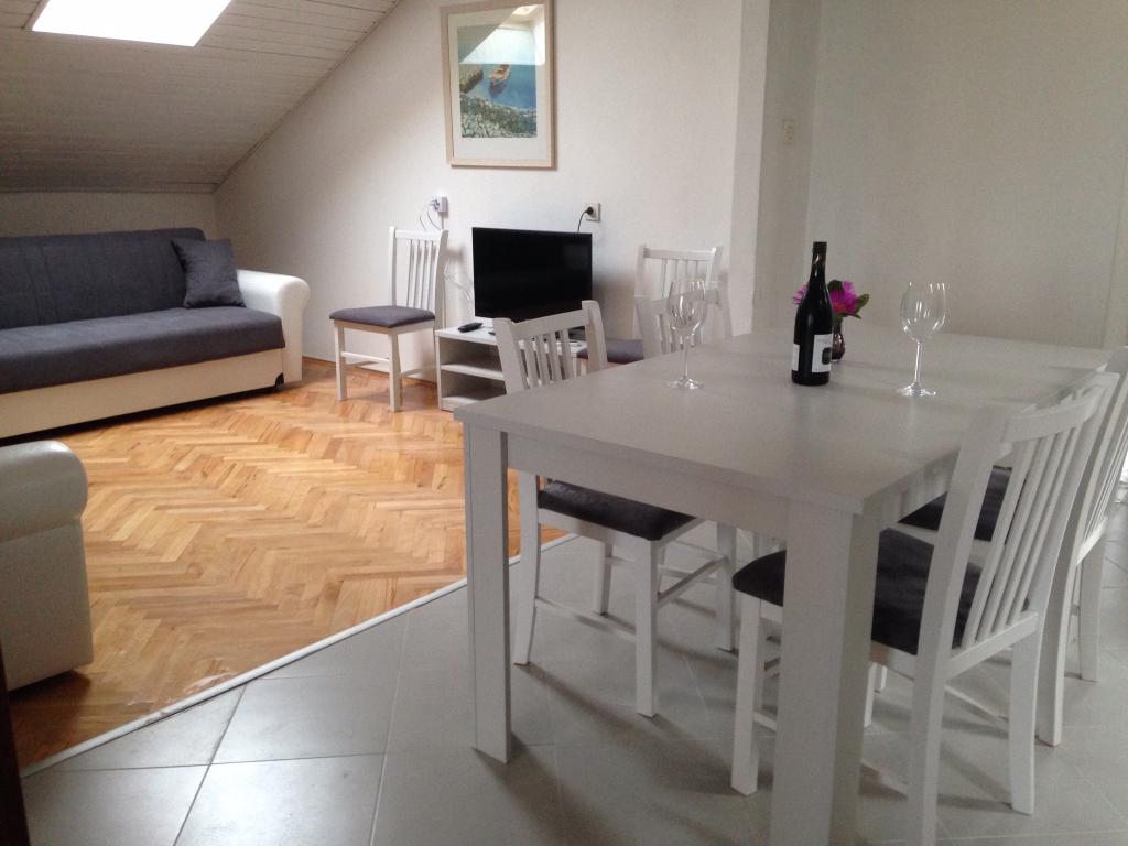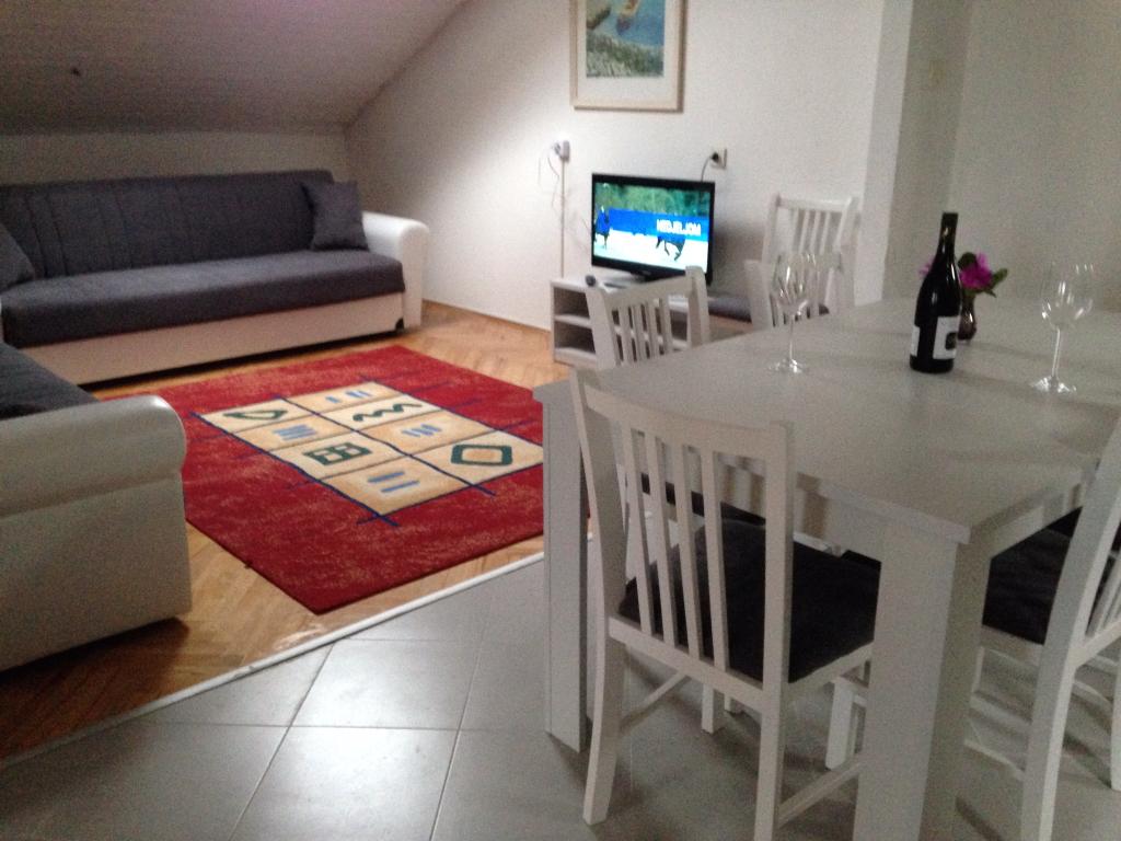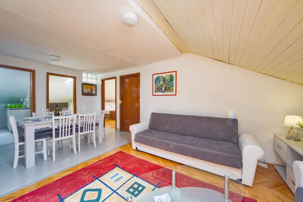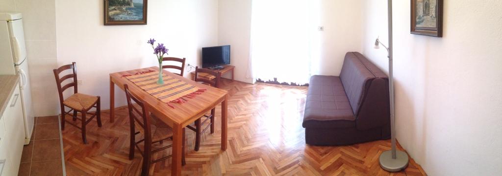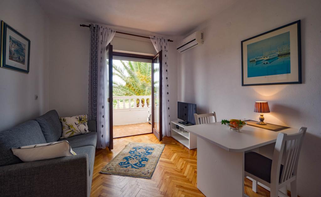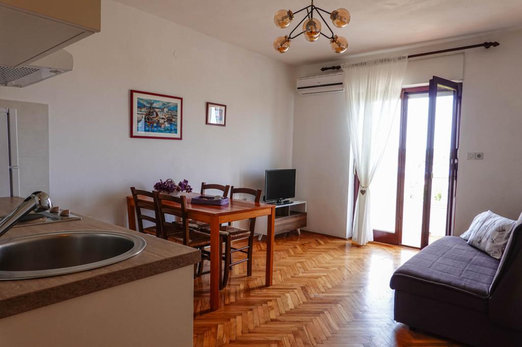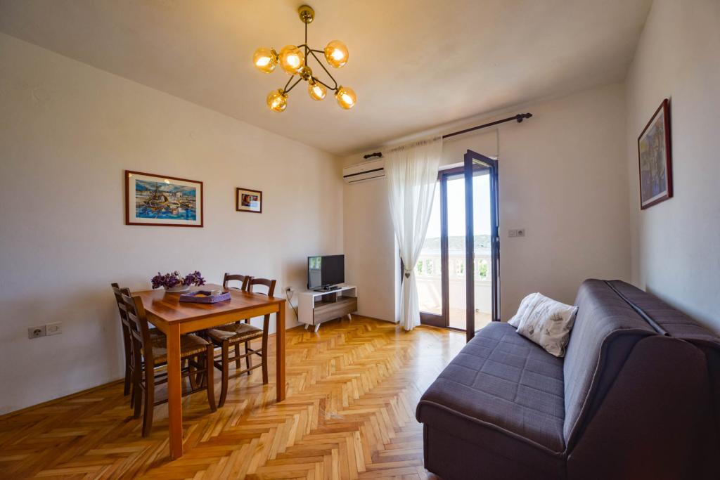 W pełni wyposażone, przestronne apartamenty z widokiem na kanał Barbat i kościół św. Damiana (pozostałości bizantyjskiej twierdzy zwiadowczej z VI wieku), z wystarczającą ilością miejsca na zewnątrz, aby różne grupy mogły cieszyć się prywatnością na przestronnym tarasie, przy basenie lub w zacienionej altanie obok domku grillowego. Dom nadaje się również na wynajem dla całej rodziny (12 osób). Dzieci i zwierzęta są mile widziane. Obiekt znajduje się niecałe 5 minut spacerem od nadmorskiej promenady z plażami, restauracjami i kawiarniami – 300 m.