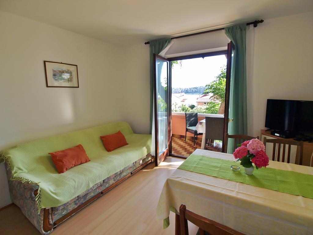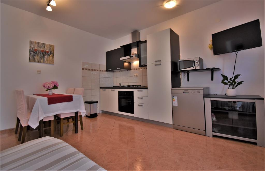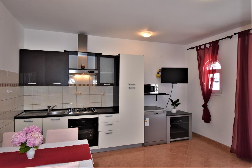 Dom położony jest na wyspie Rab, w miejscowości Barbat, blisko morza. Jesteśmy tylko 50 metrów od morza. Mieszkanie składa się z dwóch pokoi dwuosobowych z łóżkiem małżeńskim, kuchni z jadalnią i pokojem dziennym, łazienki. Mieszkanie ma 56 m2. Mieszkanie znajduje się na parterze i posiada duży taras w cieniu, grill na świeżym powietrzu oraz miejsce do siedzenia i spotkań towarzyskich wieczorem.