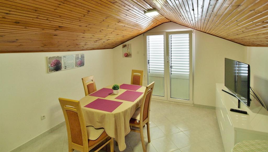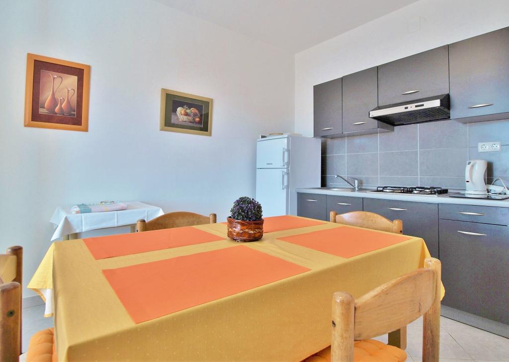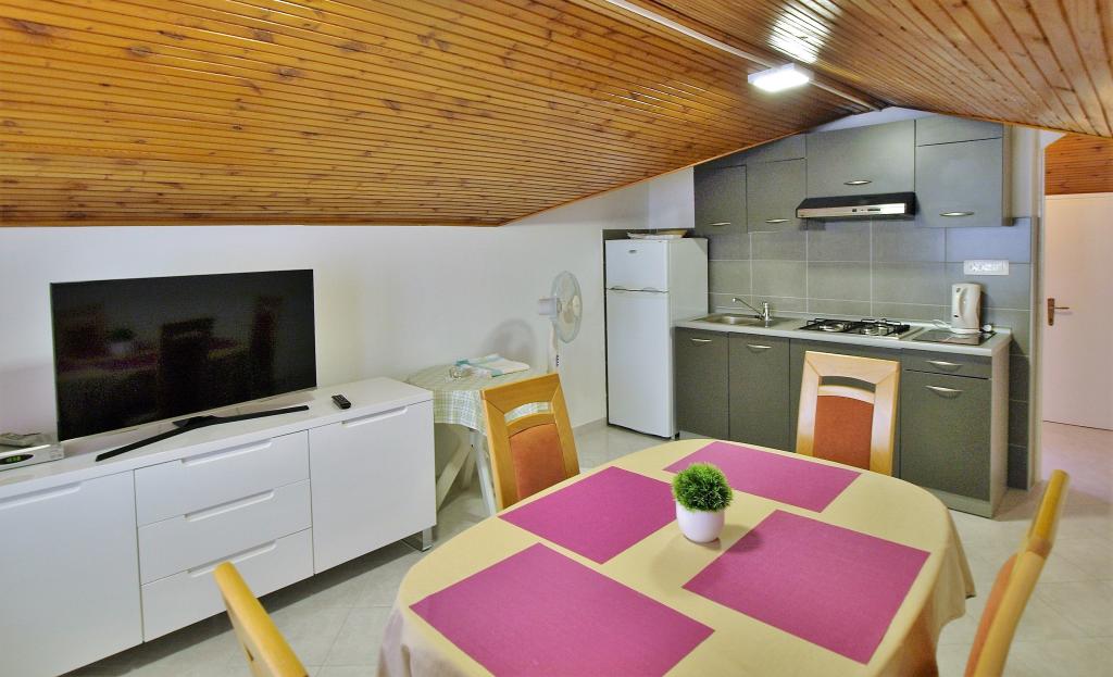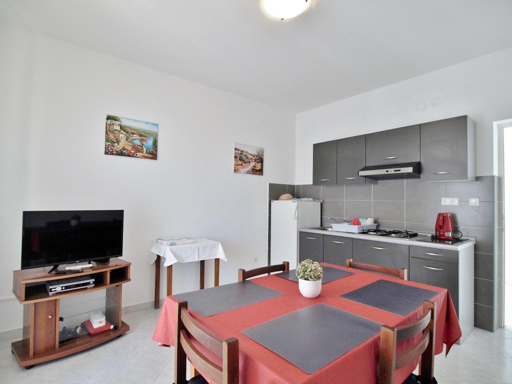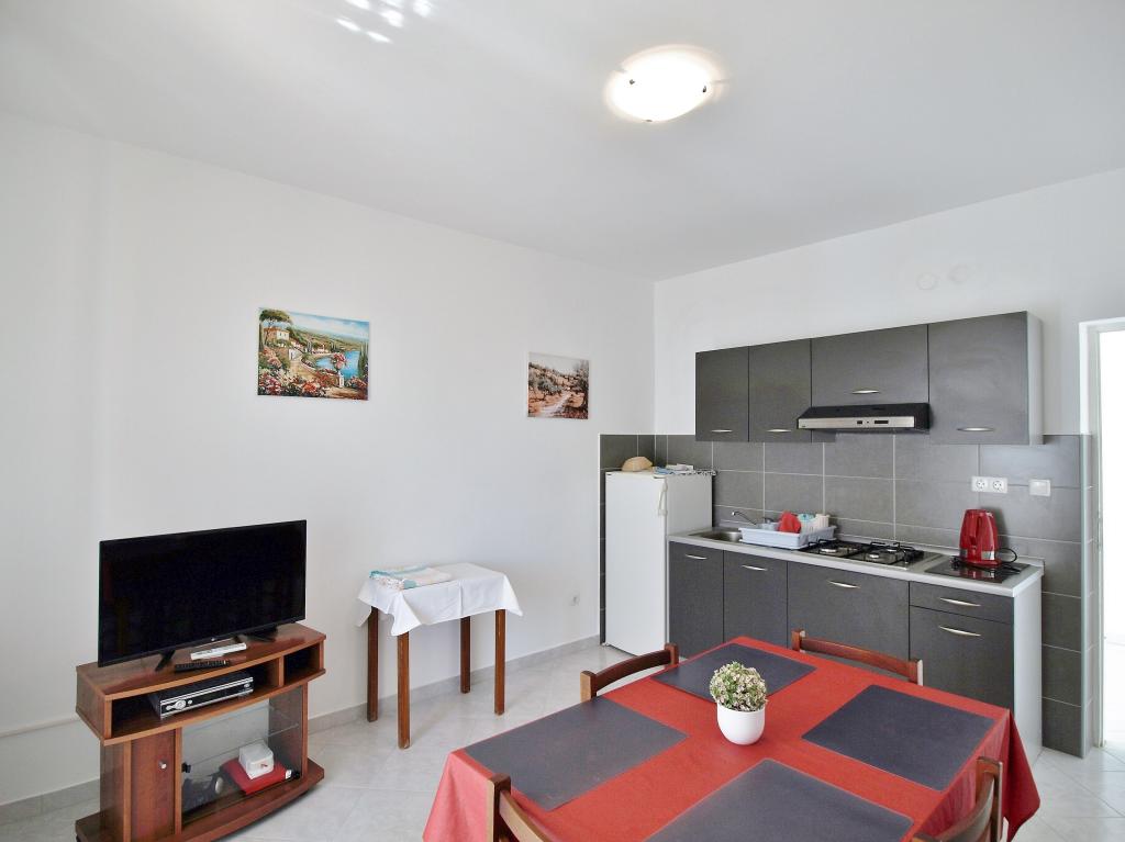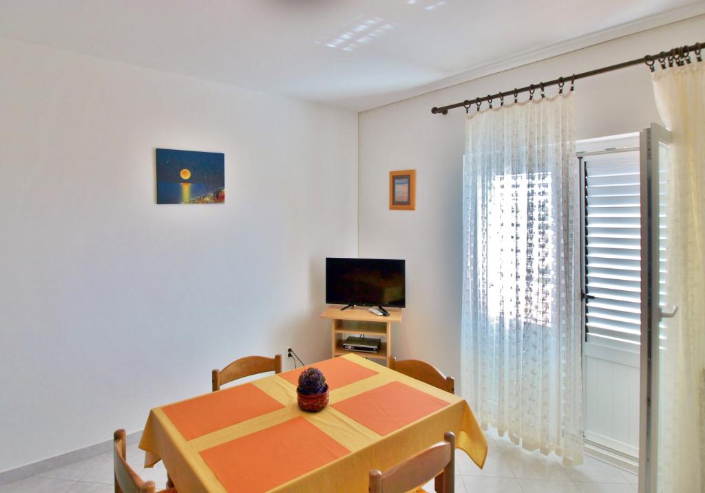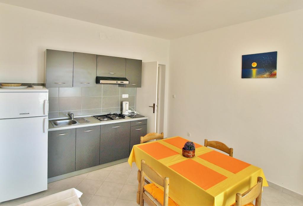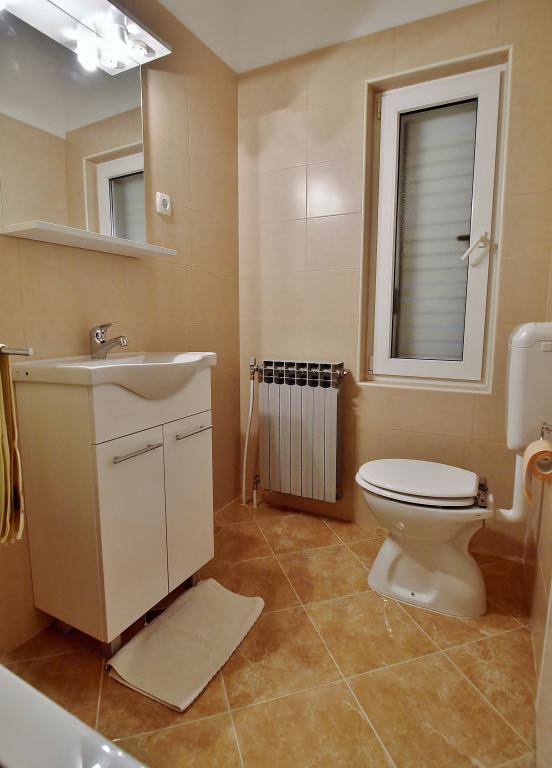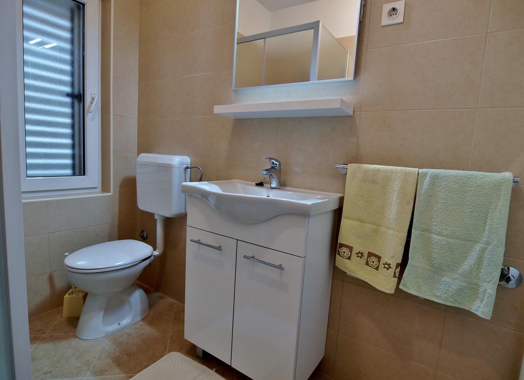 Drodzy Goście! Oferujemy apartamenty dla 4 osób. Każdy apartament składa się z dwóch dwuosobowych sypialni, kuchni z jadalnią, a także każdy pokój ma własną łazienkę lub prysznic / toaletę. Wszystkie apartamenty posiadają balkon / taras z widokiem na morze, telewizję satelitarną i klimatyzację. Pościel i ręczniki, a także wszystko inne potrzebne do przyjemnego wypoczynku znajdują się w apartamentach i nie ma potrzeby zabierania ze sobą niczego na wakacje. Pościel zmieniana jest raz w tygodniu, a ręczniki według życzenia. Na zewnątrz mamy duży taras i jadalnię oraz duży grill/grill na podwórku, z którego można korzystać według uznania. Istnieje również możliwość skorzystania z pralki.