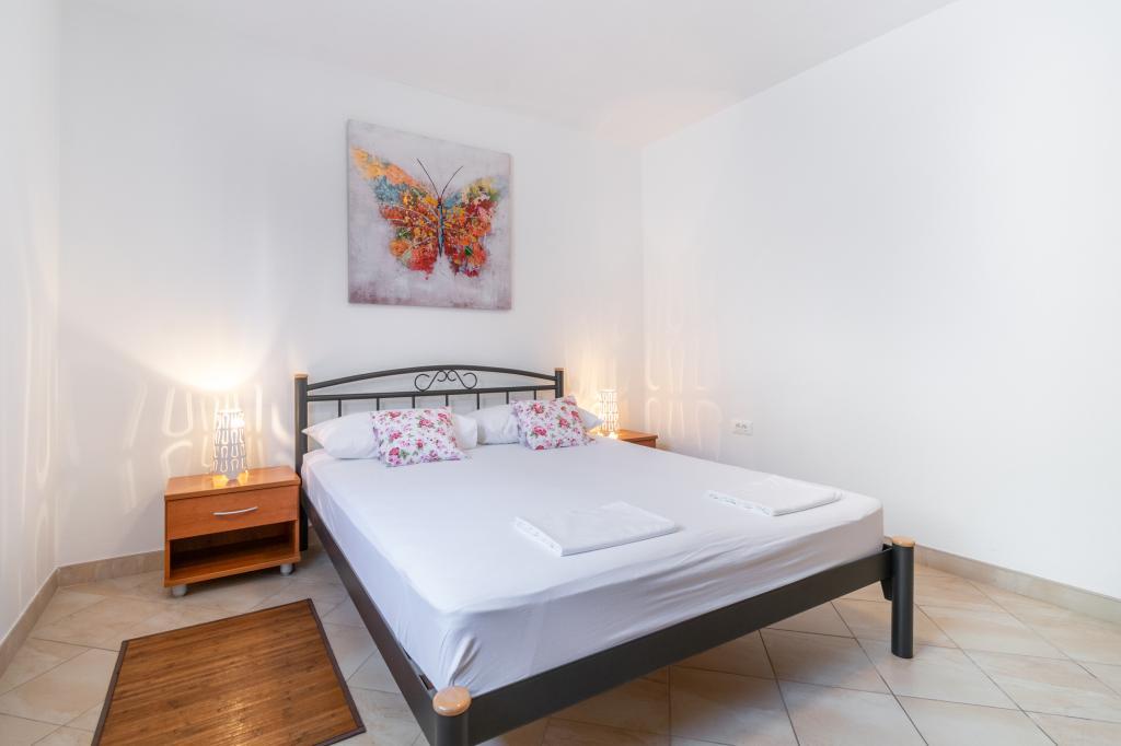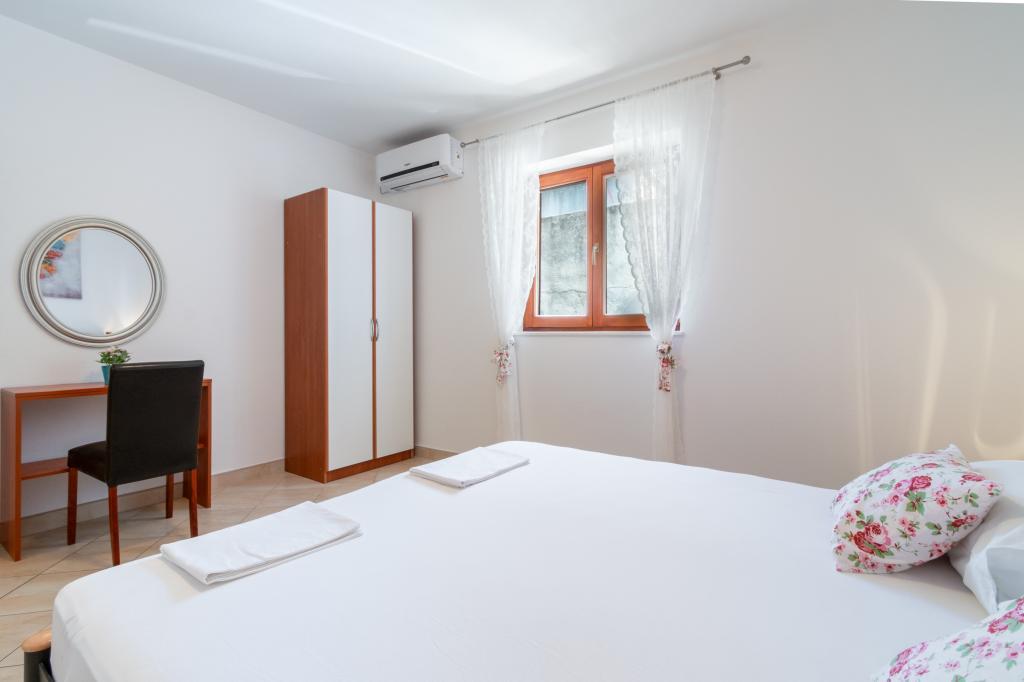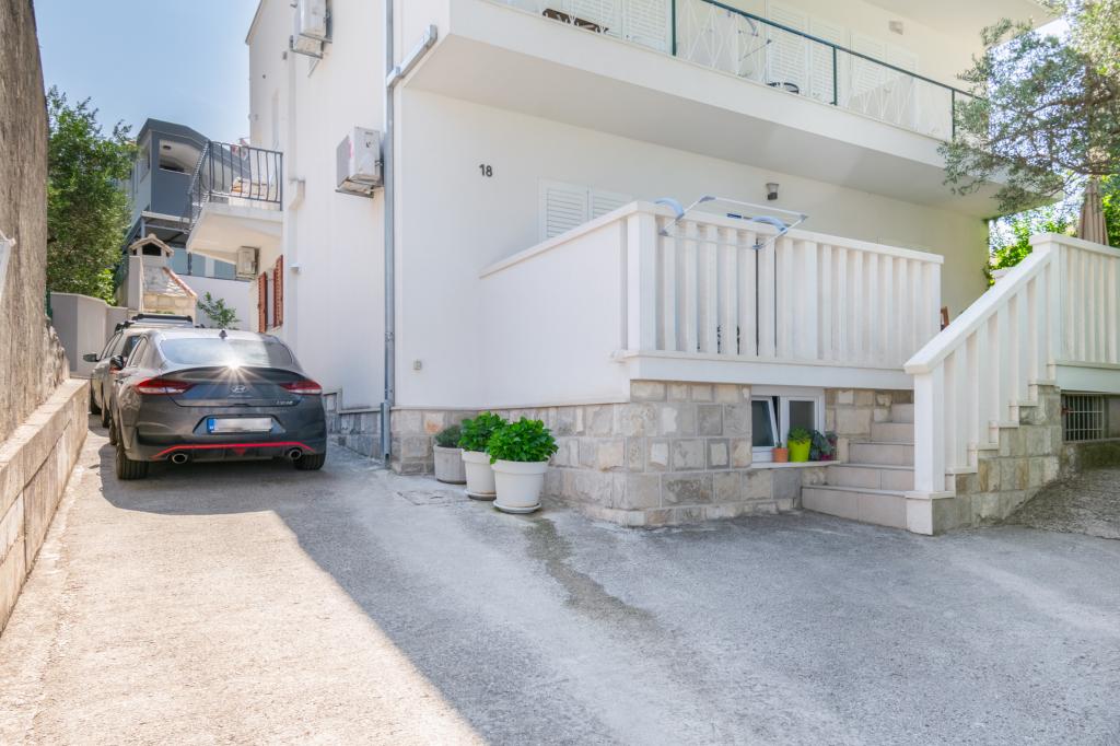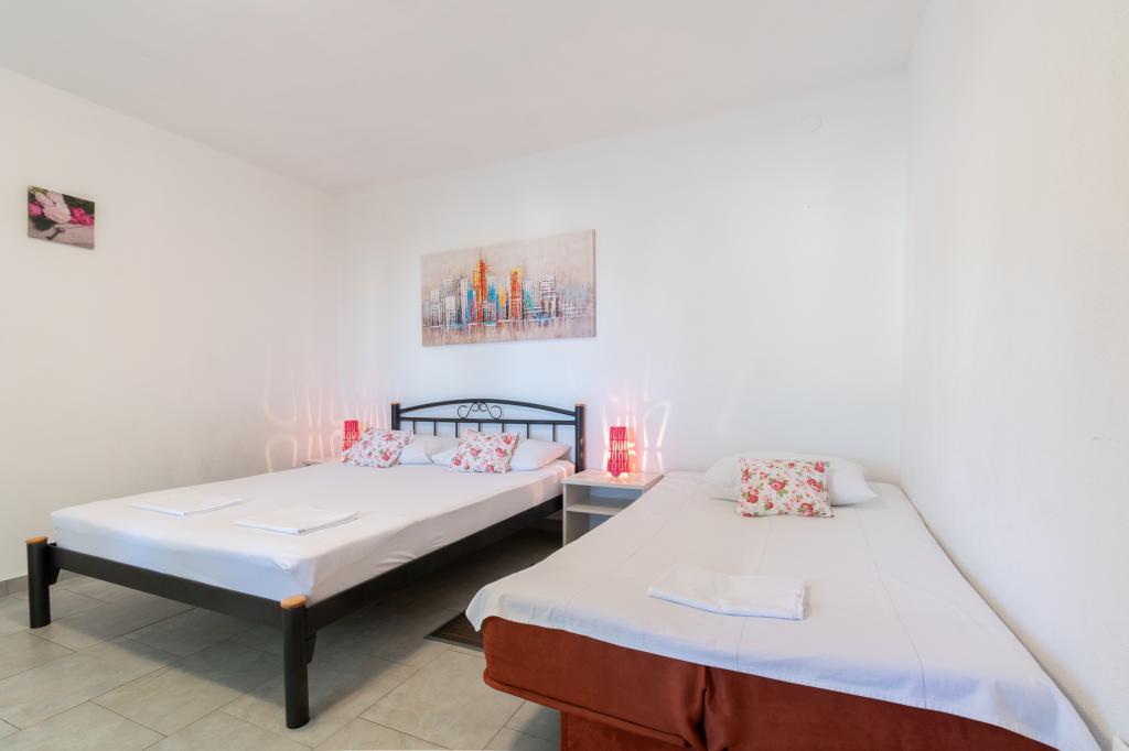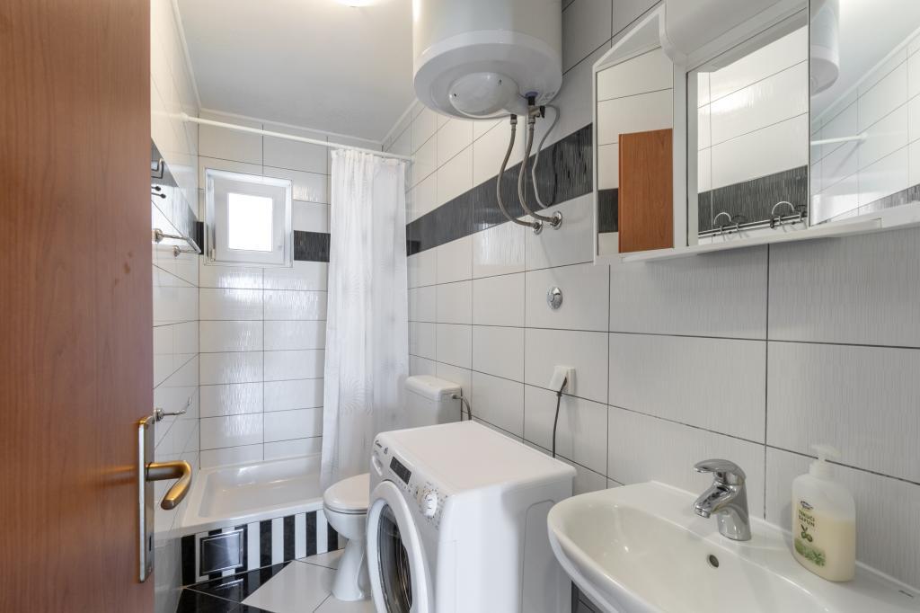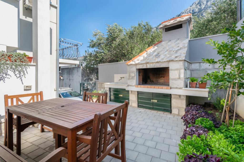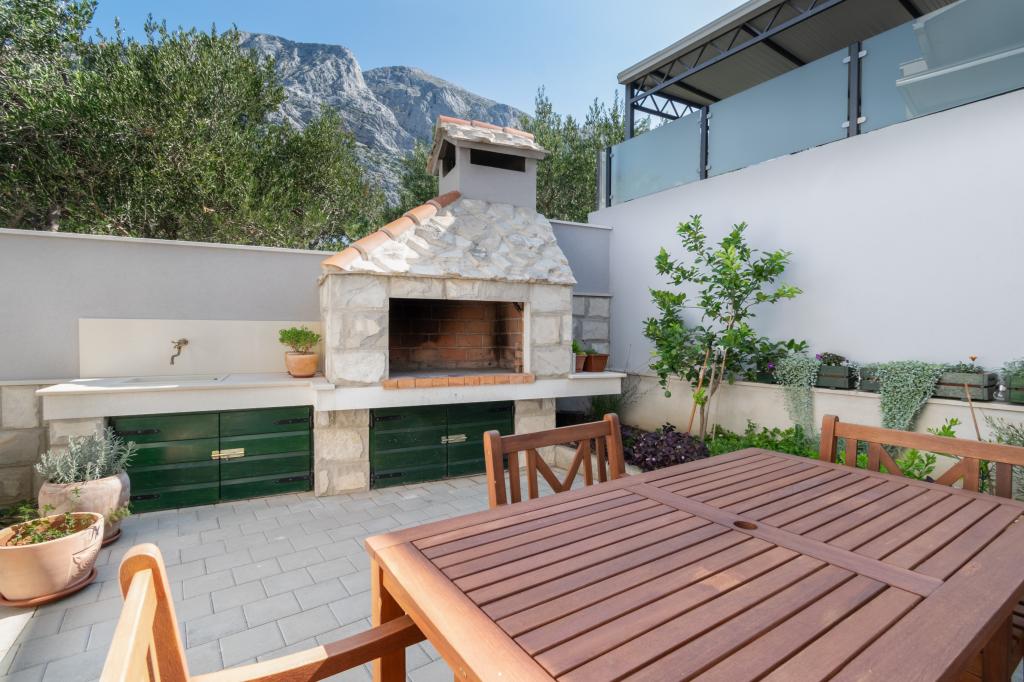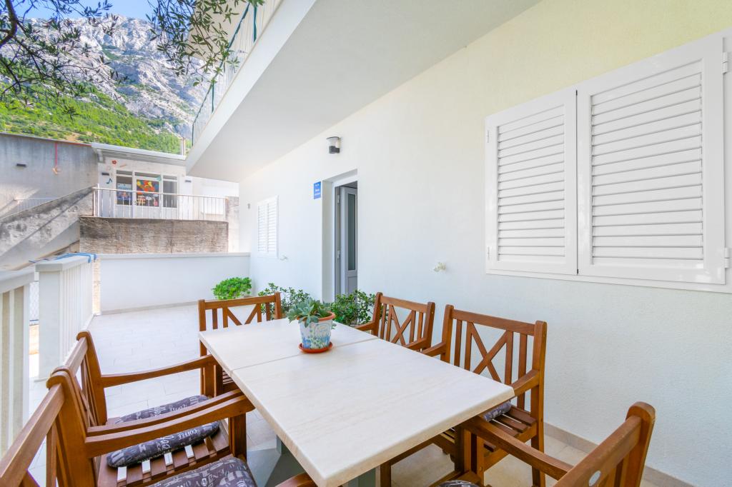 Przestronny i niedawno odnowiony trzypokojowy apartament (6+1) znajduje się w pięknej miejscowości Baška Voda u podnóża Biokova. Mieszkanie ma 2 przestronne pokoje z podwójnym łóżkiem i jeden pokój z podwójnym łóżkiem i dodatkowym łóżkiem, 2 łazienki, nowoczesną i wyposażoną kuchnię oraz przestronny taras z widokiem na Biokovo i morze. W apartamencie znajduje się wszystko, czego potrzeba do beztroskiego, przyjemnego i spokojnego wypoczynku: duży taras, klimatyzacja, Wi-Fi, telewizor LCD/SMART, pralka, grill, miejsce parkingowe, pościel, ręczniki. Rynek, piekarnia, sklep mięsny, poczta, apteka, kawiarnie i plaże znajdują się zaledwie kilka minut spacerem od hotelu. Samo centrum Baška Voda znajduje się zaledwie 5 minut spacerem od apartamentu z szeroką gamą restauracji, punktów gastronomicznych i sklepów z pamiątkami. Również w lecie bogata oferta sportów adrenalinowych (skutery wodne, deska sup, parasailing), rozrywka dla najmłodszych (nowe i atrakcyjne rowery wodne, łódź półpodwodna), leżaki. Ze względu na samo położenie apartamentu i bliskość centrum, w ciągu roku nie potrzeba nawet samochodu.