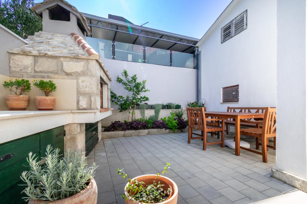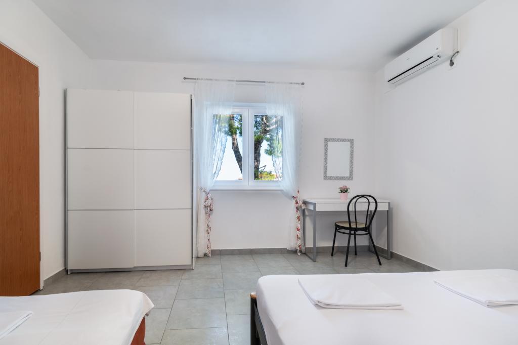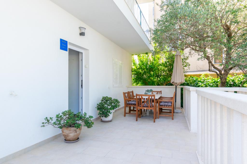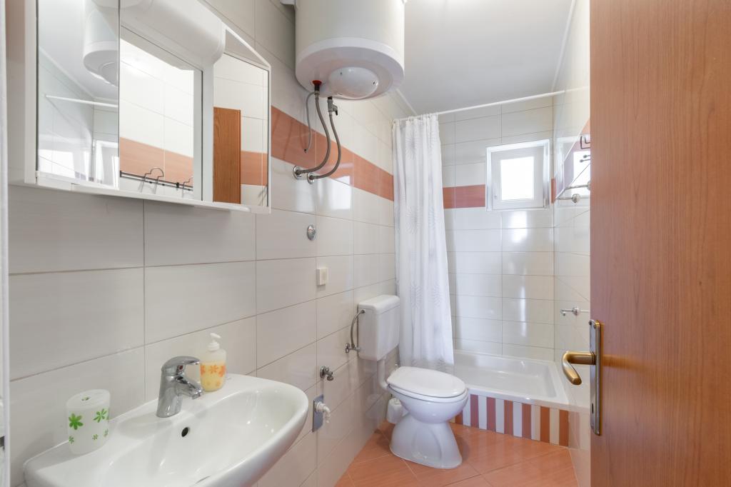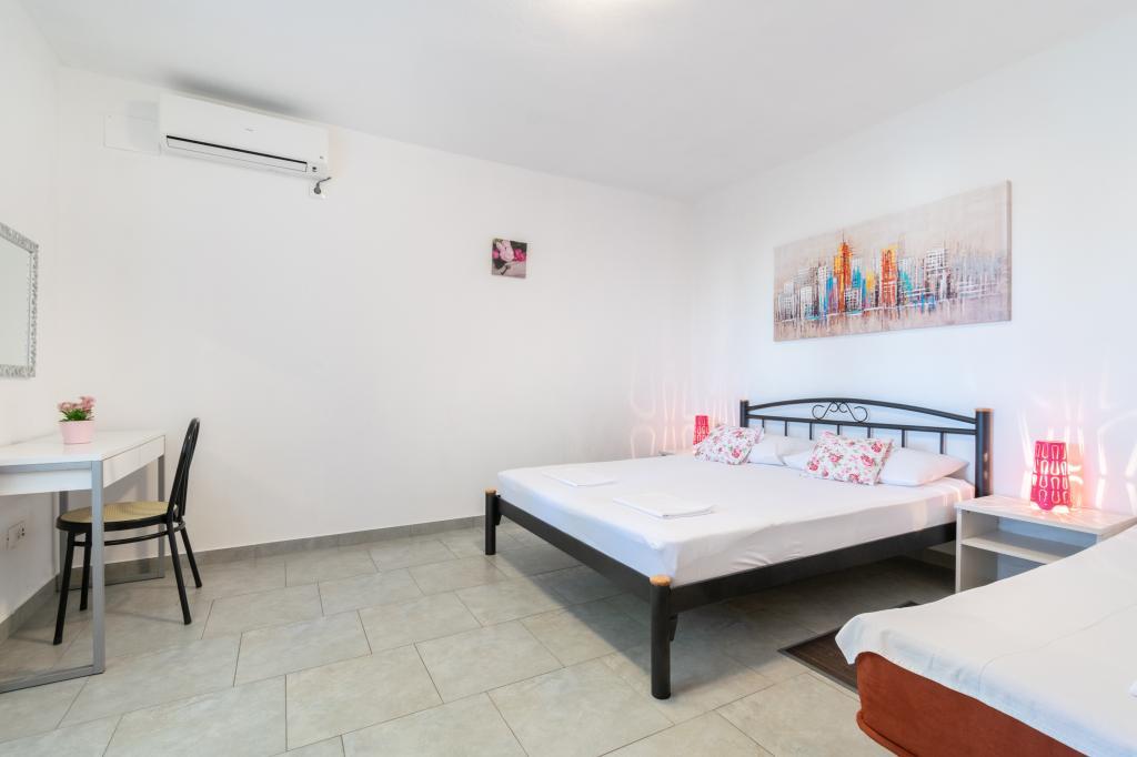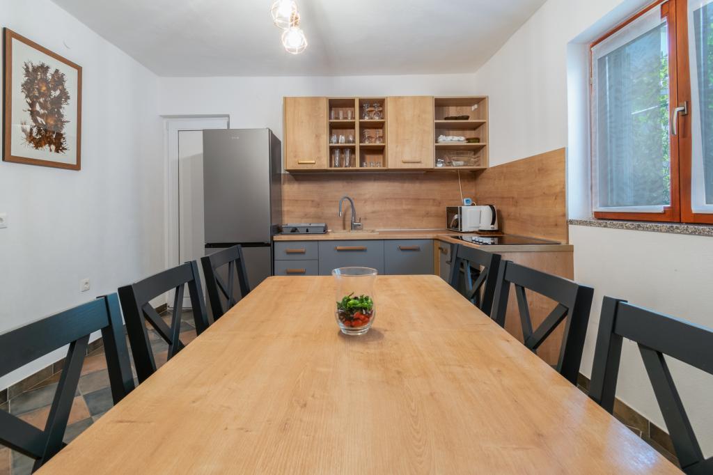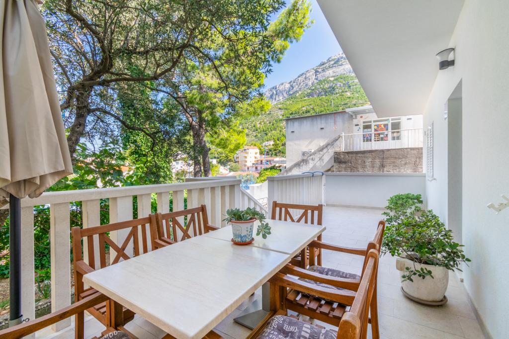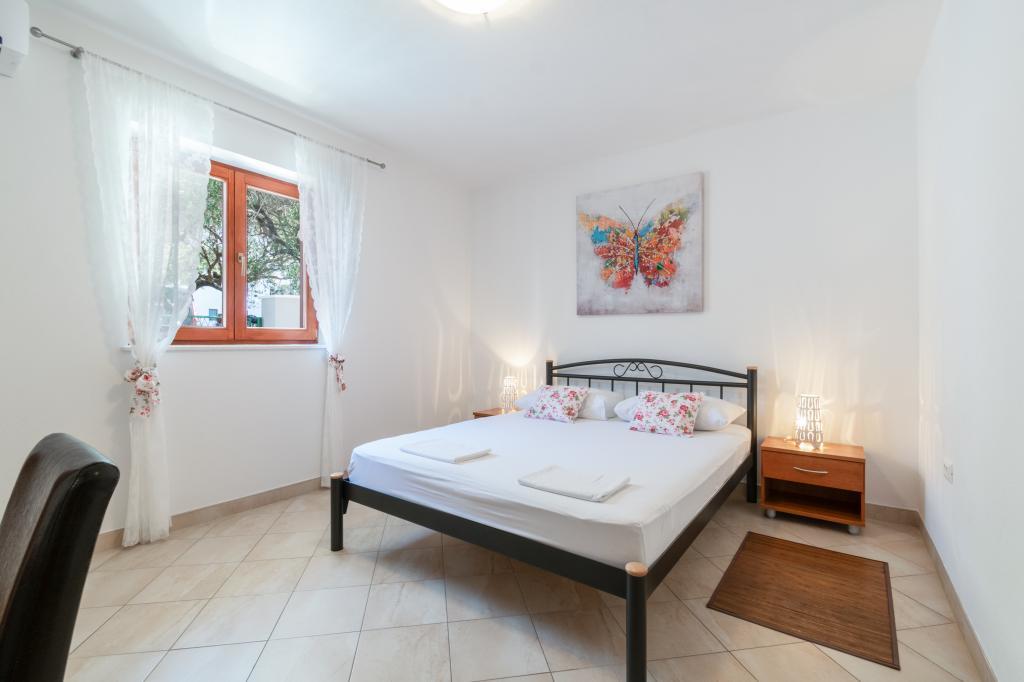 Przestronny i niedawno odnowiony trzypokojowy apartament (6+1) znajduje się w pięknej miejscowości Baška Voda u podnóża Biokova. Mieszkanie ma 2 przestronne pokoje z podwójnym łóżkiem i jeden pokój z podwójnym łóżkiem i dodatkowym łóżkiem, 2 łazienki, nowoczesną i wyposażoną kuchnię oraz przestronny taras z widokiem na Biokovo i morze. W apartamencie znajduje się wszystko, czego potrzeba do beztroskiego, przyjemnego i spokojnego wypoczynku: duży taras, klimatyzacja, Wi-Fi, telewizor LCD/SMART, pralka, grill, miejsce parkingowe, pościel, ręczniki. Rynek, piekarnia, sklep mięsny, poczta, apteka, kawiarnie i plaże znajdują się zaledwie kilka minut spacerem od hotelu. Samo centrum Baška Voda znajduje się zaledwie 5 minut spacerem od apartamentu z szeroką gamą restauracji, punktów gastronomicznych i sklepów z pamiątkami. Również w lecie bogata oferta sportów adrenalinowych (skutery wodne, deska sup, parasailing), rozrywka dla najmłodszych (nowe i atrakcyjne rowery wodne, łódź półpodwodna), leżaki. Ze względu na samo położenie apartamentu i bliskość centrum, w ciągu roku nie potrzeba nawet samochodu.