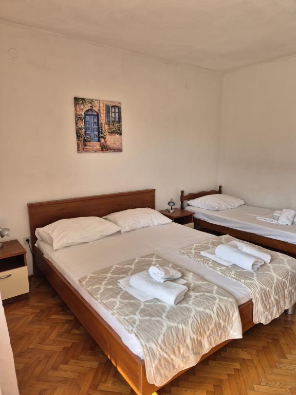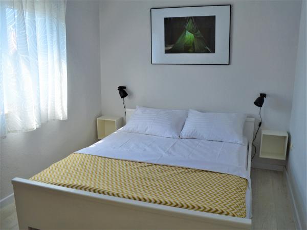 Całkowicie i nowocześnie wyposażone apartamenty w spokojnej okolicy w miejscowości Baska Voda, parking i pełna oferta wszystkiego, czego potrzebujesz na przyjemne i beztroskie wakacje (klimatyzacja, telewizor, internet, pralka, grill, ...) w przyjemnej atmosferze domowników. Blisko morza (200m) i obiektów rozrywkowych oraz wielu plaż. PARKOWANIE PRYWATNE jest dostępne na stronie. BEZPRZEWODOWY DOSTĘP DO INTERNETU jest dostępny w całym obiekcie i jest bezpłatny. Popularny dla rodzin z dziećmi (przestronny ogród i ogród, cicha lokalizacja). APARTAMENT A: 2 przestronne sypialnie z balkonem (2 łóżka podwójne i 1 łóżko pojedyncze) salon z 1 rozkładaną sofą, 3 łazienki, kuchnia ze zmywarką, jadalnia, widok na morze. APARTAMENT B: 2 sypialnie (2 podwójne łóżka), 2 łazienki, 2 balkony. APARTAMENT C: 1 sypialnia (1 duże łóżko podwójne), rozkładana sofa w jadalni, balkon. APARTAMENT D: 2 sypialnie (2 podwójne łóżka), 1 łazienka, balkon z widokiem na morze.