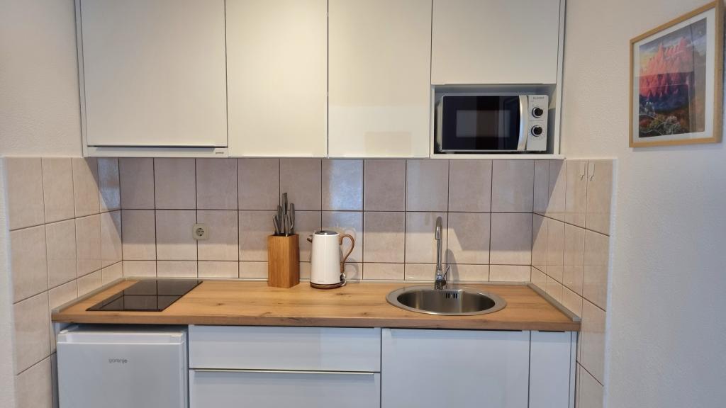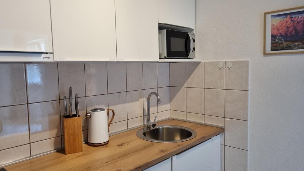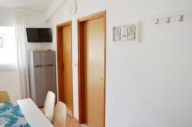 Spędziliśmy w tym zakwaterowaniu 10 dni. Mogę powiedzieć, że gospodyni to wspaniała kobieta! Miła, sympatyczna! Przywitała nas domowym brandy. Prawie codziennie dawała córce ciasteczko, tabliczkę czekolady i kawałek owocu. Zakwaterowanie jest schludne i czyste! Kuchnia jest chyba lepiej wyposażona niż moja w domu. W apartamencie znajduje się suszarka do włosów, deska do prasowania, żelazko i umywalka. Nasz samochód zaparkowaliśmy na dziedzińcu willi w cieniu. Morze jest oddalone o zaledwie 200 metrów, podobnie jak sklep. Konzum lub Tommy są równie daleko, jeśli wybierasz się na zakupy w górę lub w dół morza. Wszystkie rekomendacje. Mam nadzieję, że kiedyś znów zawitamy do Baške Vode, a jeśli tak, to na pewno znów zawitamy do Cioci Nevy.