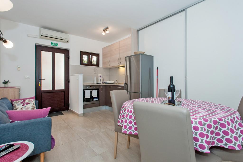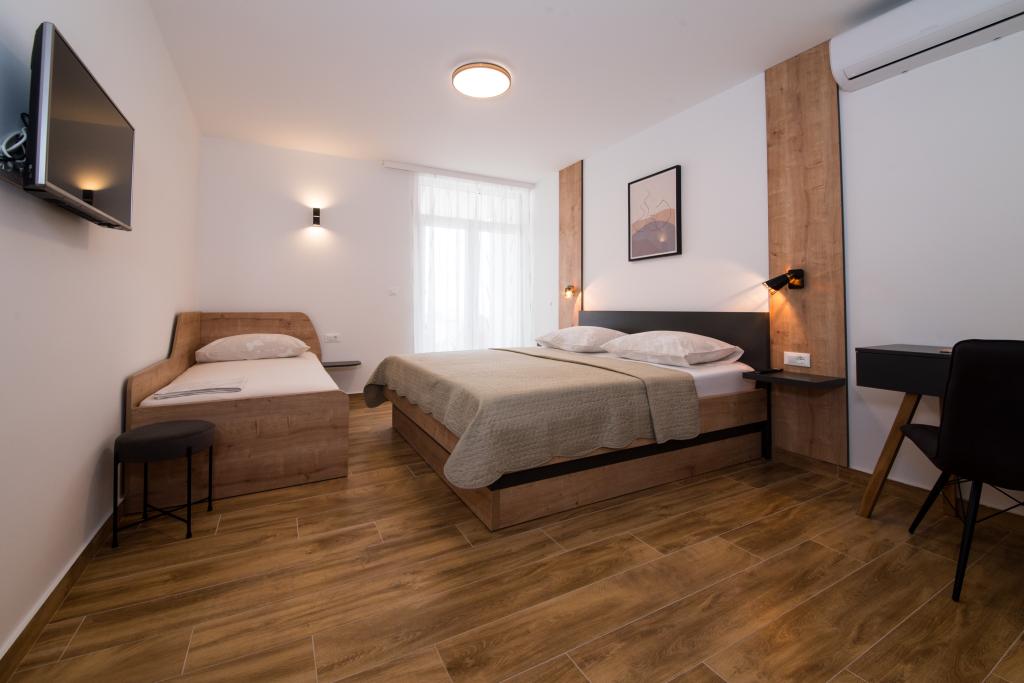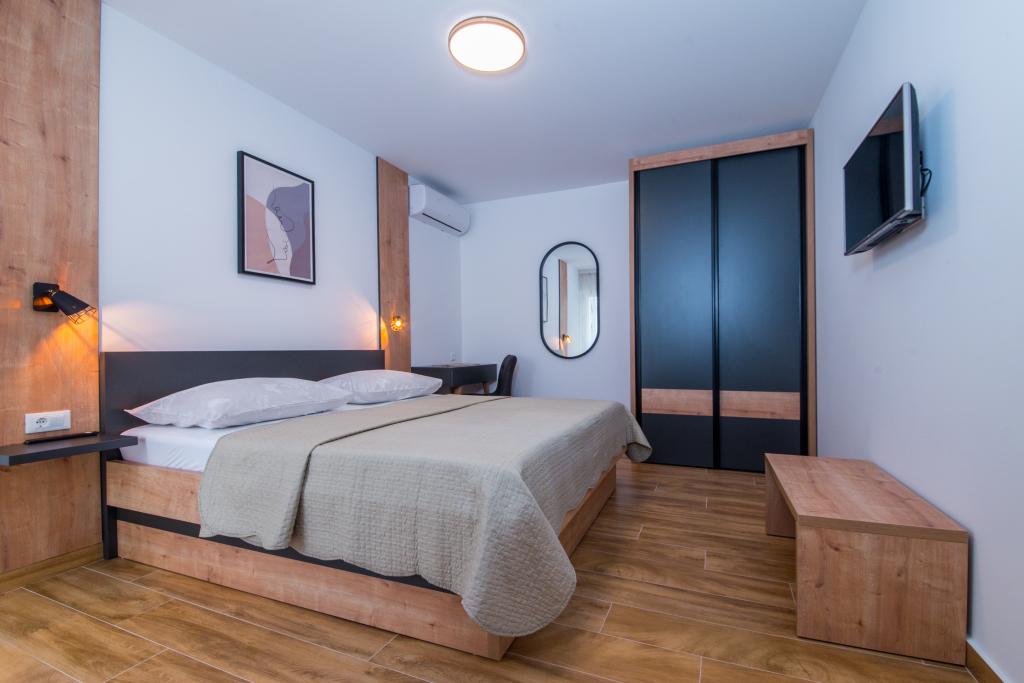 W naszym domu oferujemy komfortowe apartamenty z 2-7 łóżkami. Wszystkie apartamenty wyposażone są w kuchnię, klimatyzację i telewizję satelitarną. Znajdujemy się w spokojnej części miasta, zaledwie 100 metrów od morza i piaszczystej plaży. Restauracje i sklepy są łatwo dostępne i organizowanie wycieczek na wyspy i góry. Autostrada jest 20 km od hotelu.