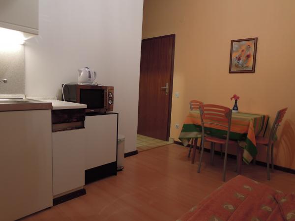 Studio jest bardzo zadbane. Gospodarze są wspaniali, przywitali nas domową brandy i owocami, które osobiście uprawiają. Studio, wyposażone we wszystko, co potrzebne do pobytu na morzu, ma wspaniały widok na morze z balkonu, z którego korzystaliśmy bardzo często, ponieważ mieszkaliśmy tam z 11 miesięcznym dzieckiem. Dostaliśmy nawet darmowe łóżeczko dla naszego dziecka. Wszystkie zalecenia.