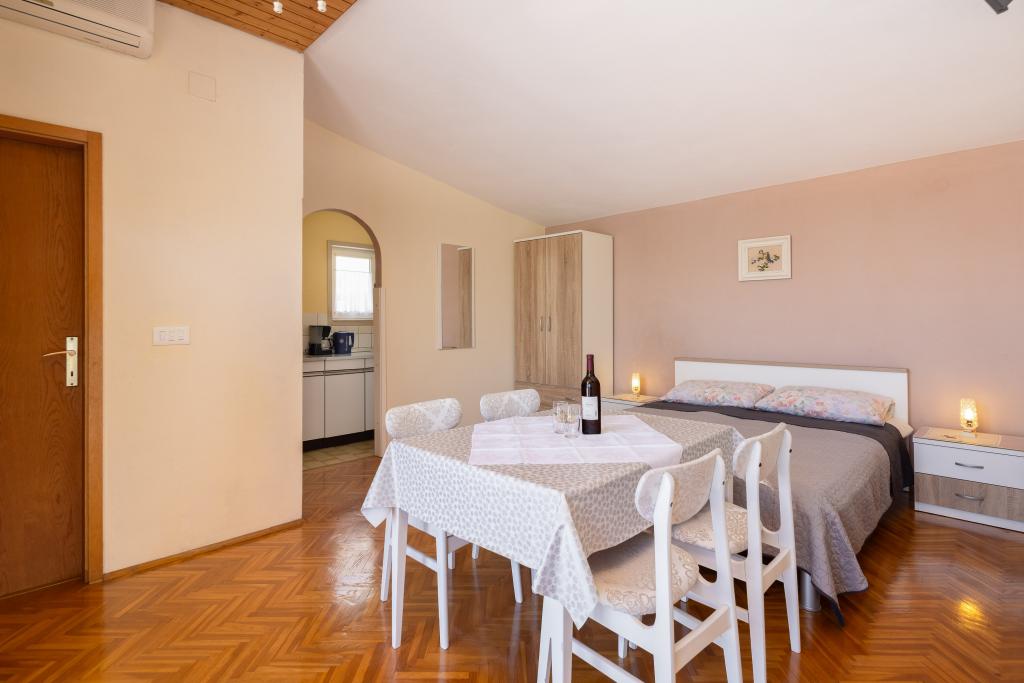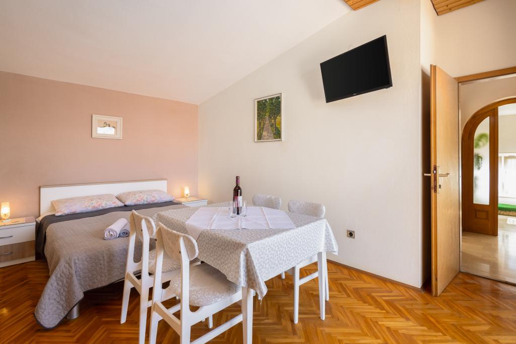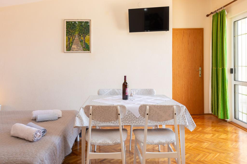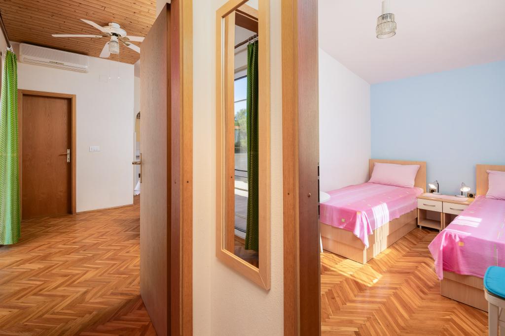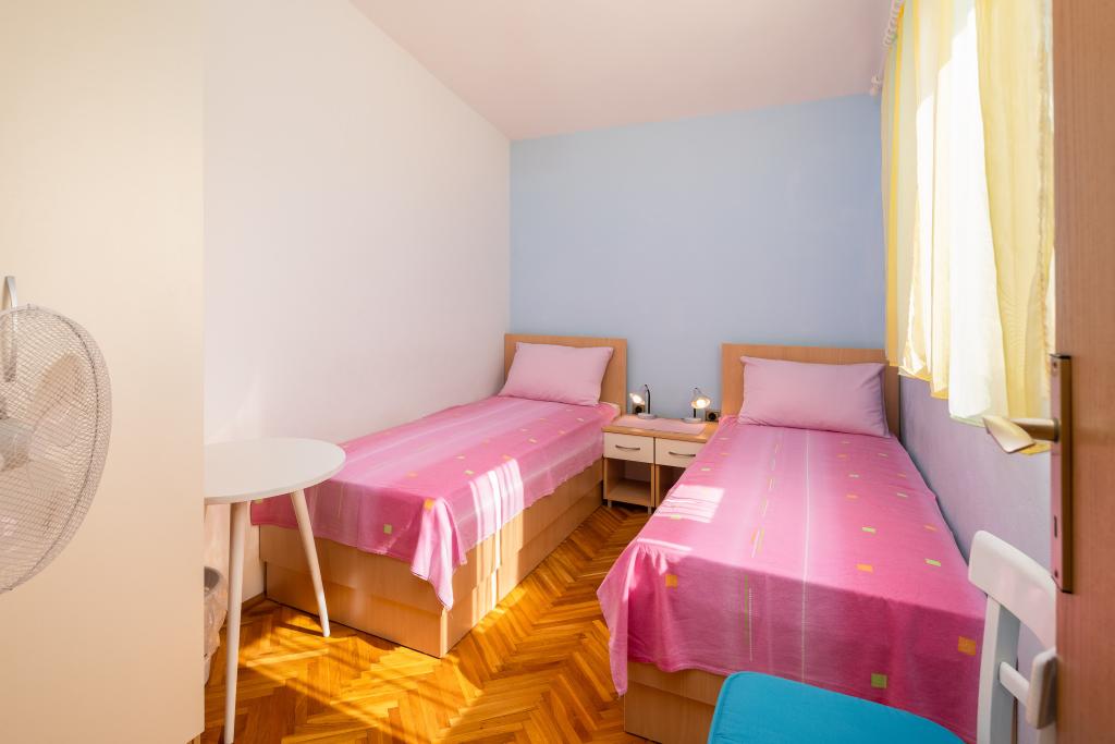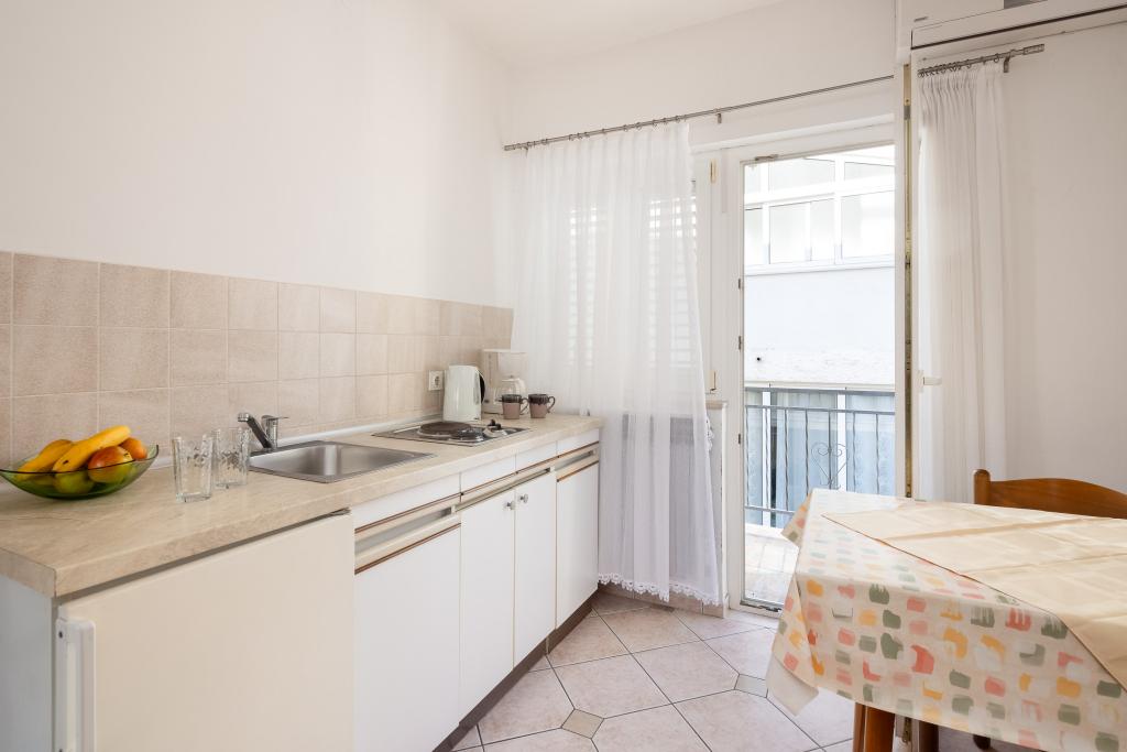 Położone w spokojnej części miejscowości Baška Voda, te apartamenty oferują komfortowe i praktyczne zakwaterowanie, zaledwie około 400 metrów od plaży. Idealny dla par, rodzin lub małych grup, obiekt obejmuje jeden przestronny apartament z dwiema sypialniami i dwiema łazienkami oraz mniejszy apartament odpowiedni dla 2 osób dorosłych i dziecka. Oba apartamenty charakteryzują się funkcjonalnym układem, wyposażonymi kuchniami, wygodnymi salonami i przestrzenią na świeżym powietrzu, w tym prywatnym balkonem i dostępem do wspólnego tarasu z grillem. Do dyspozycji gości jest również prywatny parking i spokojna okolica w pobliżu wszystkich udogodnień. Idealny wybór na relaksujący i beztroski pobyt w Baška Voda, z pomocą personelu przez cały pobyt.
