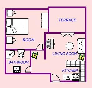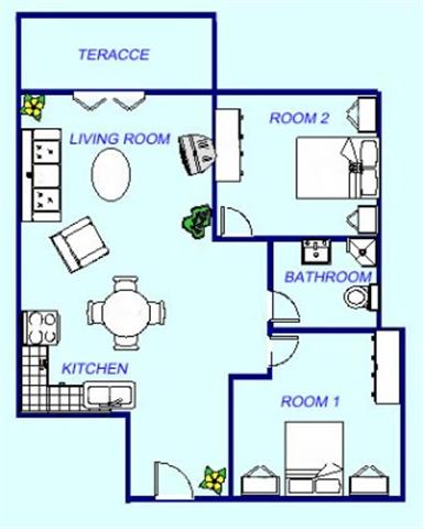 Apartament dla dwóch osób z dwoma dostawkami (45 m2)