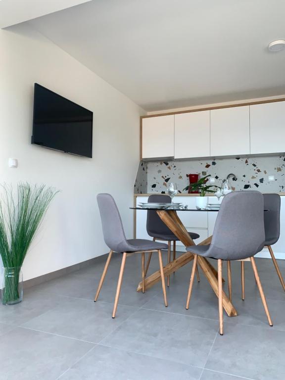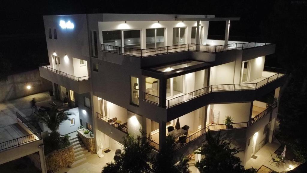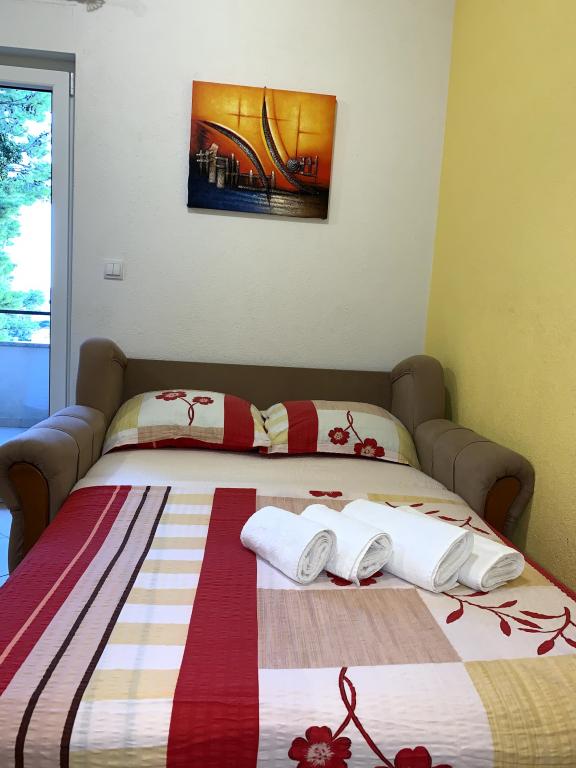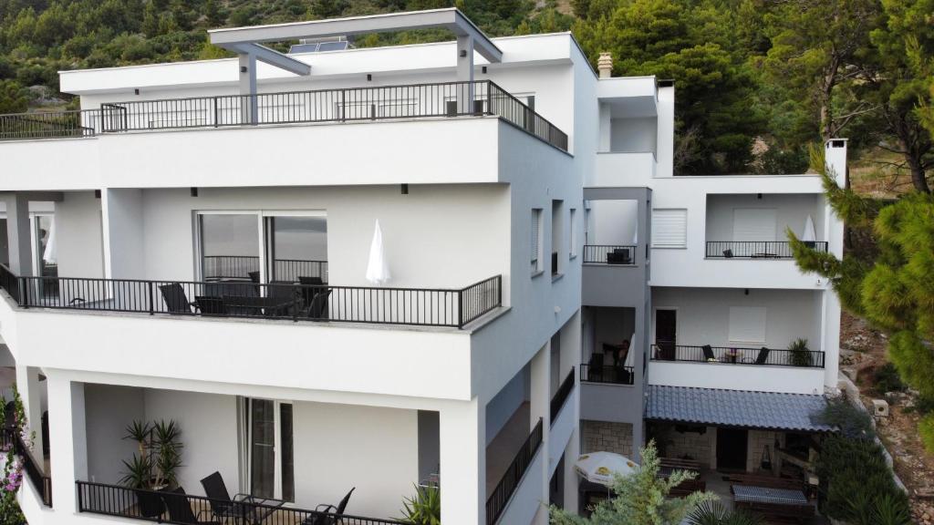 Nasze apartamenty zlokalizowane są w spokojnej okolicy miejscowości Baska Voda, w otoczeniu sosnowego lasu z pięknym widokiem na morze i wyspy. To pozwala na pełne spokoju i miłej atmosferze spędzić wakacje.
