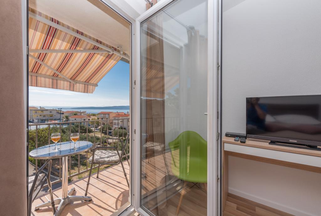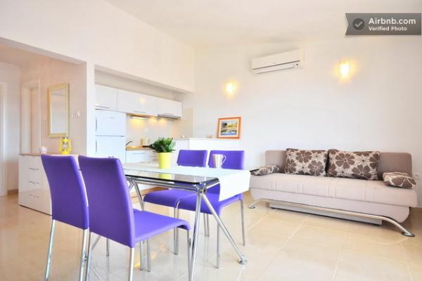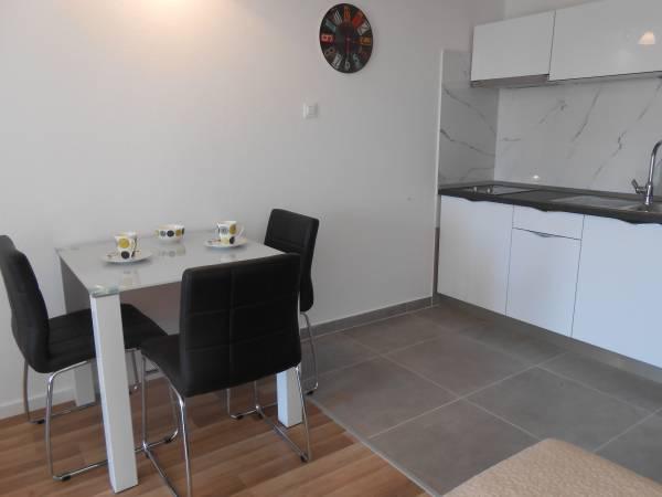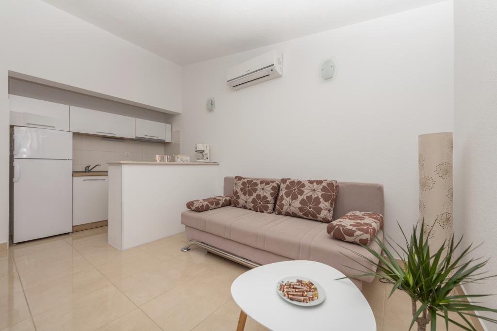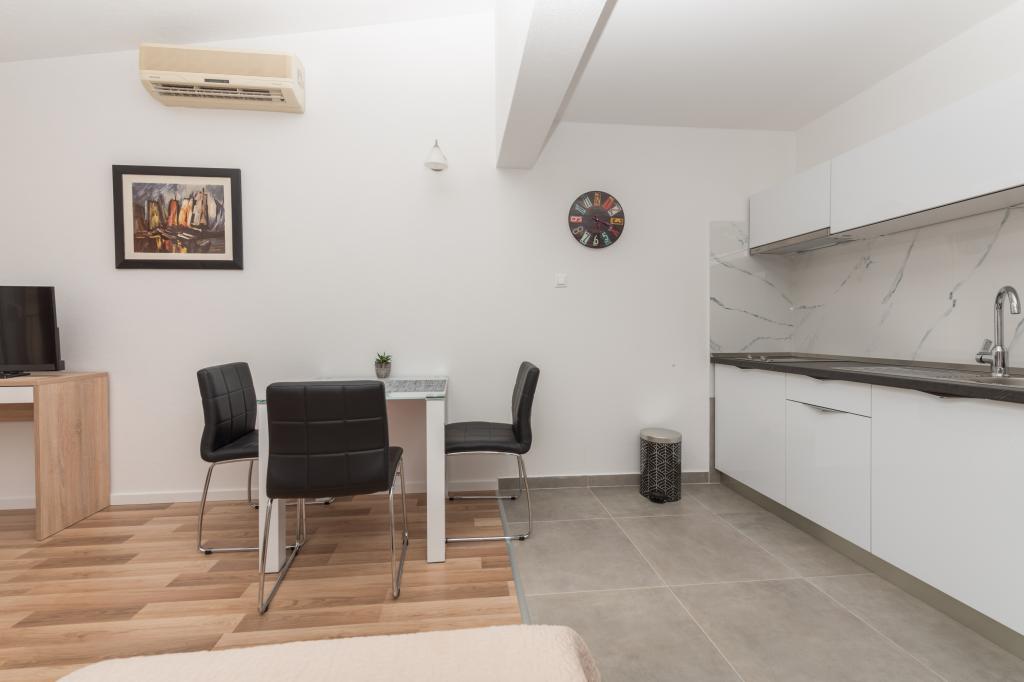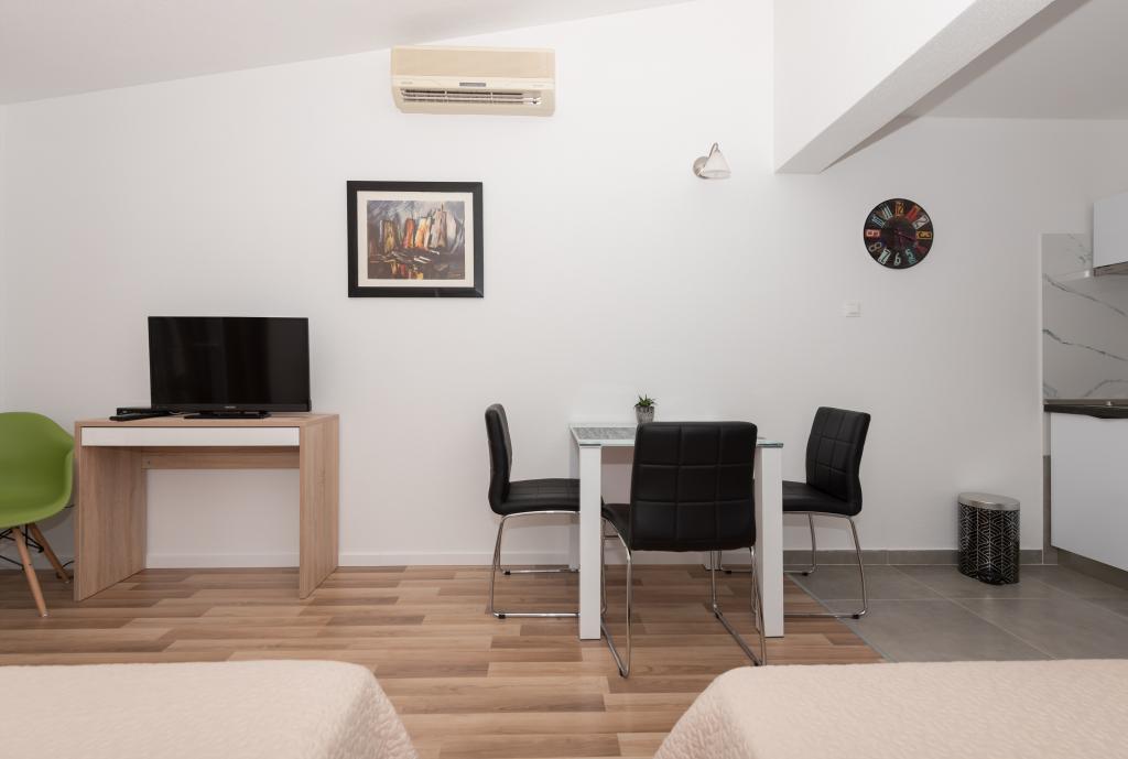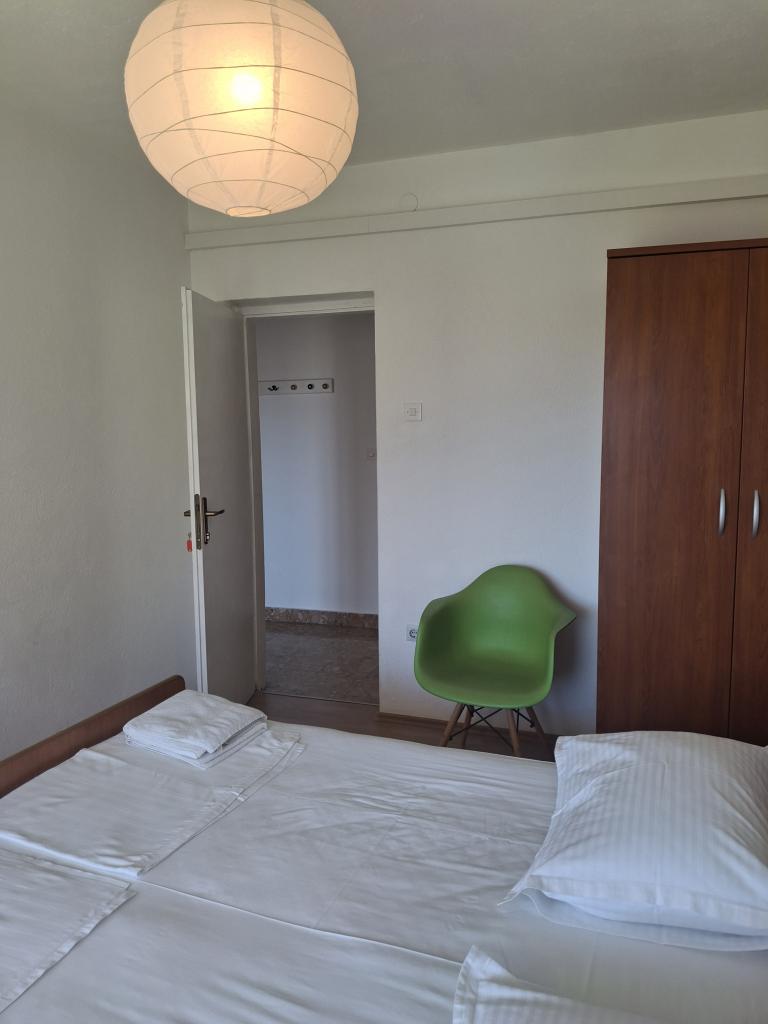 Klimatyzowane apartamenty z widokiem na morze, zaledwie 200 m od głównej plaży, 4 minuty spacerem. APARTAMENT 2+2 - komfortowy. Nowocześnie urządzony apartament o powierzchni 50 m2, oddzielna sypialnia z łóżkiem małżeńskim i rozkładaną sofą dla 2 osób w salonie. APARTAMENT 4+1 z 2 sypialniami i dużym salonem z rozkładaną sofą dla 1 osoby (dziecka). Odpowiedni dla rodzin i par. W pełni klimatyzowany, 3 klimatyzatory. APARTAMENT 3 - komfortowy apartament dla 2-3 osób z balkonem - spektakularny widok na morze i wyspy. W okolicy znajdują się restauracje, parking obok domu.