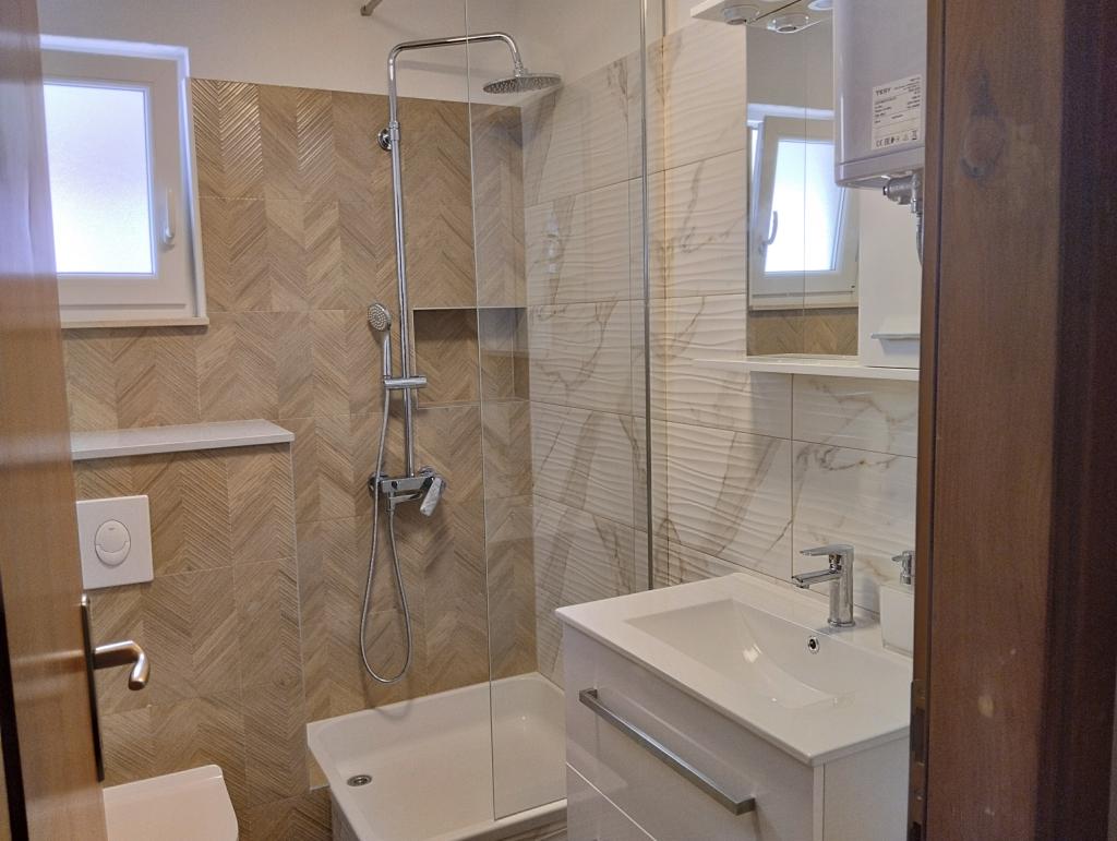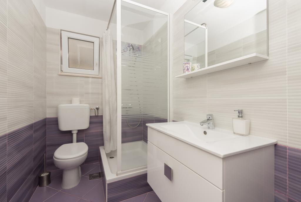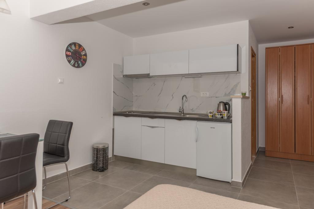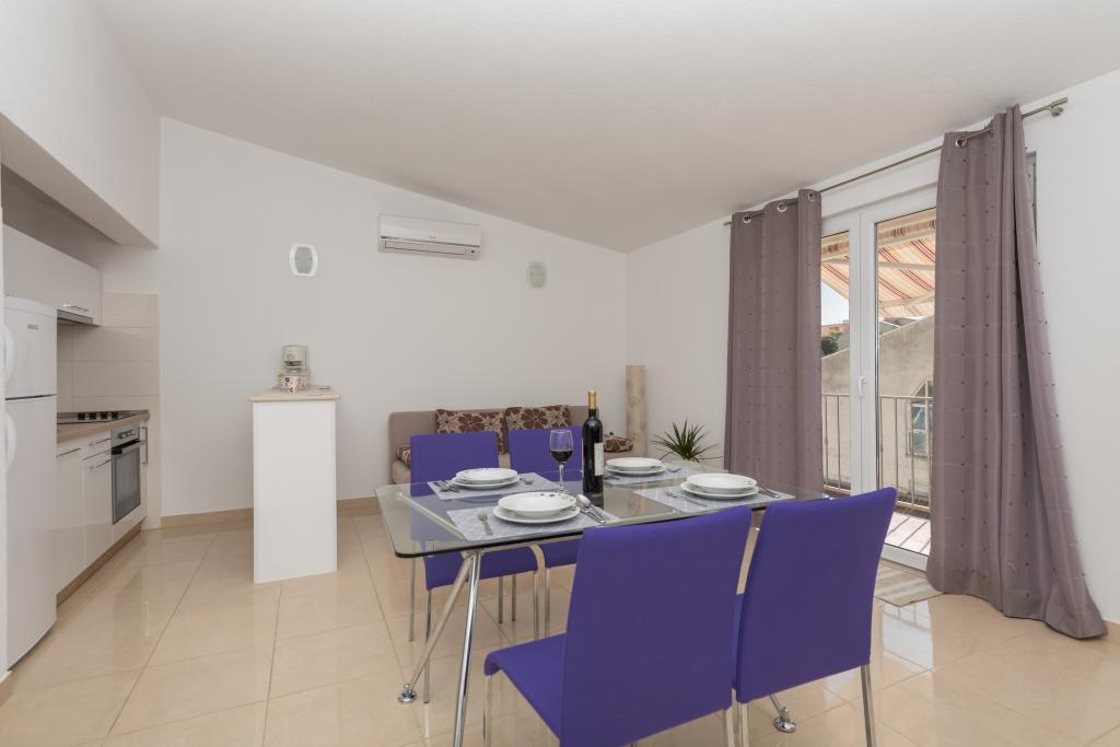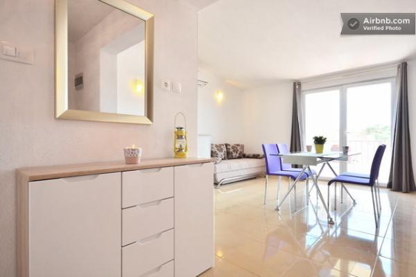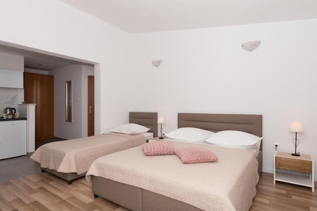 Klimatyzowane apartamenty z widokiem na morze, zaledwie 200 m od głównej plaży, 4 minuty spacerem. APARTAMENT 2+2 - komfortowy. Nowocześnie urządzony apartament o powierzchni 50 m2, oddzielna sypialnia z łóżkiem małżeńskim i rozkładaną sofą dla 2 osób w salonie. APARTAMENT 4+1 z 2 sypialniami i dużym salonem z rozkładaną sofą dla 1 osoby (dziecka). Odpowiedni dla rodzin i par. W pełni klimatyzowany, 3 klimatyzatory. APARTAMENT 3 - komfortowy apartament dla 2-3 osób z balkonem - spektakularny widok na morze i wyspy. W okolicy znajdują się restauracje, parking obok domu.