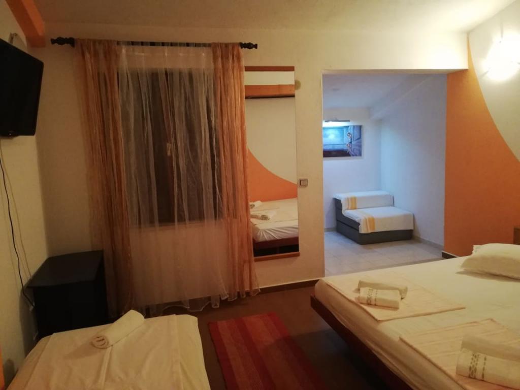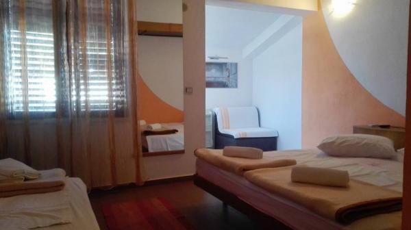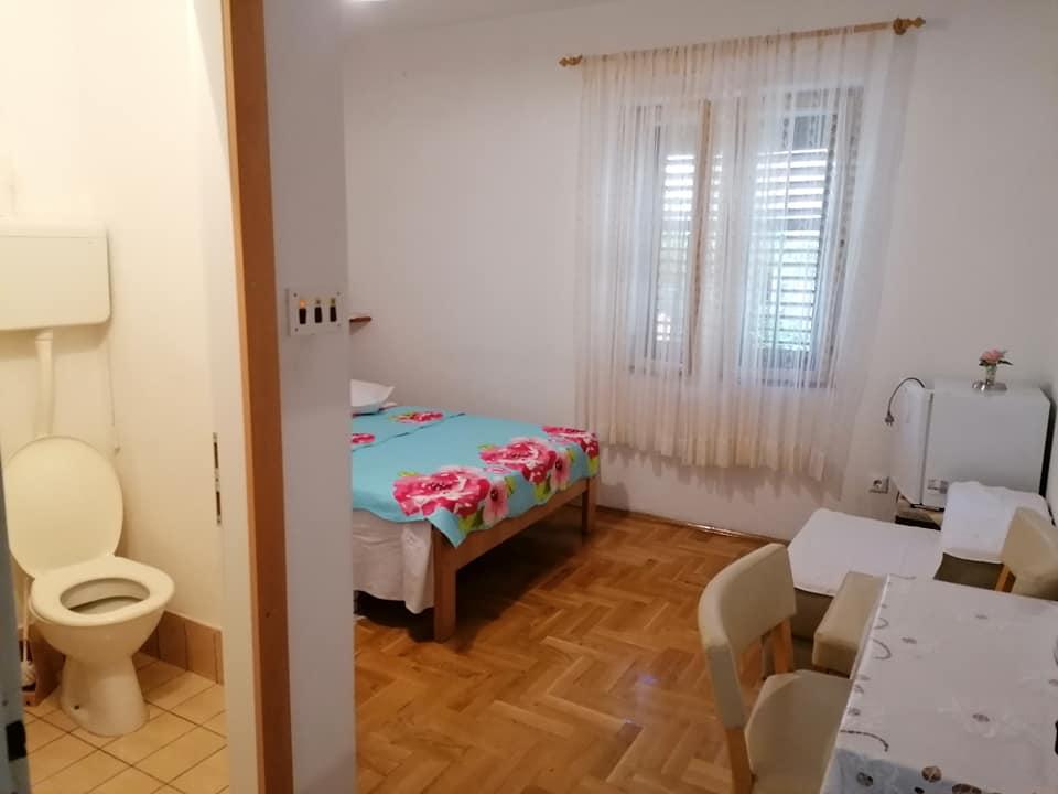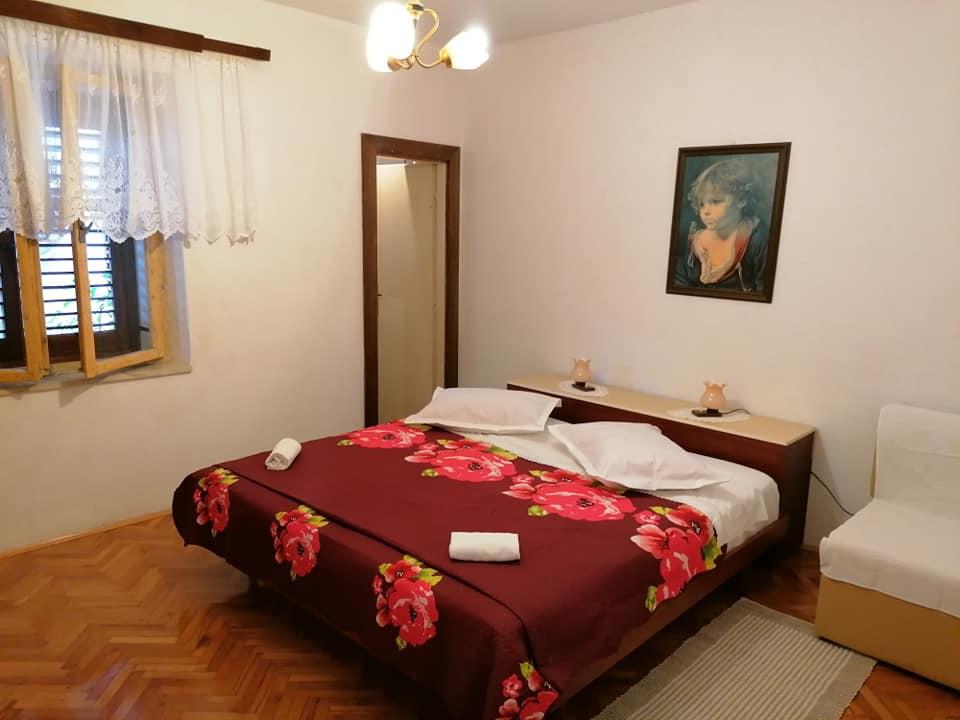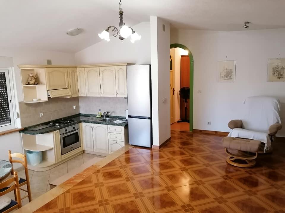 , Apartament, jednostka zakwaterowania znajduje się na pierwszym piętrze. Zawartość: Dwie sypialnie - jedna potrójna i jedna podwójna - każdy pokój ma własną toaletę, prysznic, telewizor, klimatyzację, lodówkę. Mieszkanie ma również jedną kuchnię i przestronny taras / wzdłuż. 12 m /. Mieszkanie jest w pełni wyposażone w pościel, ręczniki, kuchnię z zestawem kuchni, wi-fi, zarezerwowany parking. Odległość od plaży wynosi 150 m. Ponieważ mieszkanie znajduje się w centrum wioski wszystkie niezbędne usługi, takie jak; restauracje, kawiarnie, hotele, różne tarasy, bank, poczta, pogotowie ratunkowe, etc ..., znajdują się od 50 do max. 200 m. Goście mogą również wypożyczyć rowery do rekreacji, łódkę 7 m ze sternikiem na jednodniowe wycieczki do interesujących miejsc i wędkowania, a także różne informacje turystyczne w trakcie pobytu. Właściciel jest do Twojej dyspozycji.