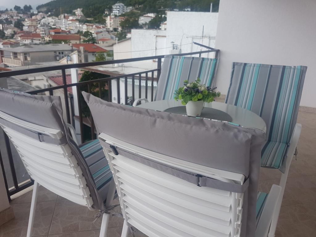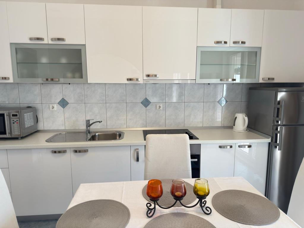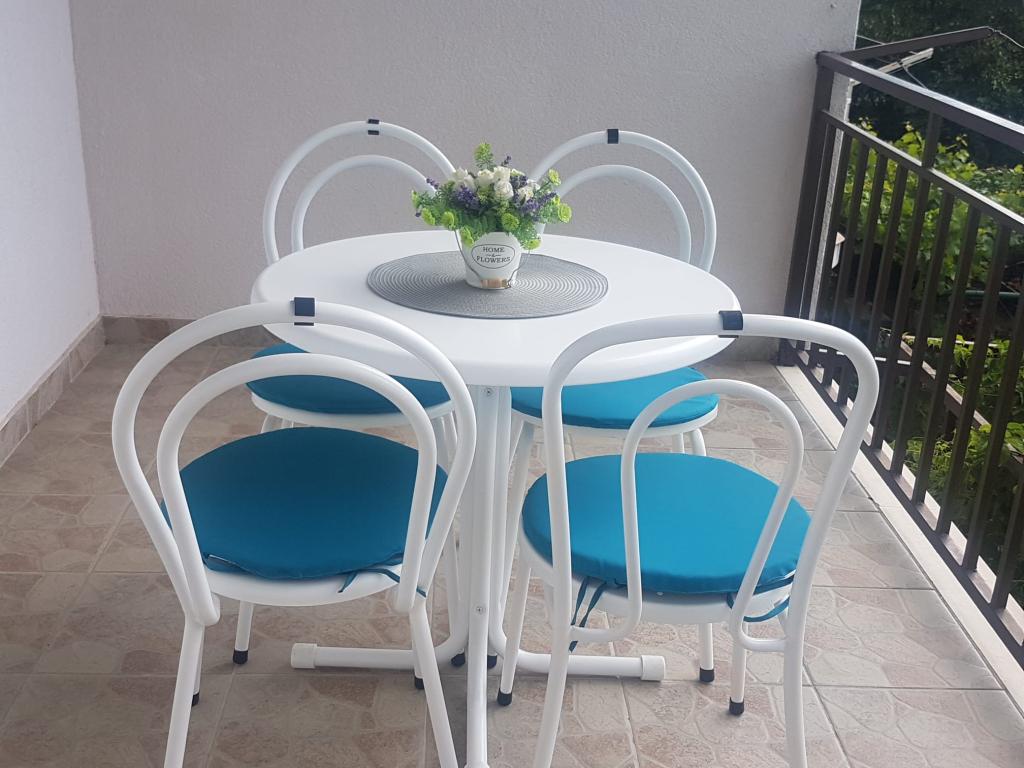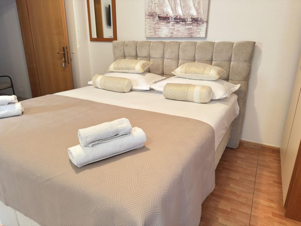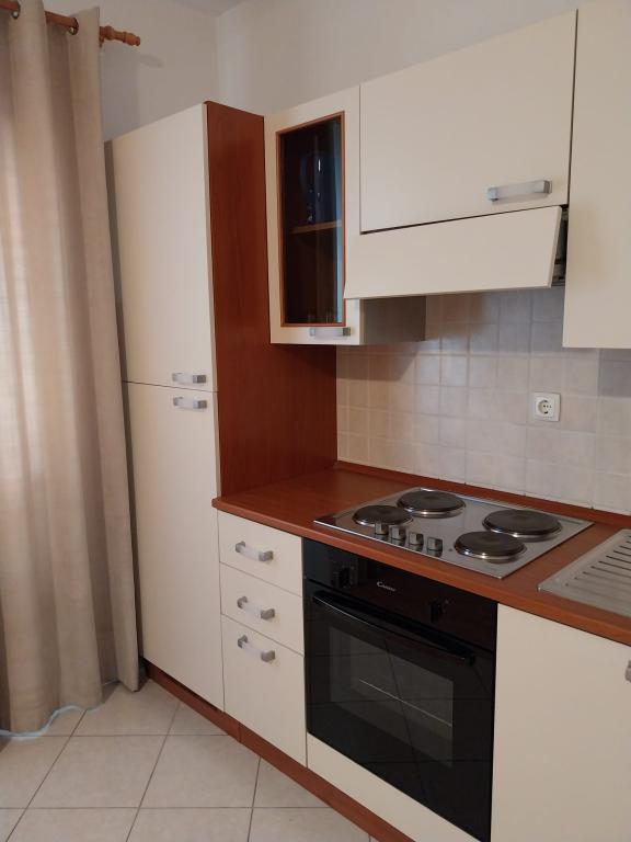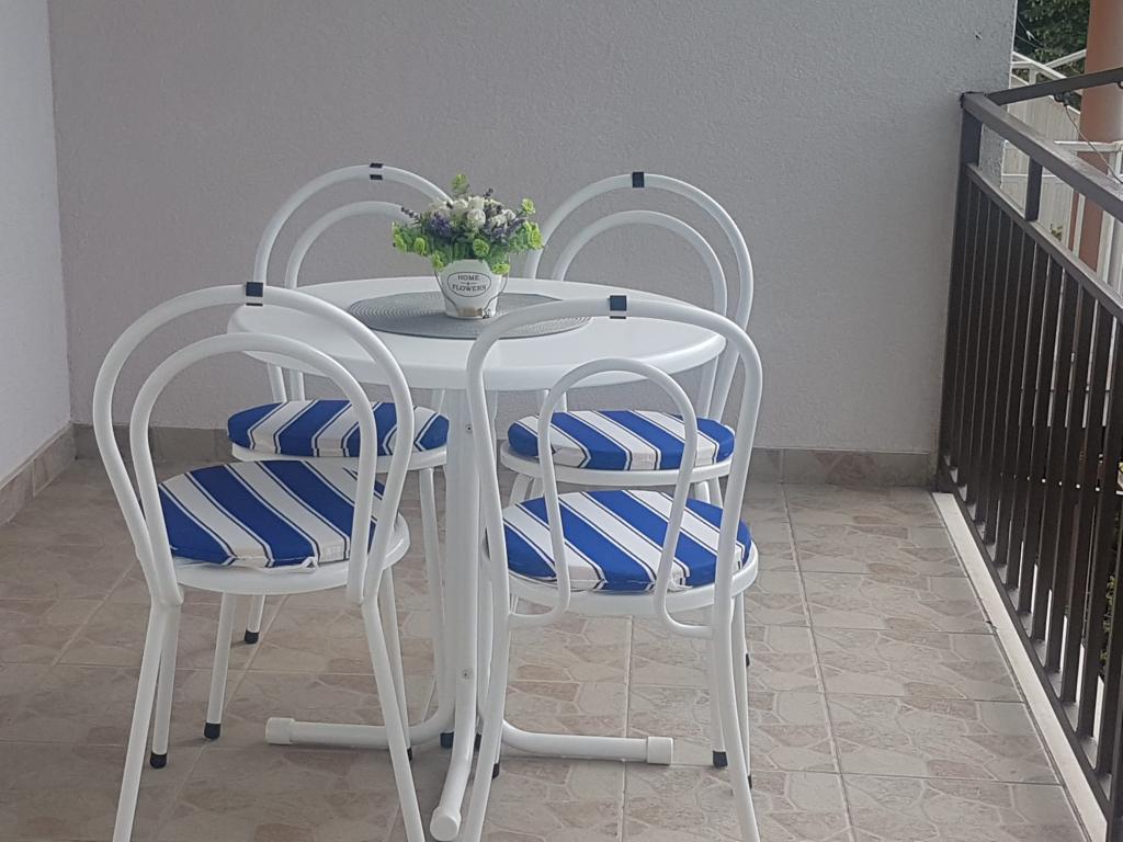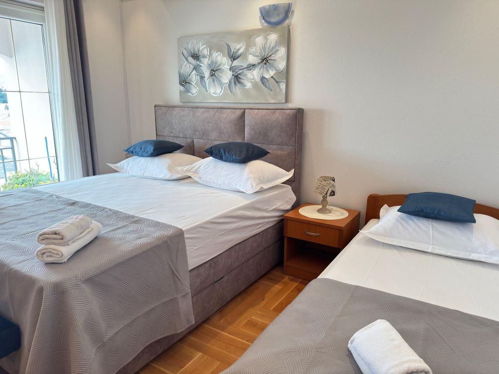 Bardzo fajny apartament z widokiem na morze. Duża kuchnia z wyposażeniem. Duży taras. Blisko do portu i plaży, 5 min spacerkiem. Obok lekarz, piekarnia i sklepik. Bardzo mili i pomocni właściciele. Wstsli do nas o 5 rano żeby się pożegnać. Apartament posiada miejsca parkingowe. Polecam