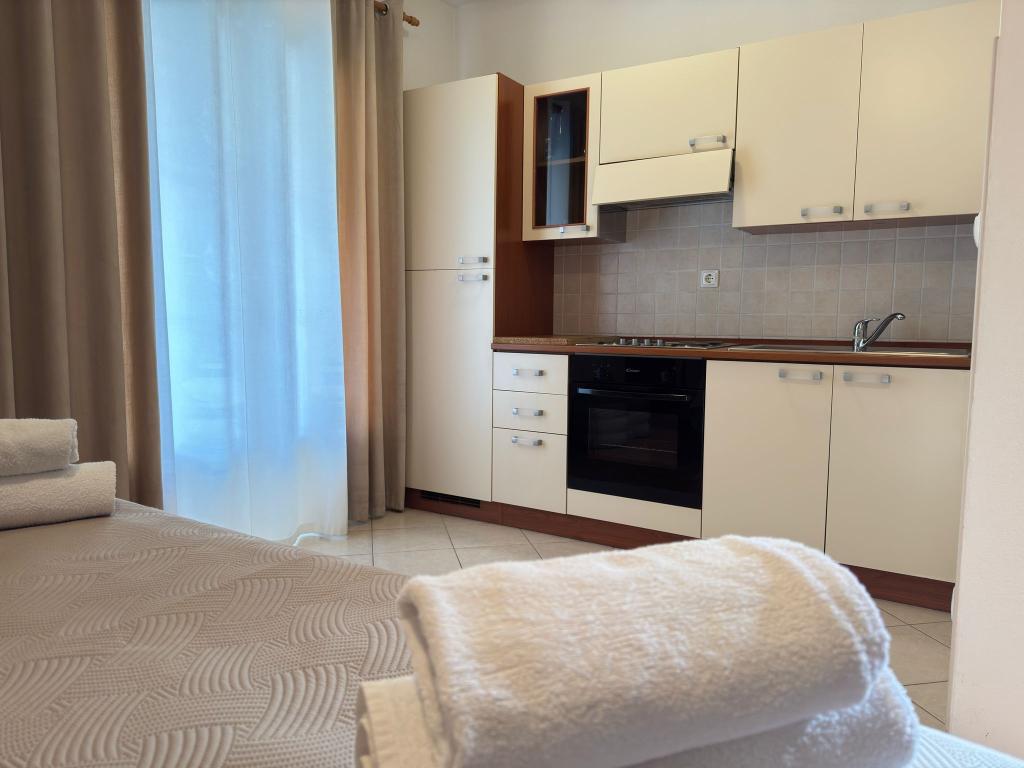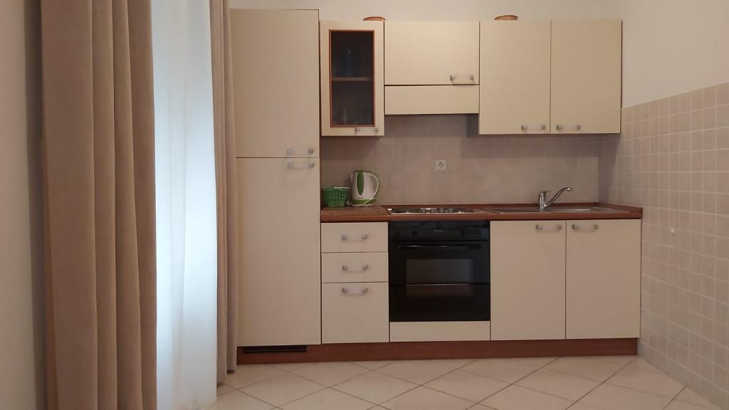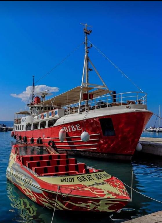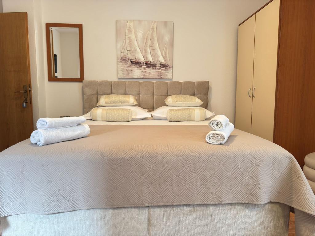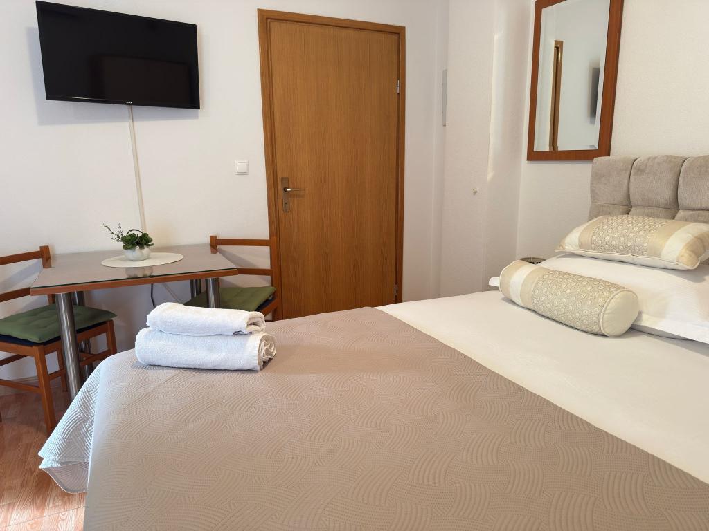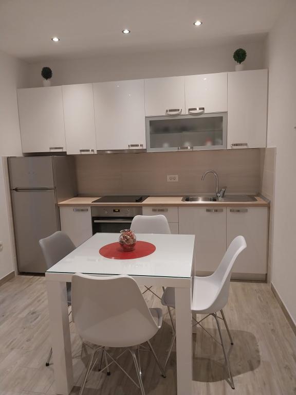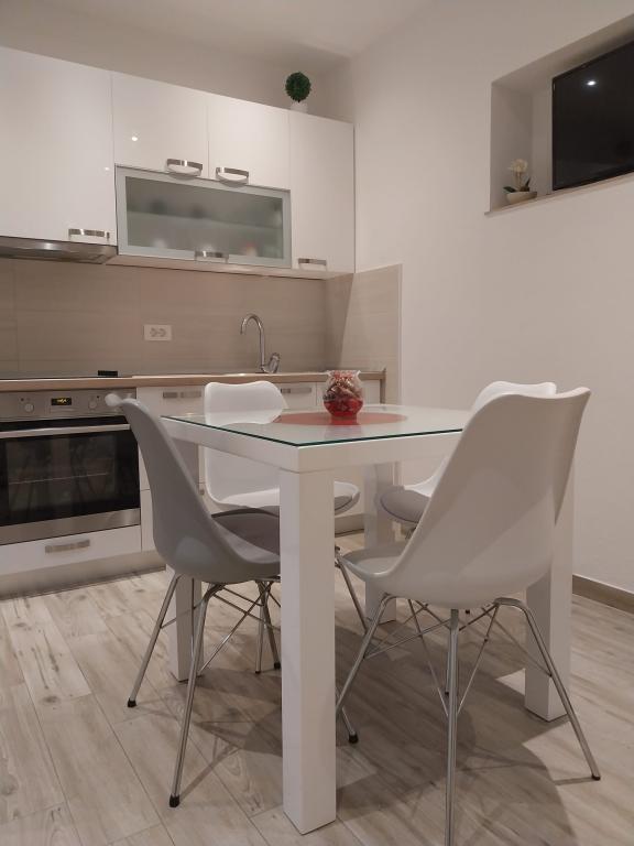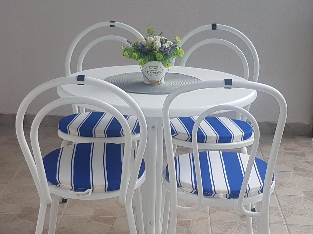 Bardzo fajny apartament z widokiem na morze. Duża kuchnia z wyposażeniem. Duży taras. Blisko do portu i plaży, 5 min spacerkiem. Obok lekarz, piekarnia i sklepik. Bardzo mili i pomocni właściciele. Wstsli do nas o 5 rano żeby się pożegnać. Apartament posiada miejsca parkingowe. Polecam