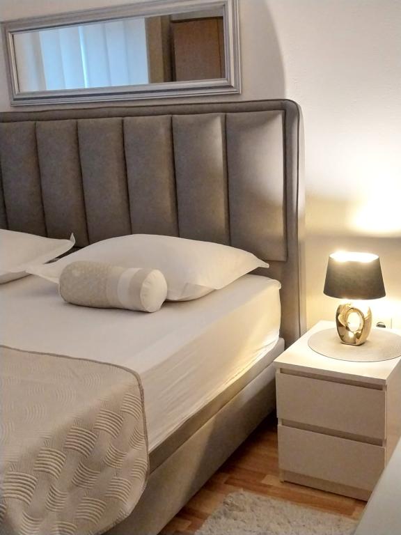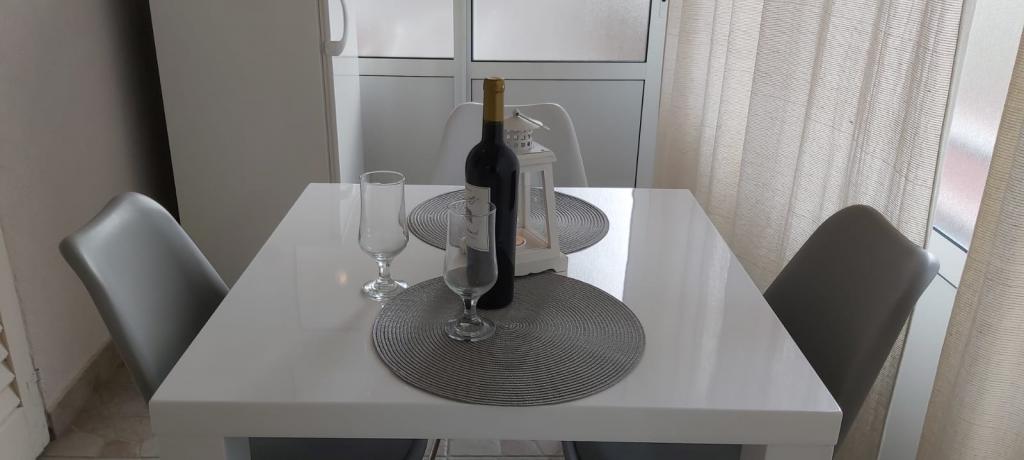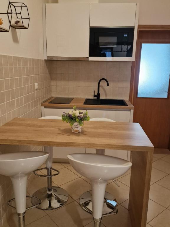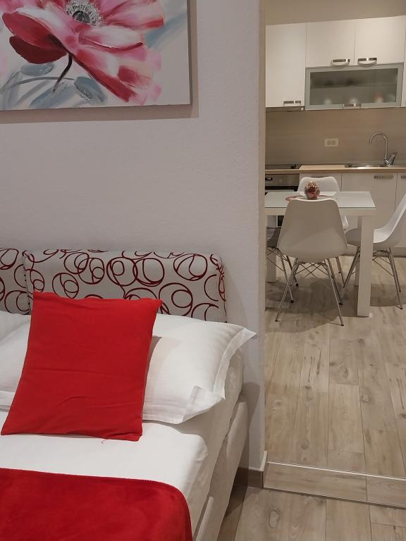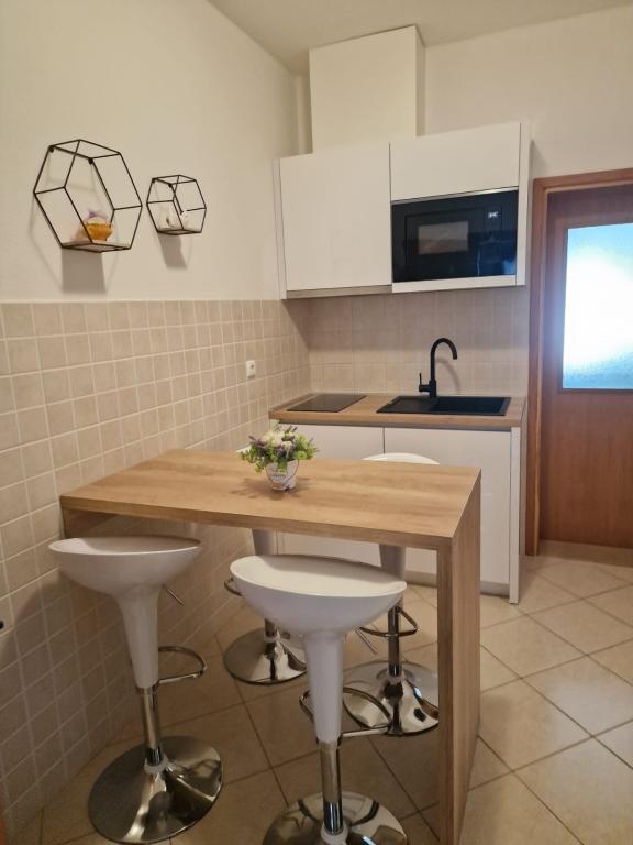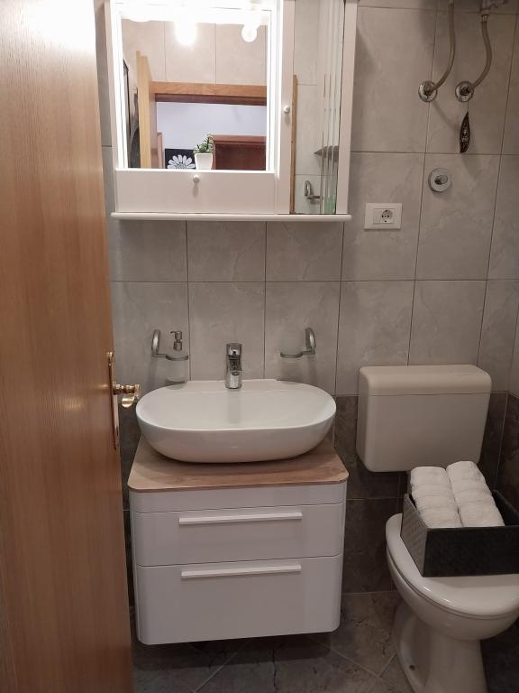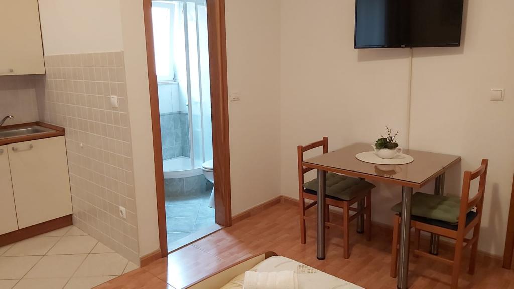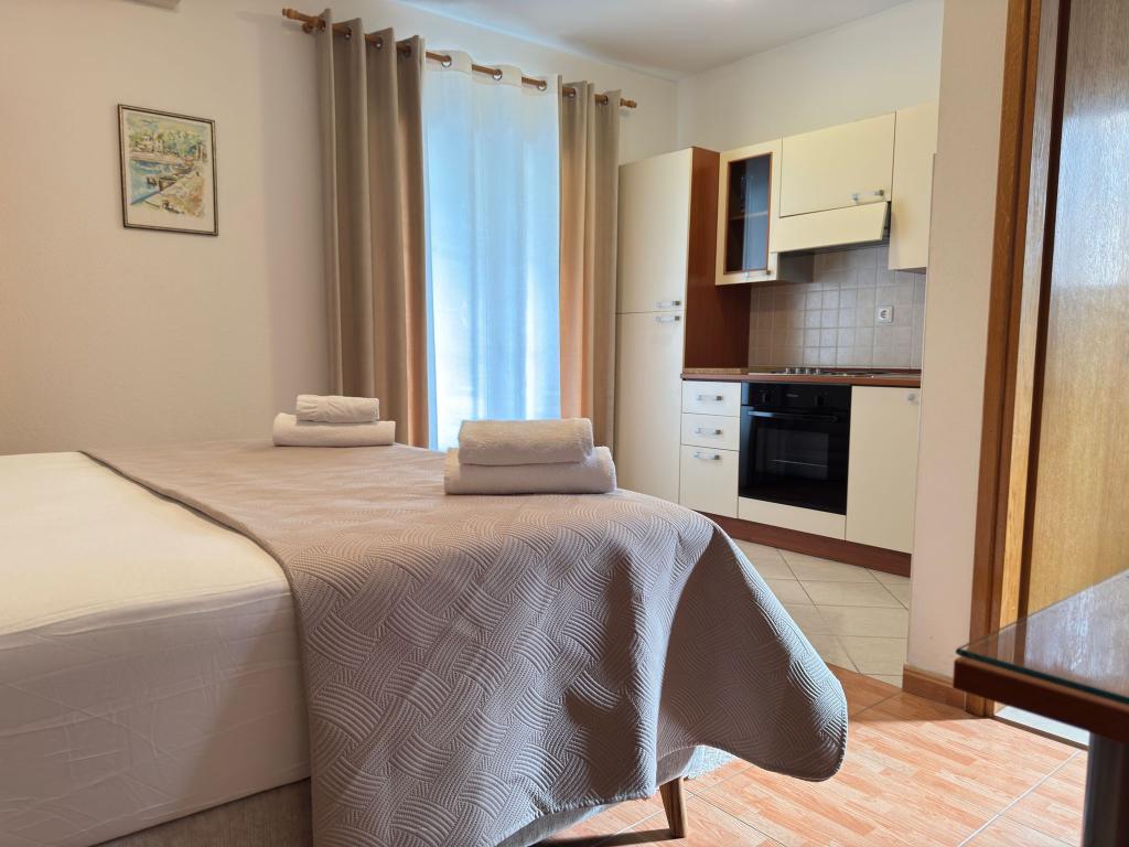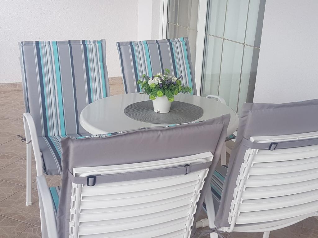 Bardzo fajny apartament z widokiem na morze. Duża kuchnia z wyposażeniem. Duży taras. Blisko do portu i plaży, 5 min spacerkiem. Obok lekarz, piekarnia i sklepik. Bardzo mili i pomocni właściciele. Wstsli do nas o 5 rano żeby się pożegnać. Apartament posiada miejsca parkingowe. Polecam