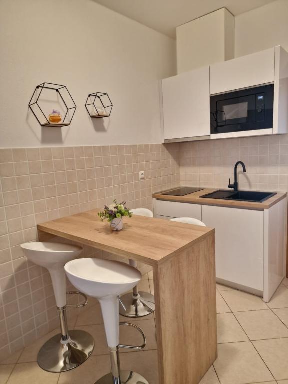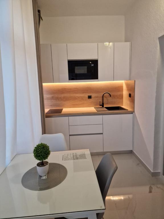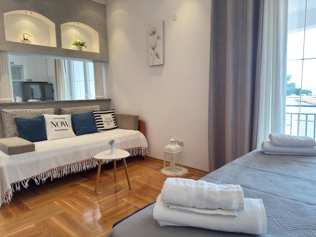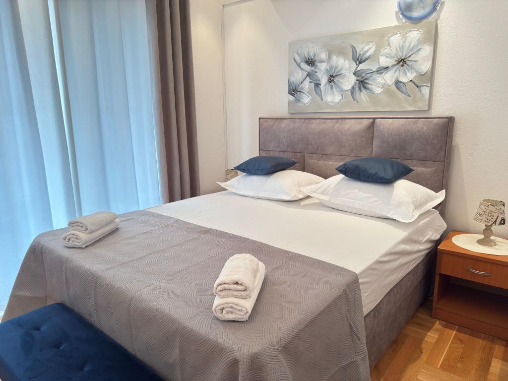 Znajdujemy się w centrum Baškiej Vody, ale w spokojnej okolicy, z dala od letnich tłumów. Oferujemy Państwu komfortowo urządzone apartamenty, nowocześnie umeblowane iw pełni wyposażone, aby zapewnić Państwu beztroski i przyjemny wypoczynek. Podkreślamy bliskość morza i plaży, która jest odznaczona Błękitną Flagą!