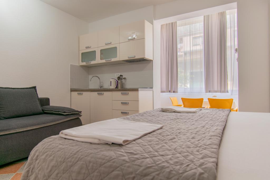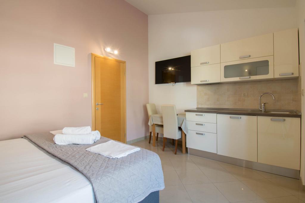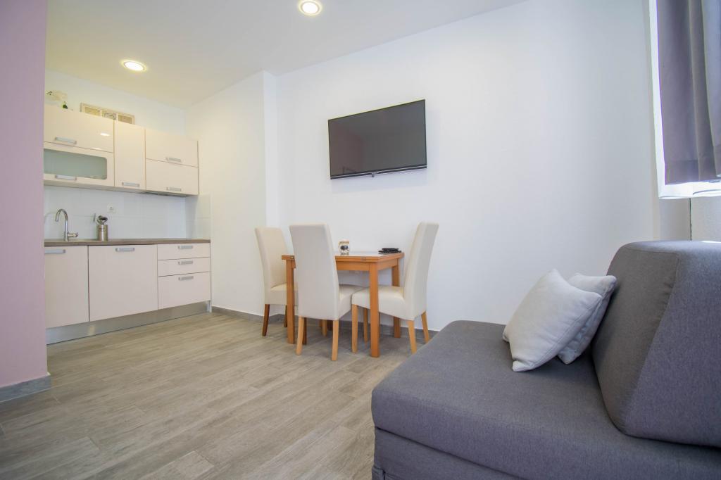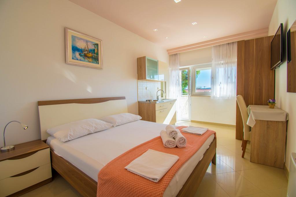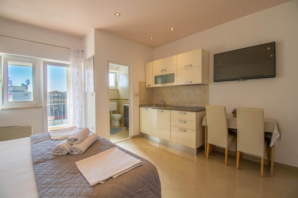 Mieszkaliśmy w apartamencie typu studio 2+2. Mieszkanie jest takie samo jak na zdjęciach, bardzo czyste i schludne, cała pochwała dla mieszkania i jego utrzymania. Gospodyni jest bardzo sympatyczna, nie nachalna i zawsze pomoże jeśli tego potrzebujesz... Z balkonu w mieszkaniu roztacza się wspaniały widok, widok urzekający. Jesteśmy zachwyceni, a dzieci naprawdę dobrze się bawiły. Z całego serca polecam każdemu, nie pożałujecie!