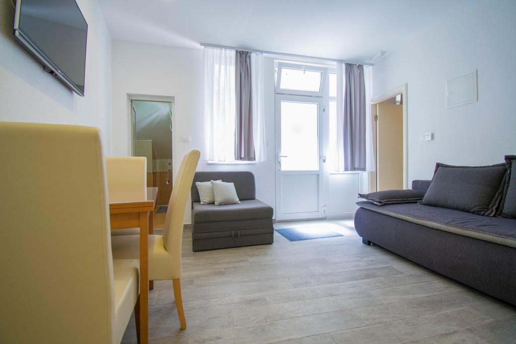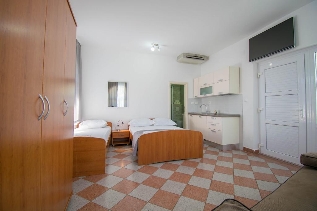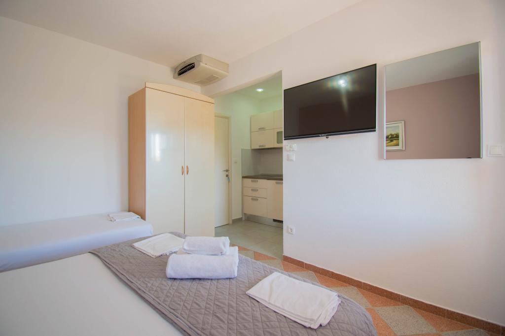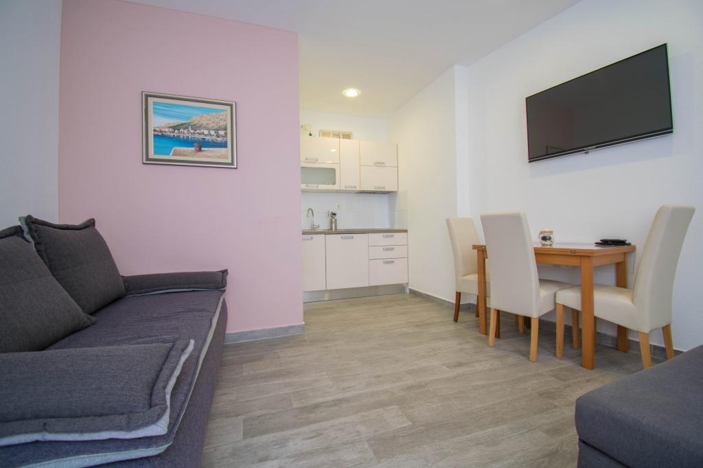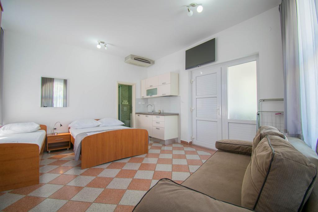 Mieszkaliśmy w apartamencie typu studio 2+2. Mieszkanie jest takie samo jak na zdjęciach, bardzo czyste i schludne, cała pochwała dla mieszkania i jego utrzymania. Gospodyni jest bardzo sympatyczna, nie nachalna i zawsze pomoże jeśli tego potrzebujesz... Z balkonu w mieszkaniu roztacza się wspaniały widok, widok urzekający. Jesteśmy zachwyceni, a dzieci naprawdę dobrze się bawiły. Z całego serca polecam każdemu, nie pożałujecie!