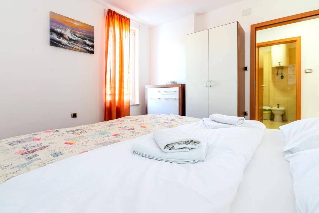 Mieszkanie znajduje się na 2. i 3. piętrze. Posiada 2 pokoje dwuosobowe z podwójnymi łóżkami, 1 pokój dwuosobowy z pojedynczymi łóżkami, pokój dzienny z sofą dla 2 osób, 2 łazienki, w pełni wyposażoną kuchnię i jadalnię. Apartament ten położony jest około 3 minuty spacerem od centralnej plaży. Ten nowoczesny apartament położony jest w spokojnej okolicy i wyposażony jest w 3 klimatyzatory, bezpłatny bezprzewodowy dostęp do Internetu, telewizję satelitarną, przestronny taras oraz bezpłatny prywatny parking przed domem. W pobliżu obiektu znajduje się także niewielki sklep i restauracja.