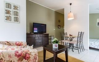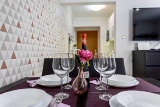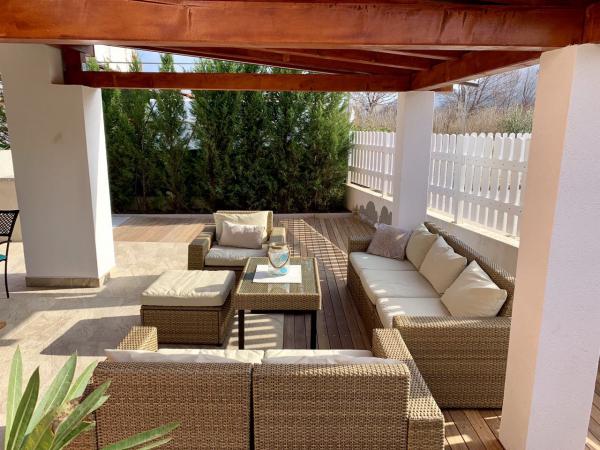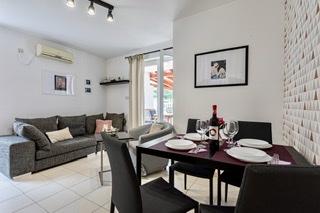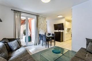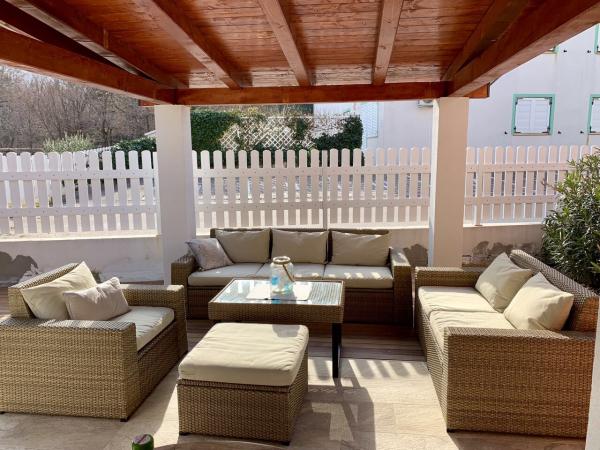 Nowocześnie urządzony iw pełni wyposażony apartament z dużym tarasem i ogrodem. Znajduje się w Bašce, najpopularniejszym kurorcie letniskowym na wyspie Krk, znanym z najpiękniejszej piaszczystej plaży. Mieszkanie znajduje się przy cichej ulicy, zaledwie 400 m od głównej plaży Bašča - plaży Vela, wszystkich restauracji, kawiarni i promenady otaczającej plażę o długości 3 km. Mieszkanie składa się z kuchni wyposażonej w płytę grzewczą, piekarnik, lodówkę, niezbędne naczynia, czajnik, toster, ekspres do kawy przelewowy. Sypialnia wyposażona jest w łóżko o wymiarach 160x200 oraz szafę. Łazienka z kabiną prysznicową. Salon wyposażony jest w telewizor, antenę satelitarną, dużą sofę i stół jadalny. Drugie łóżko o wymiarach 160x200 znajduje się w salonie. Mieszkanie jest klimatyzowane i posiada nieograniczoną sieć WIFI. Taras wyposażony jest w meble ogrodowe, a w ogrodzie można relaksować się na ogrodowych leżakach i chłonąć promienie słońca. Przed budynkiem przypada 1 miejsce parkingowe na apartament.