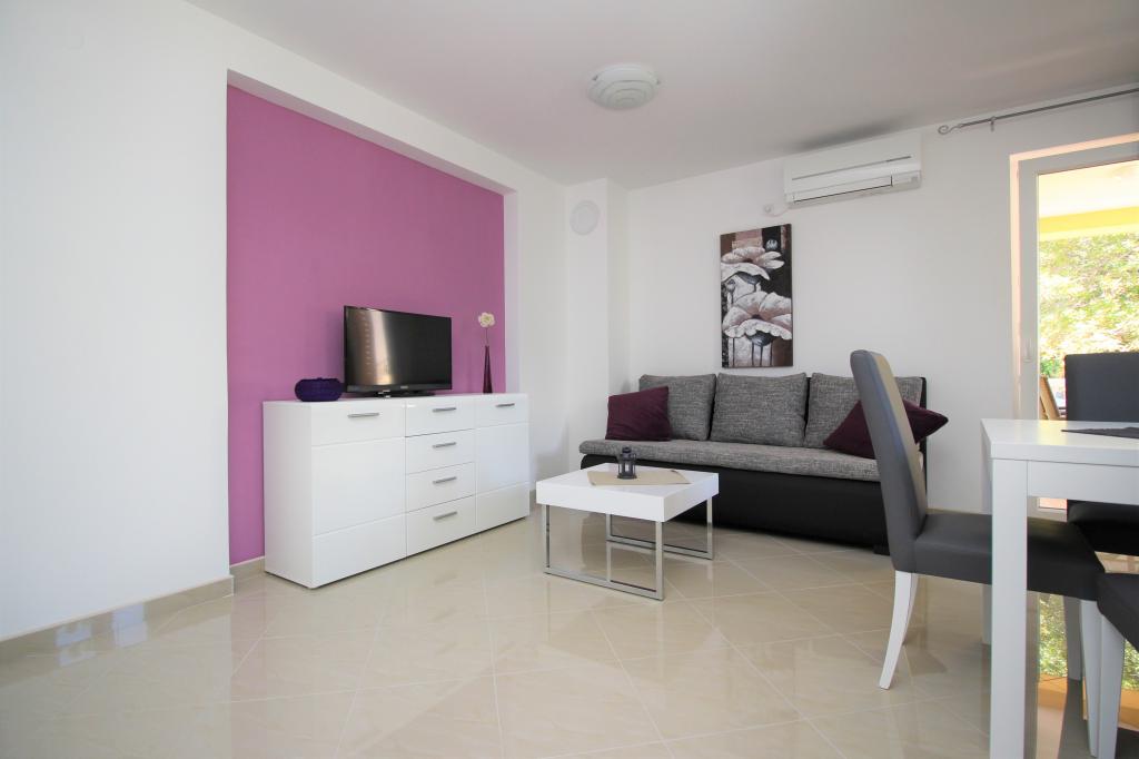 Nowocześnie urządzone apartamenty, zaledwie 5 minut spacerem od pięknej plaży Vela, ze wspólnym odkrytym basenem i grillem. Dom oferuje 9 apartamentów wyposażonych w zmywarkę, pralkę, sejf, klimatyzację, internet i telewizję satelitarną. Do każdego apartamentu przynależy jedno miejsce parkingowe. Zwierzęta nie są mile widziane.