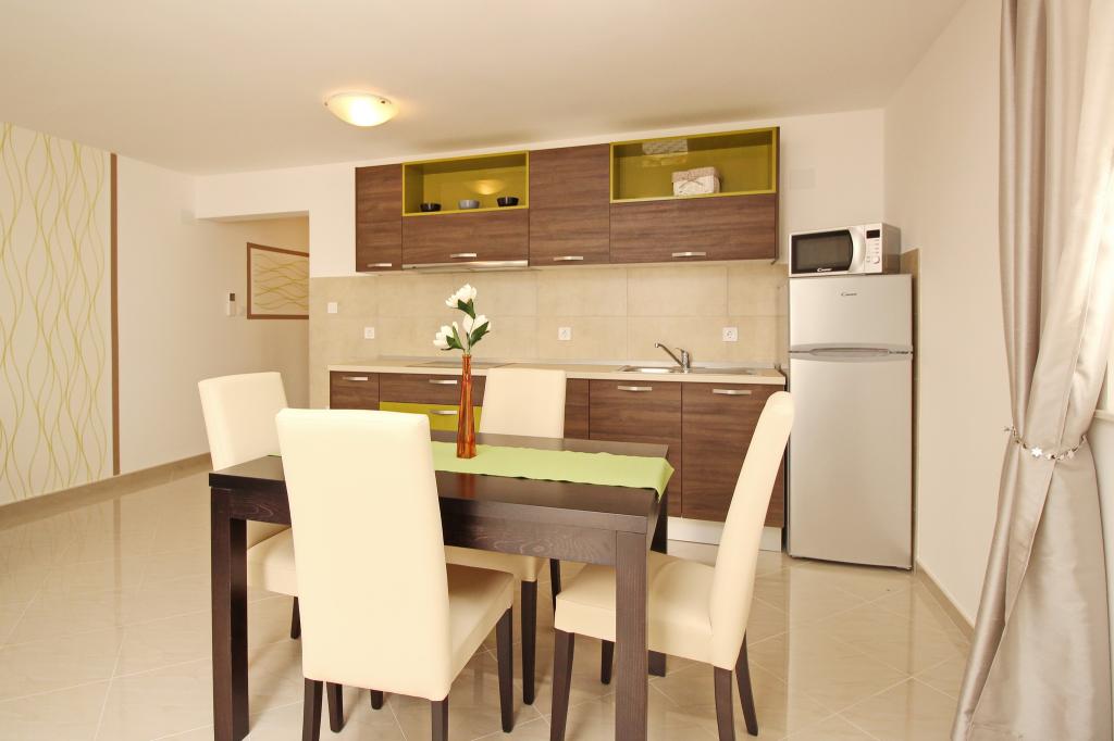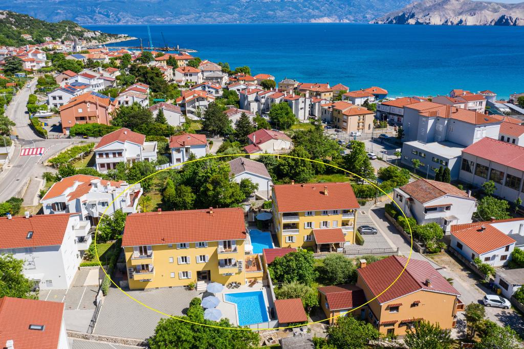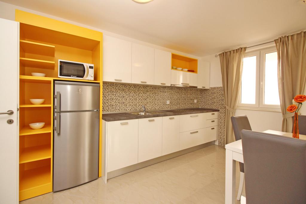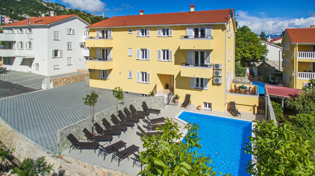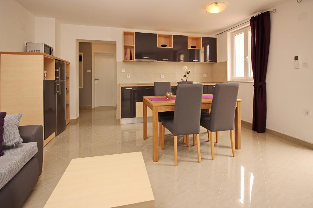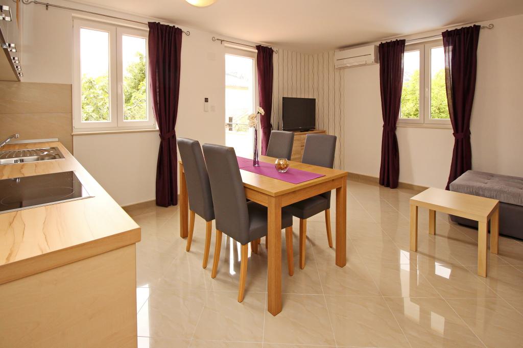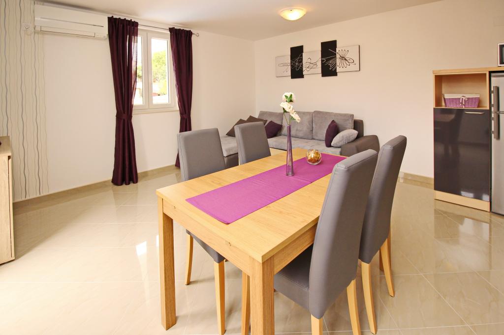 Nowocześnie urządzone apartamenty, zaledwie 300 metrów od pięknej plaży Vela Plaža, ze wspólnym odkrytym basenem i grillem. Dom oferuje 13 apartamentów, z których 4 znajdują się w piwnicy. Apartamenty w piwnicy mają dostęp do wspólnego tarasu (20 m²) na piętrze. Każdy apartament wyposażony jest w zmywarkę, pralkę, klimatyzację, internet i telewizję satelitarną. Goście mają do dyspozycji jedno miejsce parkingowe. Zwierzęta nie są akceptowane.