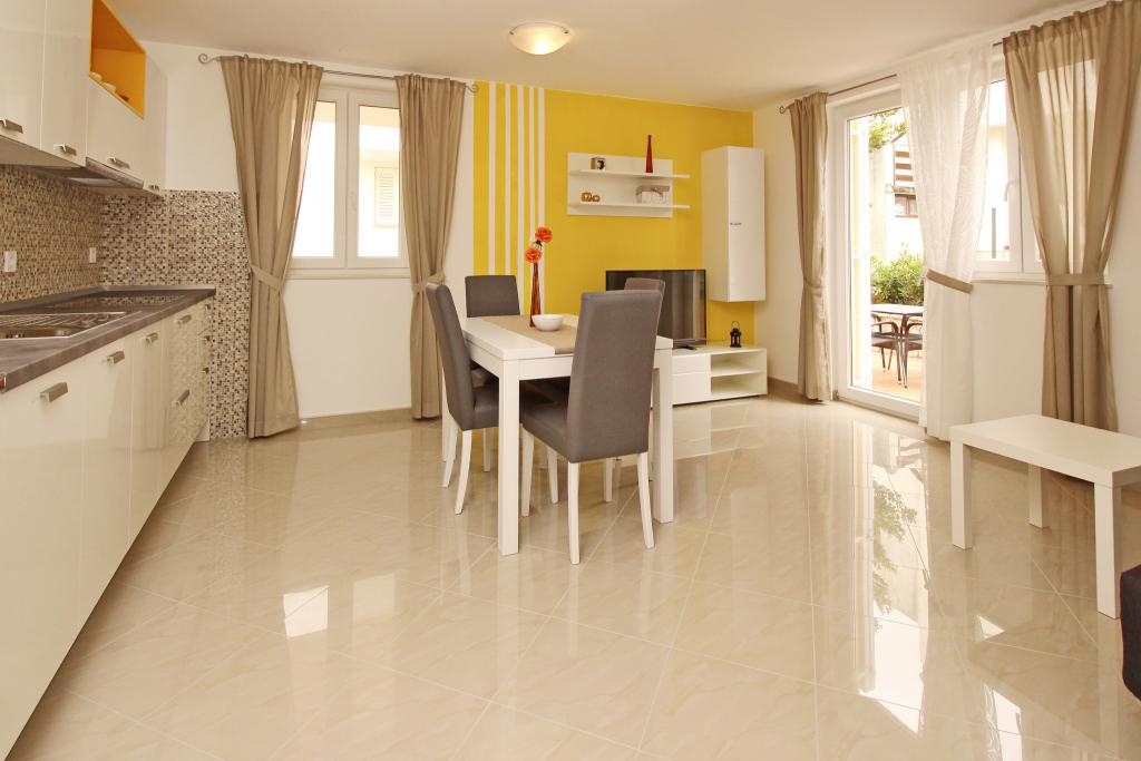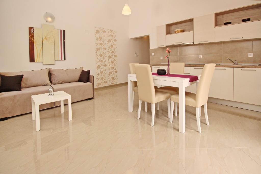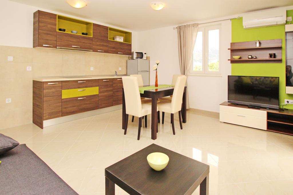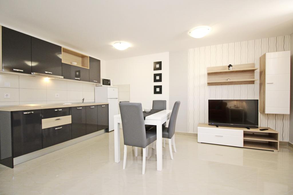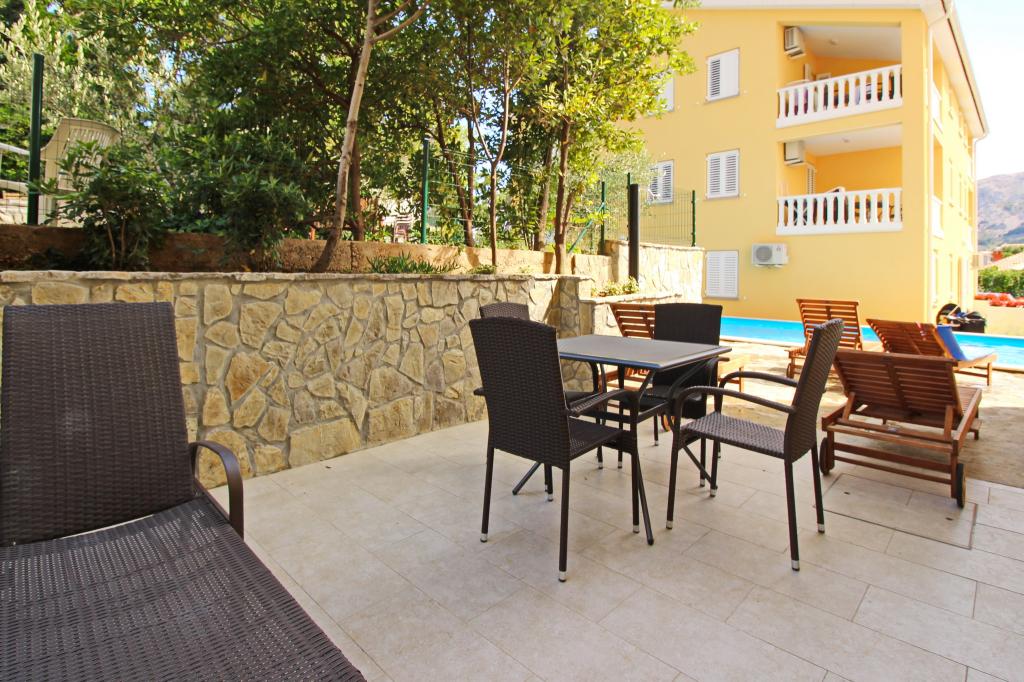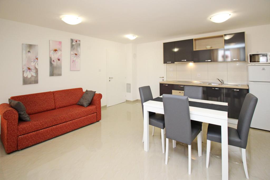 Nowocześnie urządzone apartamenty, zaledwie 300 metrów od pięknej plaży Vela Plaža, ze wspólnym odkrytym basenem i grillem. Dom oferuje 13 apartamentów, z których 4 znajdują się w piwnicy. Apartamenty w piwnicy mają dostęp do wspólnego tarasu (20 m²) na piętrze. Każdy apartament wyposażony jest w zmywarkę, pralkę, klimatyzację, internet i telewizję satelitarną. Goście mają do dyspozycji jedno miejsce parkingowe. Zwierzęta nie są akceptowane.