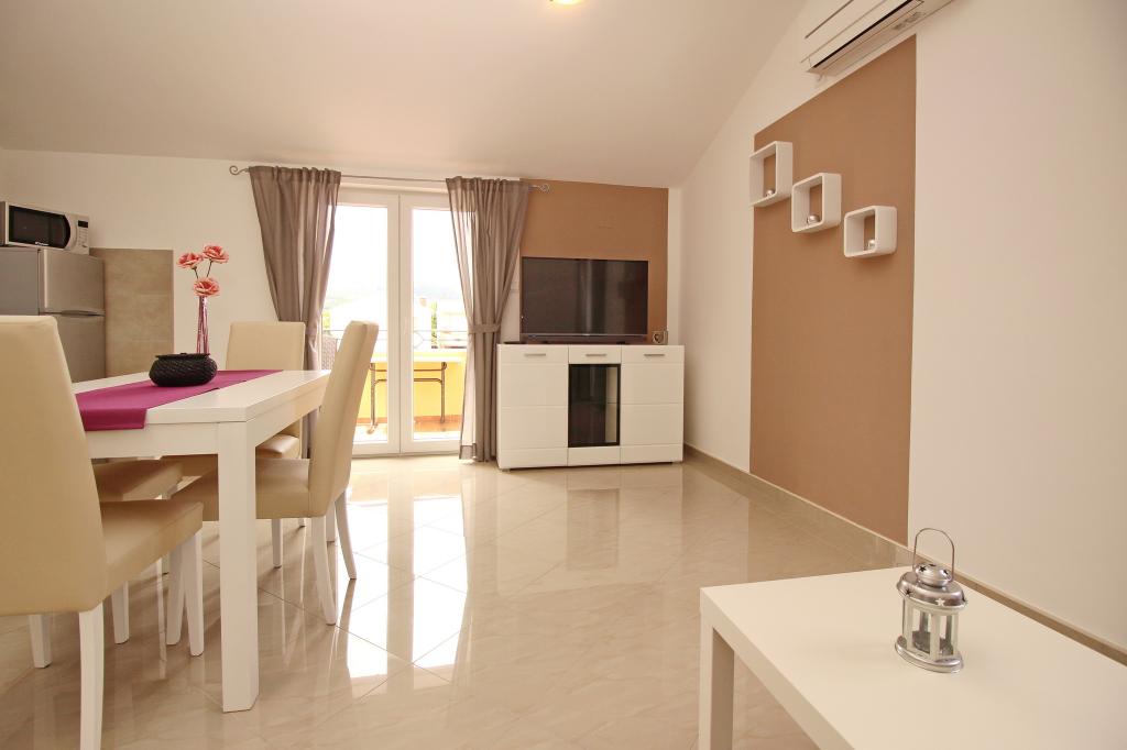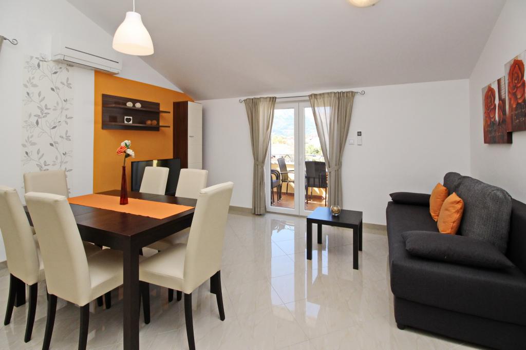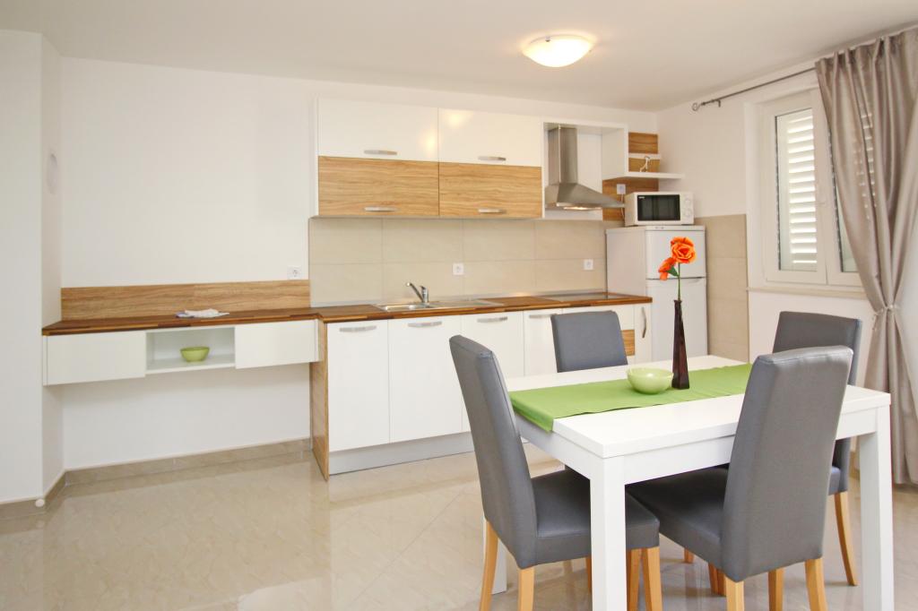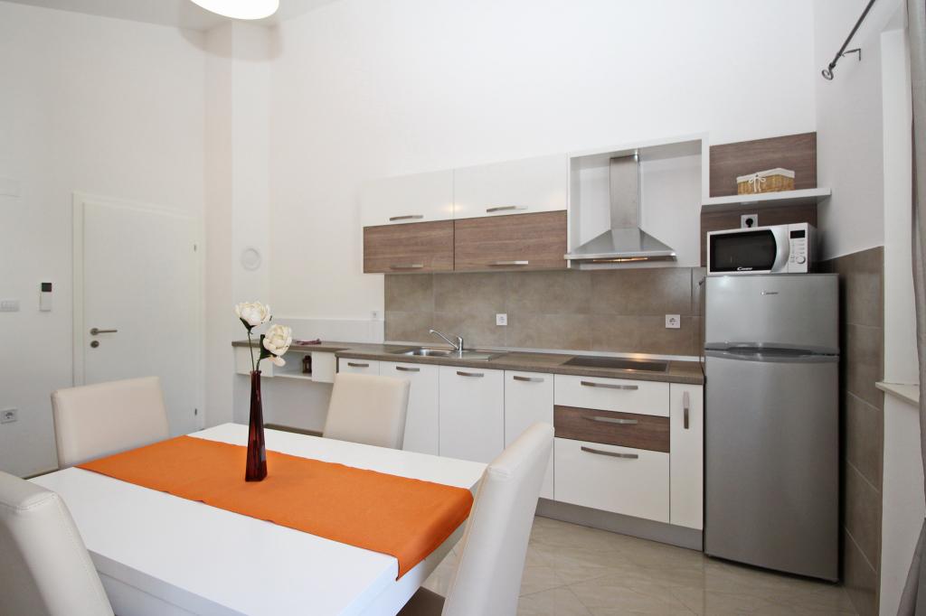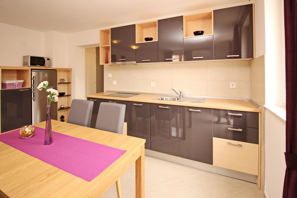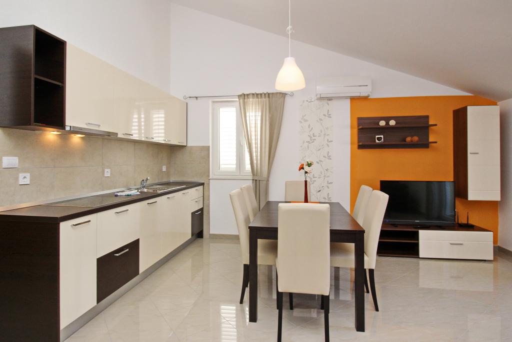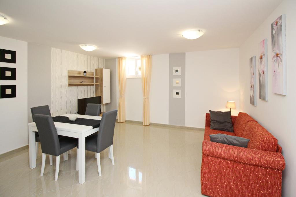 Nowocześnie urządzone apartamenty, zaledwie 300 metrów od pięknej plaży Vela Plaža, ze wspólnym odkrytym basenem i grillem. Dom oferuje 13 apartamentów, z których 4 znajdują się w piwnicy. Apartamenty w piwnicy mają dostęp do wspólnego tarasu (20 m²) na piętrze. Każdy apartament wyposażony jest w zmywarkę, pralkę, klimatyzację, internet i telewizję satelitarną. Goście mają do dyspozycji jedno miejsce parkingowe. Zwierzęta nie są akceptowane.