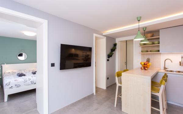 Polecam apartamenty, polecam gospodarza, przemiły, bardzo pomocny. Od samego początku czujesz się zaopiekowany. Mój apartament był w pełni wyposażony, dodatkowo zostaliśmy przywitani owocami i rakija a dzieci słodkim poczęstunkiem. Na miejscu deska SUP, rower, pralnia. Do plaży dosłownie 3minuty, w okolicy piekarnia restauracja lody. Właściciel odpowie na wszystkie pytania i poradzi jak się odnaleźć na miejscu.