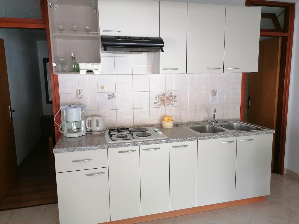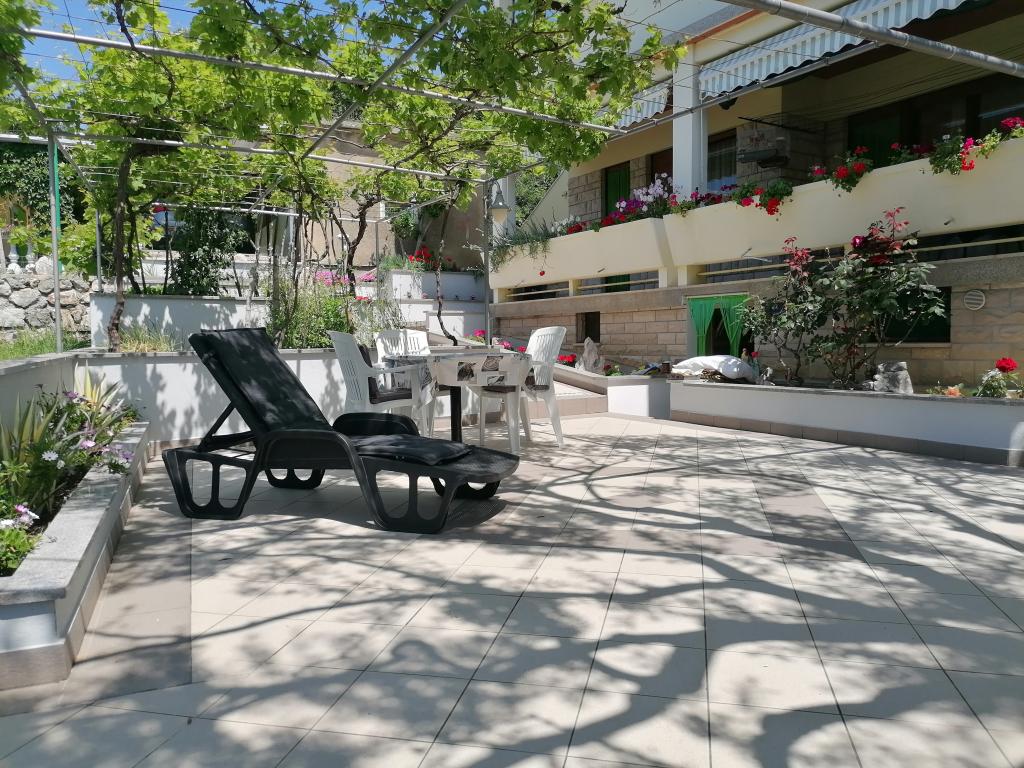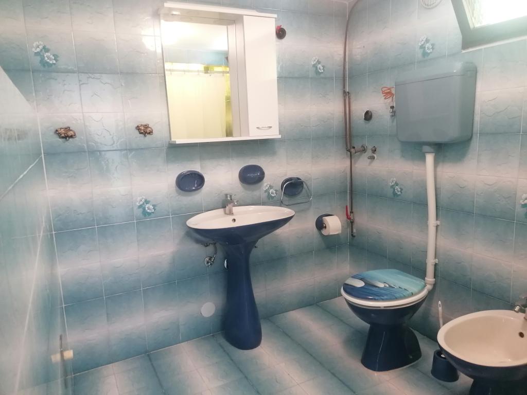 Nasze apartamenty zlokalizowane są w spokojnej okolicy, poza zgiełku. Najbliższe plaże są łatwo dostępne, zaledwie kilka minut spacerem. Centralny do dużej plaży zajmuje 7-8 minut, 10 minut do sklepów, bankomatów, aptek. Pierwsza restauracja znajduje się 5 minut spacerem. Duży apartament dla 1 osoby A6 jest na parterze i składa się z trzech sypialni z dodatkowym łóżkiem pojedynczym w jednej sypialni, dwie łazienki z prysznicami, kuchnia, jadalnia, salon, dwa balkony, taras, parking. Mniejszy apartament A2 jedna osoba na parterze z widokiem na morze. Posiada jedną sypialnię, łazienkę, pokój dzienny z sofą, która jest też trzecie łóżko, kuchnia, taras i parking. Studio znajduje się w piwnicy domu, Powierzchnia apartamentu, gdzie najmniejsza sypialnia i kuchnia znajduje się we wspólnym obszarze, a następnie łazienką i dużym tarasem na relaks.