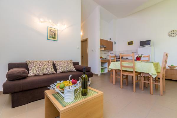 Villa Mirica 4 stars - oferuje 4 nowoczesne, w pełni i nowocześnie wyposażone apartamenty (2 i 2). Powierzchnia: 40 m², z 10 m² zadaszonego prywatnego tarasu w spokojnej okolicy Baški z widokiem na ogród i cichą ulicę. Obiekt znajduje się 5 minut spacerem od plaży Vela i wszystkich udogodnień. Piękne apartamenty Mirica składają się z jednej sypialni dwuosobowej, łazienki z prysznicem, suszarką do włosów, pralką i detergentem, kuchni ze zmywarką, lodówką i suszarką do włosów, salonu z rozkładaną sofą i 5-centymetrowym materacem dla wygody, deski do prasowania i żelazka, tostera, czajnika, kuchenki mikrofalowej i frytkownicy. Jeden apartament może pomieścić do 4 osób. Apartamenty są nowocześnie wyposażone i oferują bezpłatne Wi-Fi, bezpłatny parking z panelami słonecznymi, klimatyzację, prywatny taras, telewizor, telewizję satelitarną, sejf, pościel i ręczniki. Wszystkie 4 nasze apartamenty są identyczne i identycznie wyposażone. Na parkingu znajduje się bezpłatna stacja ładowania pojazdów elektrycznych - na życzenie! W ogrodzie do dyspozycji gości jest grill. Łóżeczko dziecięce i krzesełko do karmienia są dostępne na życzenie.