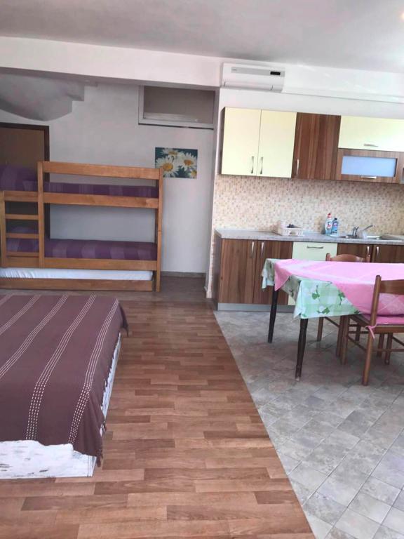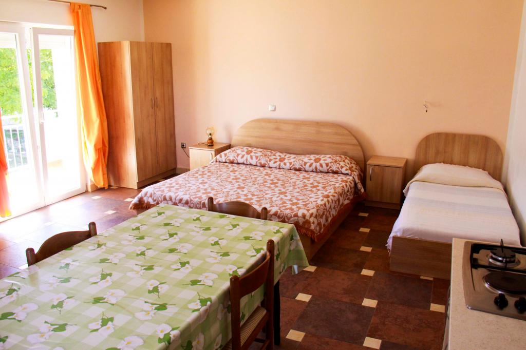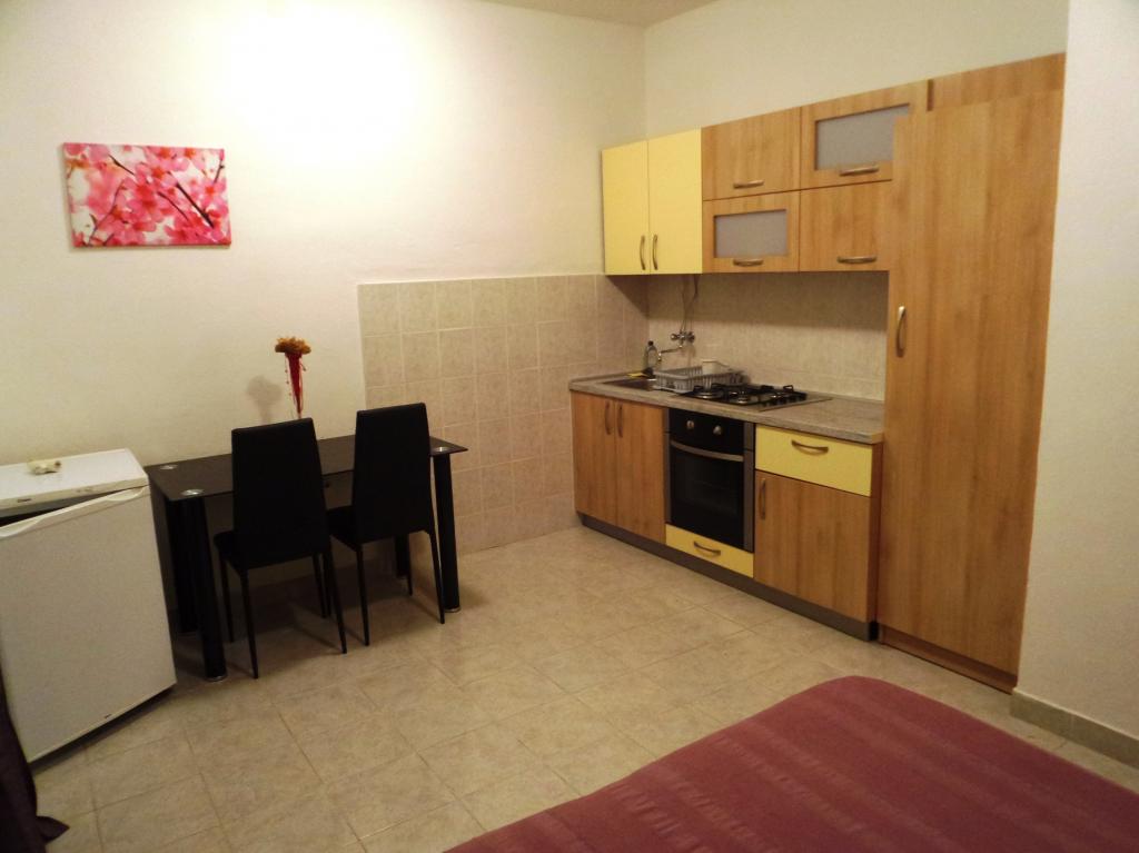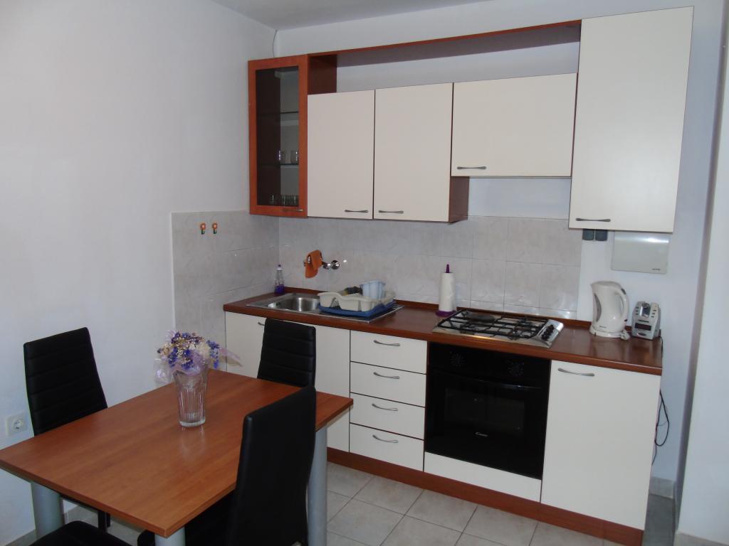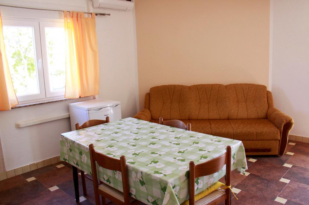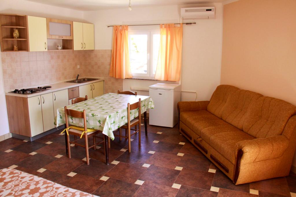 Wynajmę w pełni umeblowane mieszkanie, które składa się z salonu połączonego z kuchnią ze wszystkimi niezbędnymi naczyniami, płytą grzewczą, stołem i krzesłami, lodówką. Każdy apartament posiada łazienkę z prysznicem i znajduje się wewnątrz mieszkania. Apartamenty wyposażone są w klimatyzację i TV. Bezpłatny dostęp do internetu. Bezpłatny parking przed budynkiem. Korzystanie z tarasu przed apartamentem ze stołem i siedzeniami. Możliwość niedrogiego transportu taksówką do iz mieszkania (60kn/osoba, min dwie osoby). Basen jest dostępny do użytku od 01.06.-15.09.
