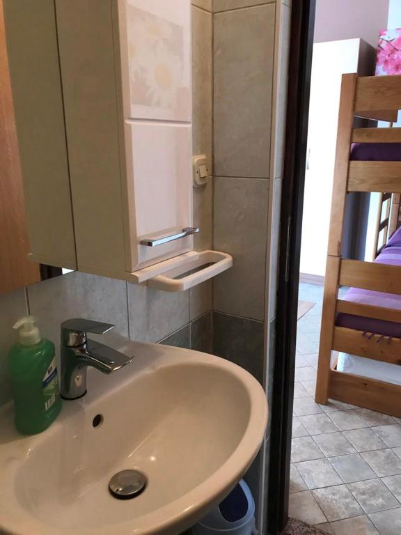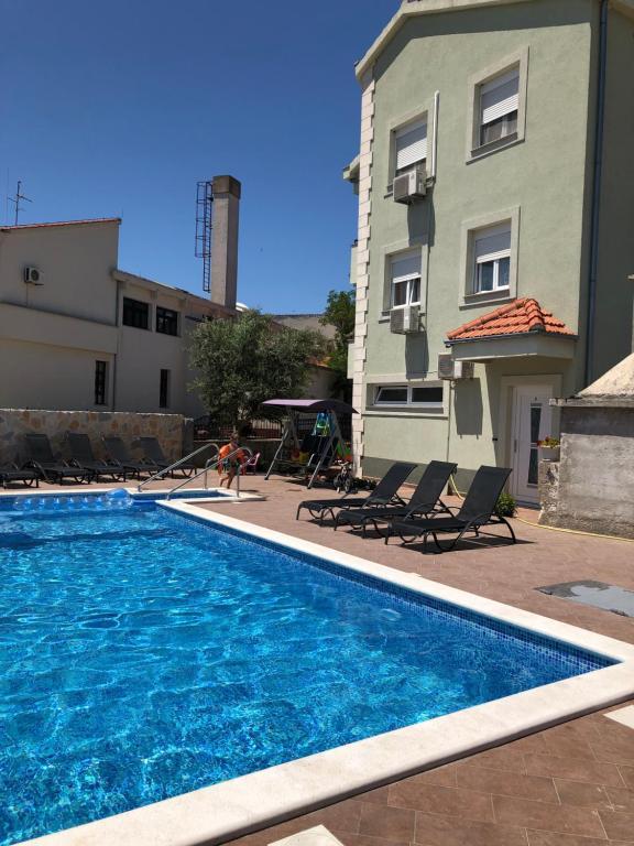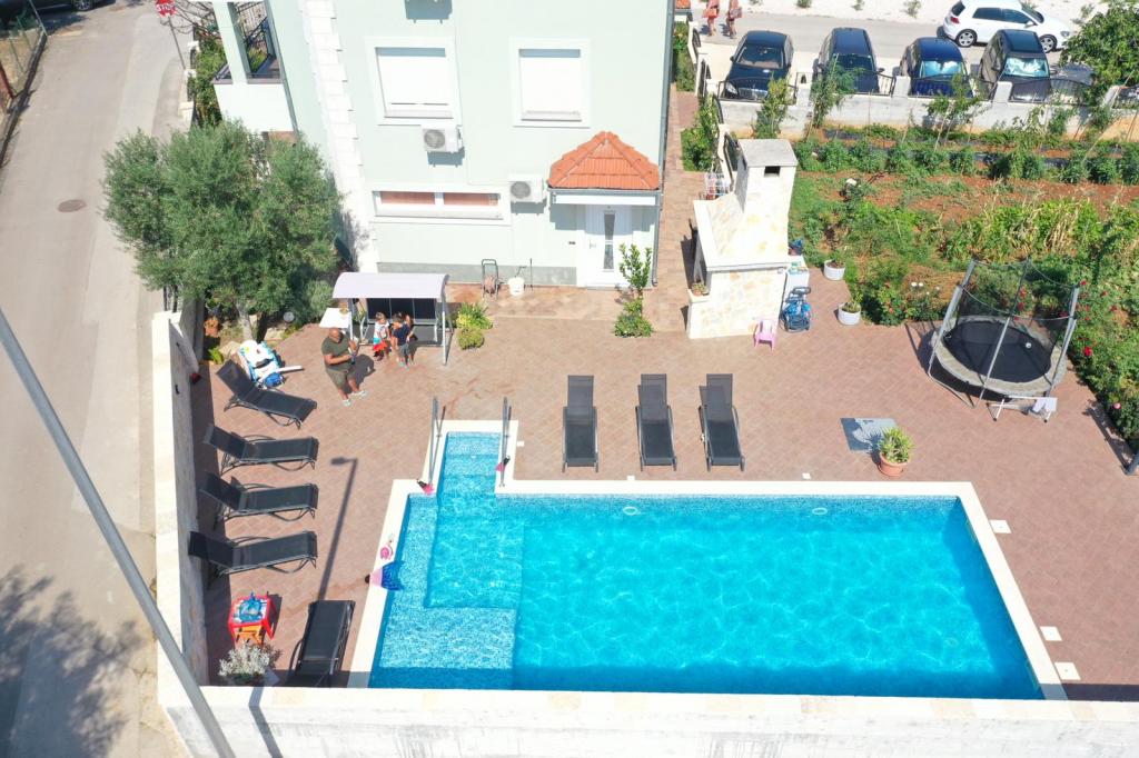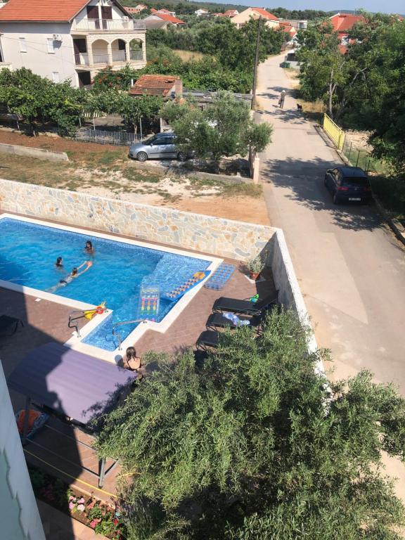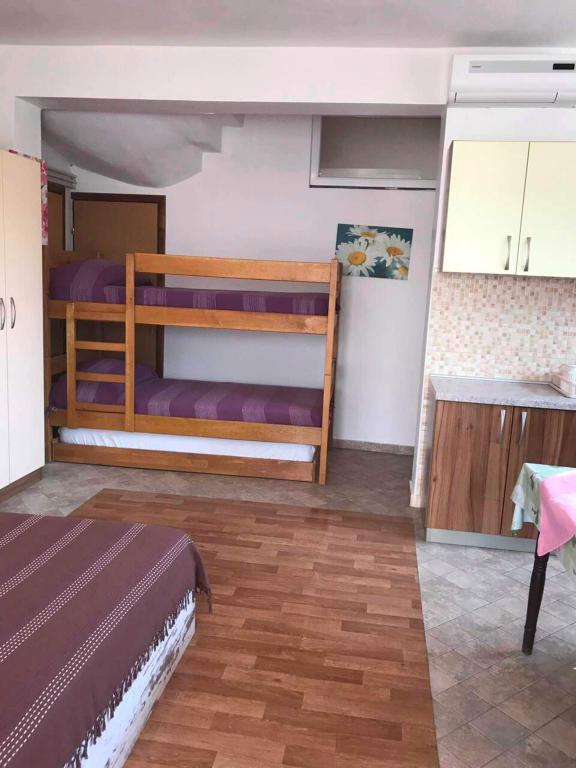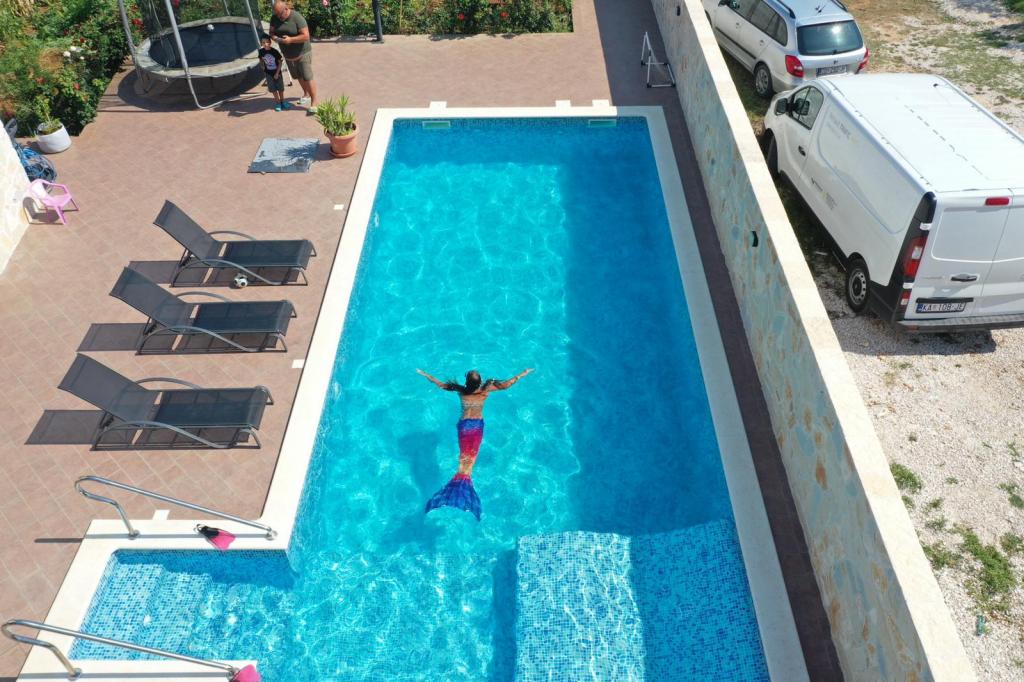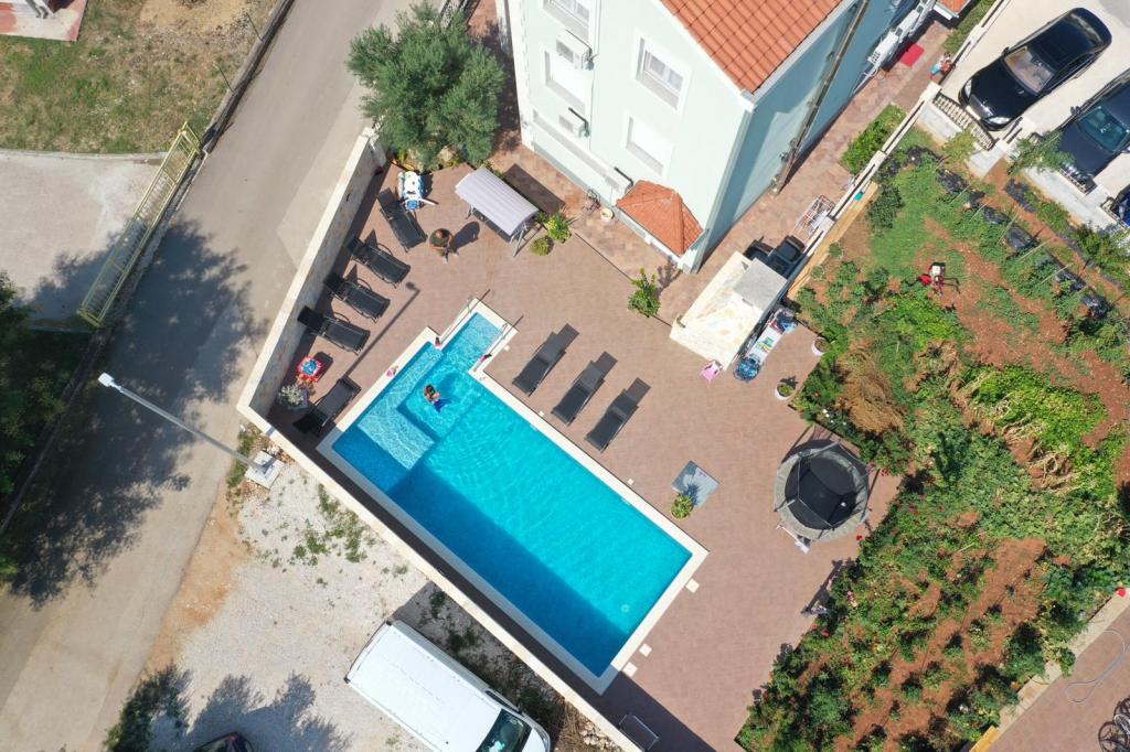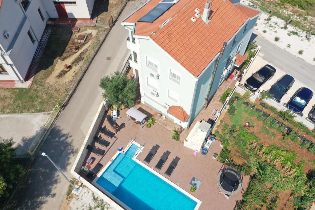 Wynajmę w pełni umeblowane mieszkanie, które składa się z salonu połączonego z kuchnią ze wszystkimi niezbędnymi naczyniami, płytą grzewczą, stołem i krzesłami, lodówką. Każdy apartament posiada łazienkę z prysznicem i znajduje się wewnątrz mieszkania. Apartamenty wyposażone są w klimatyzację i TV. Bezpłatny dostęp do internetu. Bezpłatny parking przed budynkiem. Korzystanie z tarasu przed apartamentem ze stołem i siedzeniami. Możliwość niedrogiego transportu taksówką do iz mieszkania (60kn/osoba, min dwie osoby). Basen jest dostępny do użytku od 01.06.-15.09.