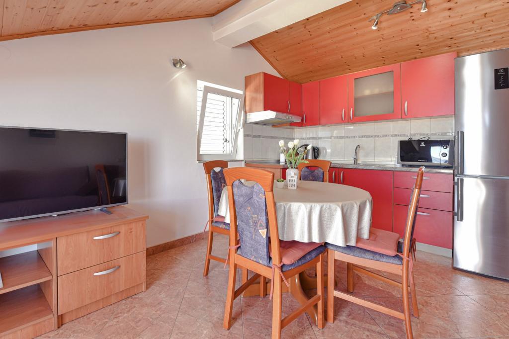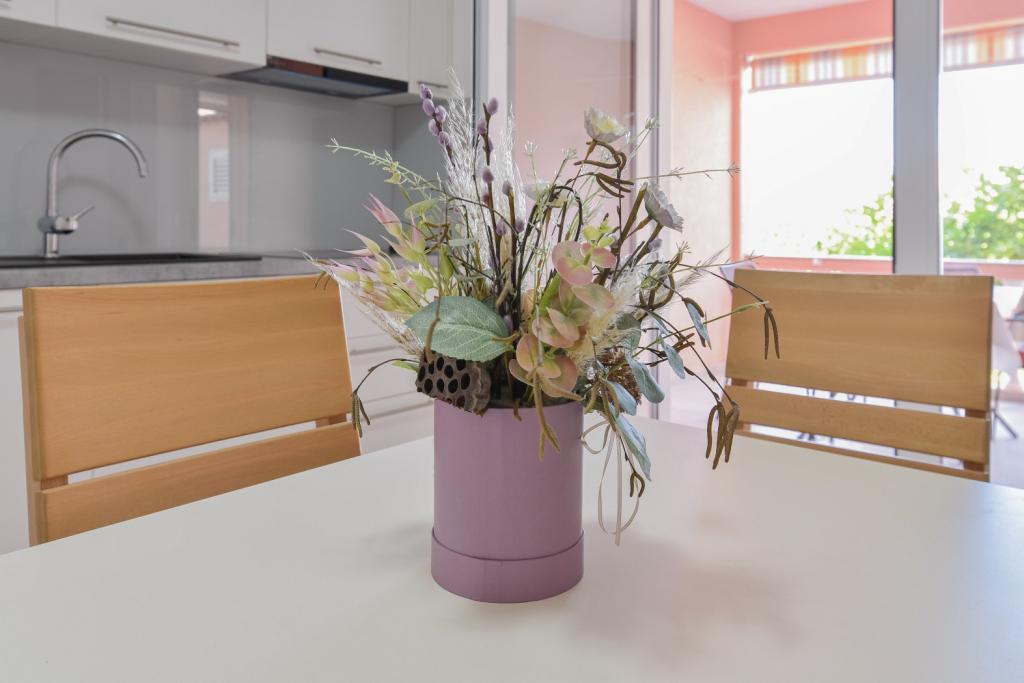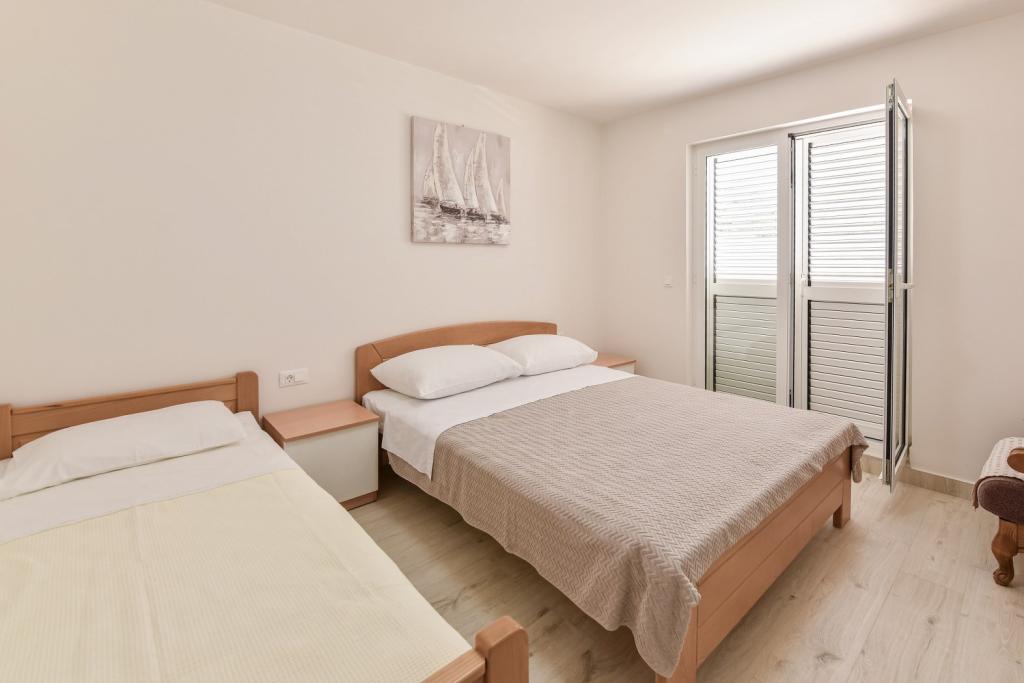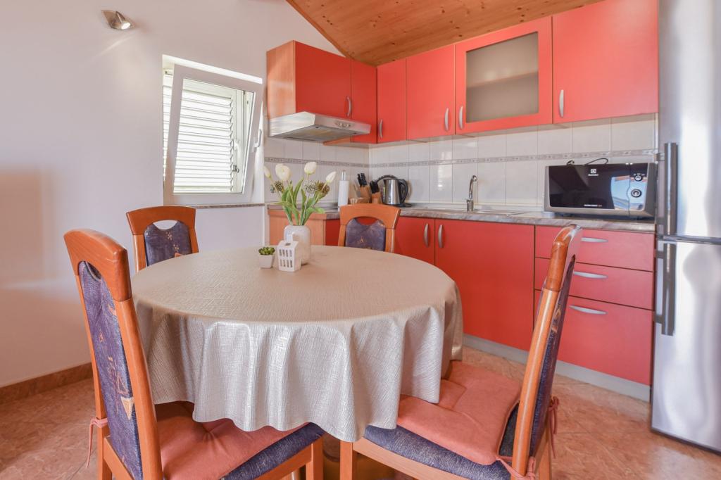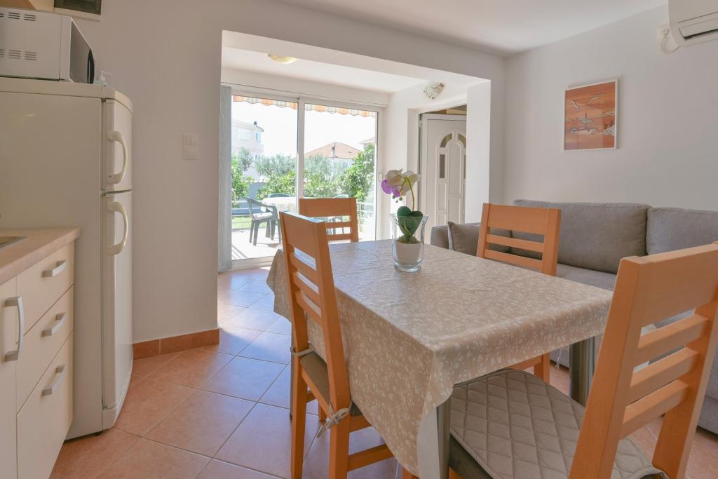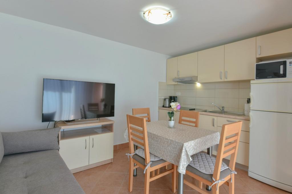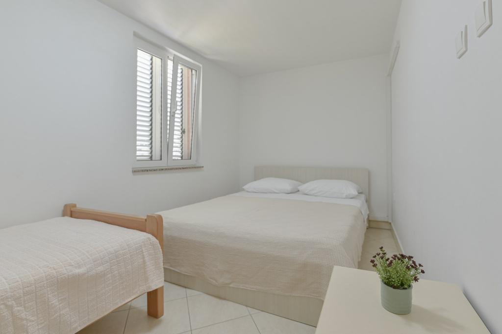 Gratulacje dla rodziny Frleti! Przyjęli nas ciepło i przyjaźnie. Mieszkanie było schludne, czyste, wyposażone w naczynia, pościel, telewizor, klimatyzację i WiFi. Tak jak jest na zdjęciach, tak jest w rzeczywistości. Mieszkanie jest przestronne, ładnie urządzone, łóżka są wygodne do spania. Posiada duży taras z markizą, z której można podziwiać widok na śródziemnomorski ogród rodziny Frlete. Duża liczba zadbanych plaż z czystym, błękitnym morzem i pięknie zdobionymi promenadami wzdłuż morza z dużą liczbą restauracji i barów. Idealny do ucieczki od hałasu i codziennego życia. Spokój, cisza z dźwiękiem świerszczy, krzykiem mew i szumem morza. Czysty hedonizm!