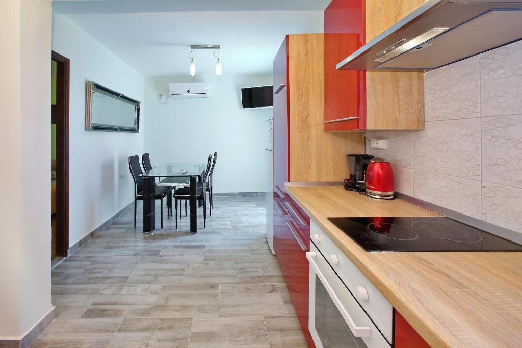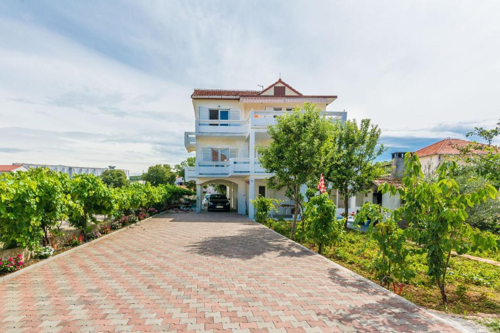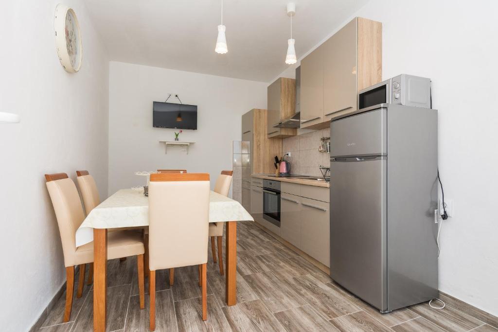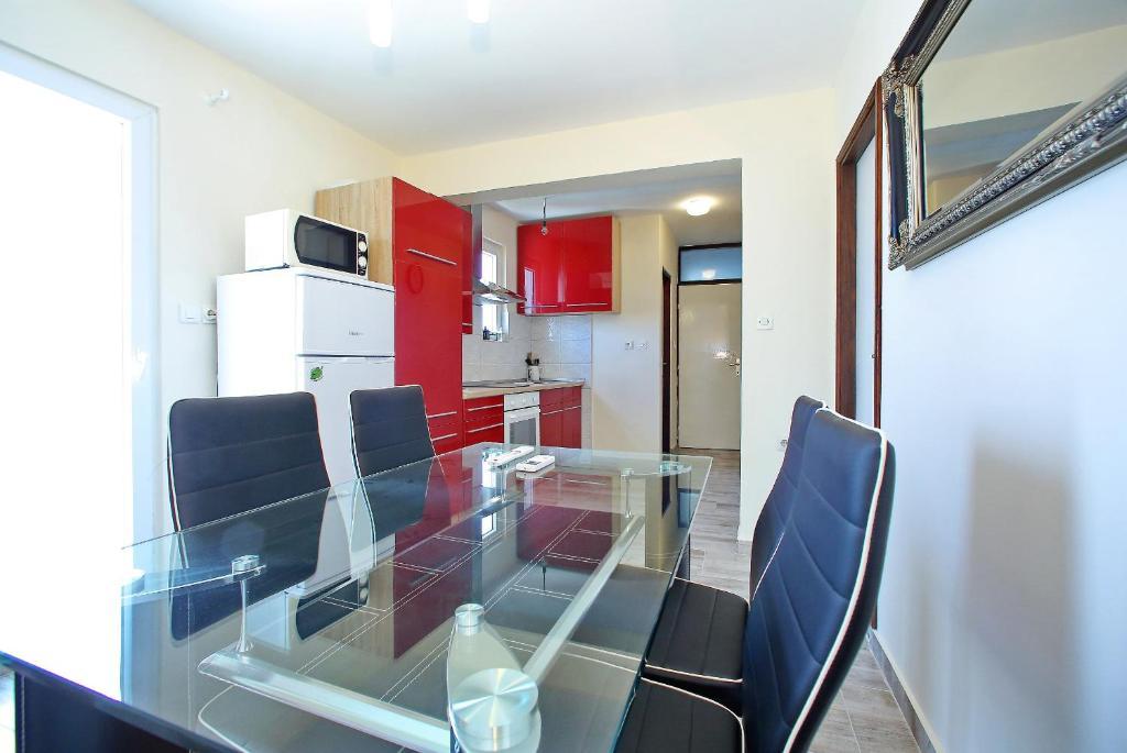Apartamenty Mirko i Ana położone są 400 metrów od plaży Punta Rožica i wyposażone są w klimatyzację, Wi-Fi oraz prywatny parking. Te trzygwiazdkowe apartamenty dysponują prywatnym basenem. Apartamenty oferują gościom prywatne tarasy, widoki na ogród i basen, część wypoczynkową i jadalną, telewizor oraz wyposażoną kuchnię z prywatną łazienką. W każdym apartamencie znajduje się pościel i ręczniki. Goście mogą również korzystać z grilla i mebli ogrodowych na podwórku. Goście mogą również zrelaksować się przy basenie na leżakach z parasolami. Marina Dalmacija oddalona jest od apartamentu o 1 km, a plaża Škaljica - o 700 metrów. Najbliższe lotnisko znajduje się w odległości 9 km.