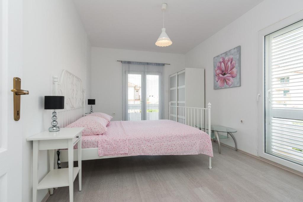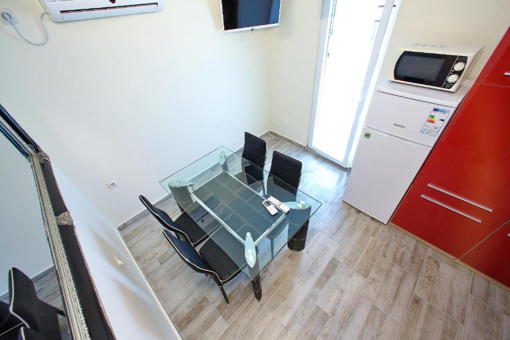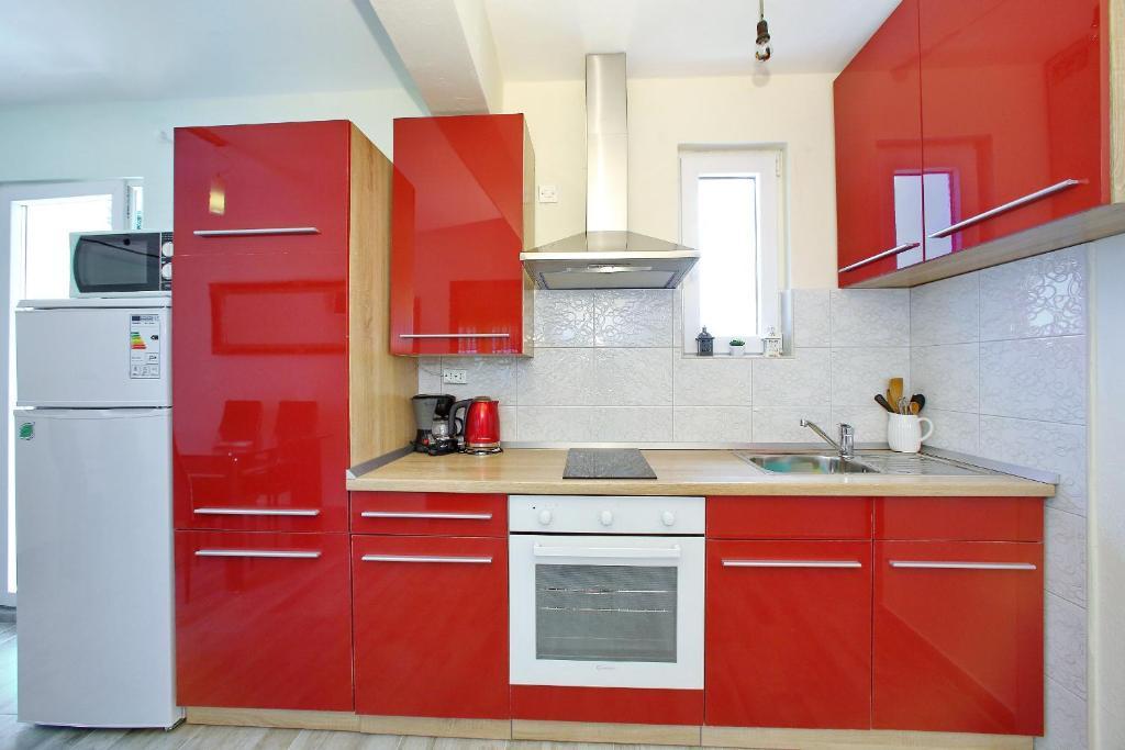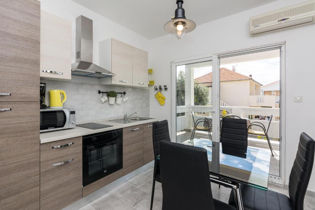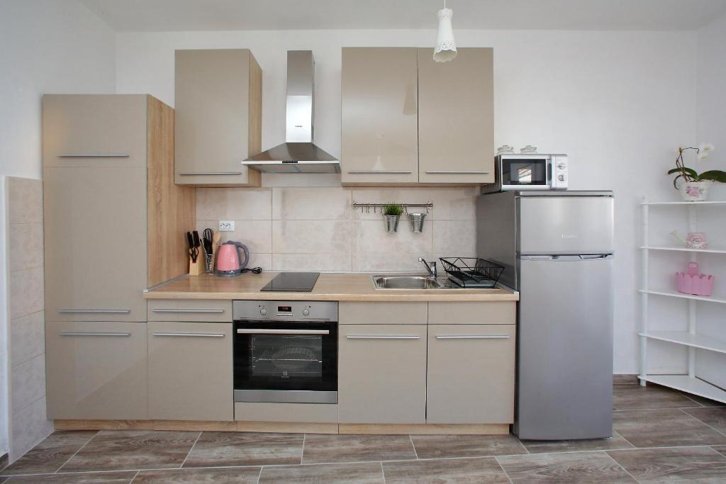 Apartamenty Mirko i Ana położone są 400 metrów od plaży Punta Rožica i wyposażone są w klimatyzację, Wi-Fi oraz prywatny parking. Te trzygwiazdkowe apartamenty dysponują prywatnym basenem. Apartamenty oferują gościom prywatne tarasy, widoki na ogród i basen, część wypoczynkową i jadalną, telewizor oraz wyposażoną kuchnię z prywatną łazienką. W każdym apartamencie znajduje się pościel i ręczniki. Goście mogą również korzystać z grilla i mebli ogrodowych na podwórku. Goście mogą również zrelaksować się przy basenie na leżakach z parasolami. Marina Dalmacija oddalona jest od apartamentu o 1 km, a plaża Škaljica - o 700 metrów. Najbliższe lotnisko znajduje się w odległości 9 km.