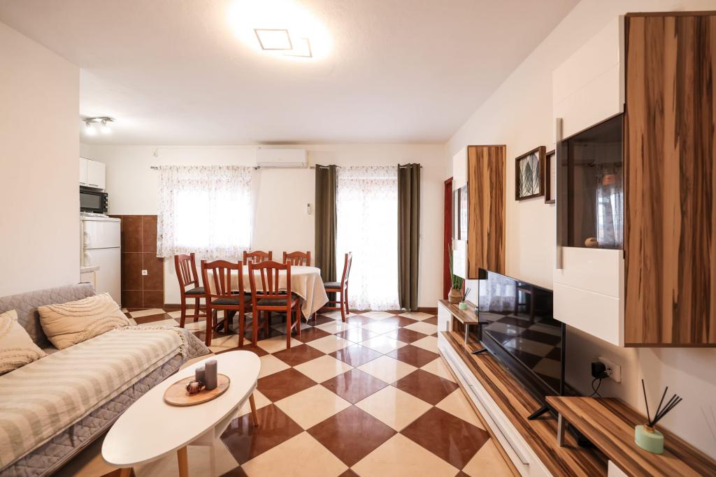 W pełni wyposażone apartamenty znajdują się w bezpośrednim sąsiedztwie Zadaru, w Bibinje, w trzecim rzędzie od morza. Plaża znajduje się zaledwie kilka minut spacerem od obiektu. Centrum miasta wraz z całą infrastrukturą jest oddalone o 500 m, natomiast do głównego dworca autobusowego i lotniska ok. 5 km. W pobliżu znajdują się także 4 parki narodowe, do których można dojechać zorganizowaną komunikacją lub samochodem. Bibinje to miejsce z wieloma ofertami. Kawiarnie i restauracje z bogatą ofertą gastronomiczną rozciągają się wzdłuż całego wybrzeża. Prawie codziennie w mieście odbywają się także wydarzenia kulturalne, od festynów wędkarskich po rozmaite koncerty.