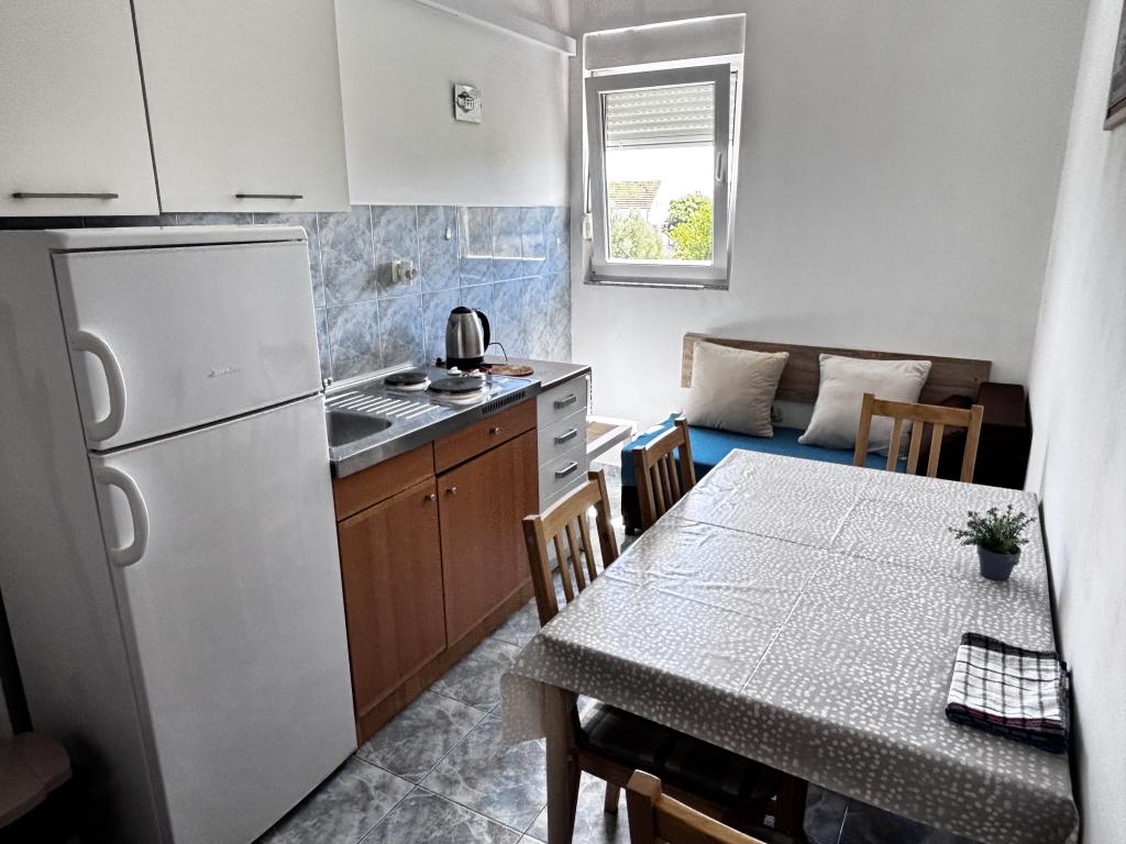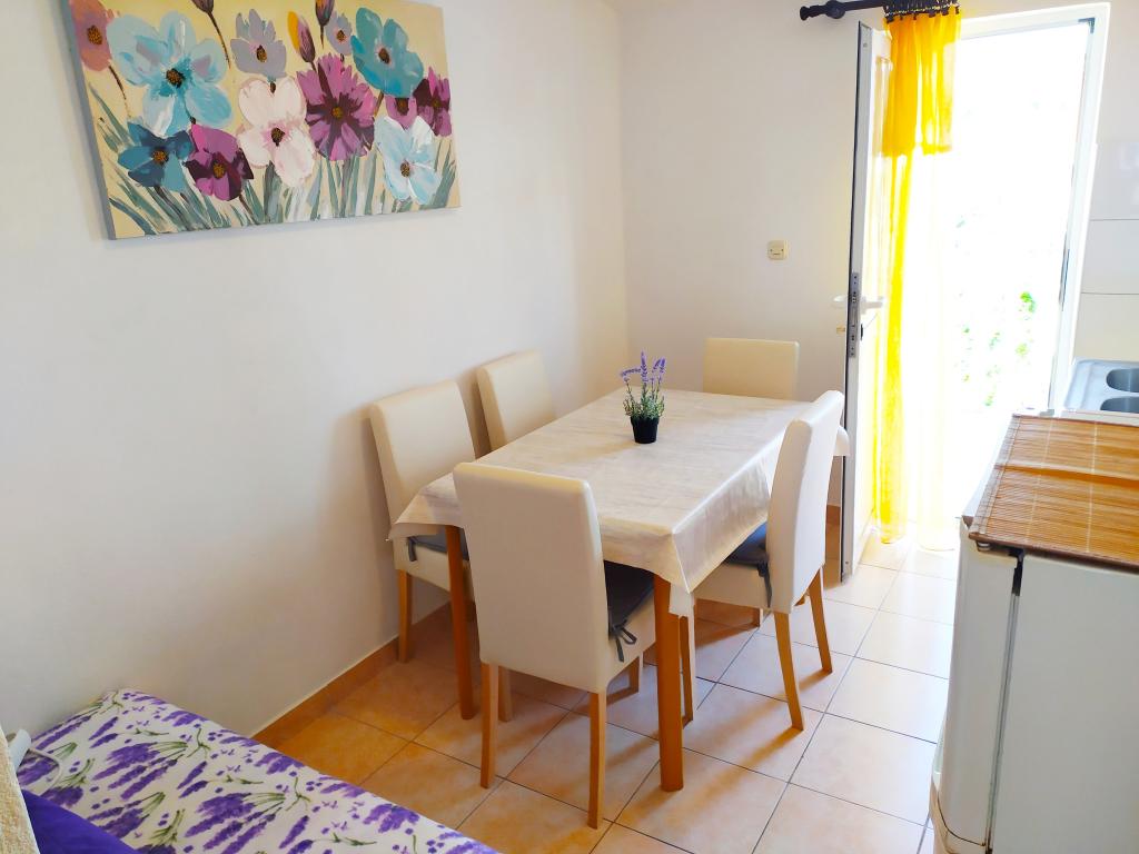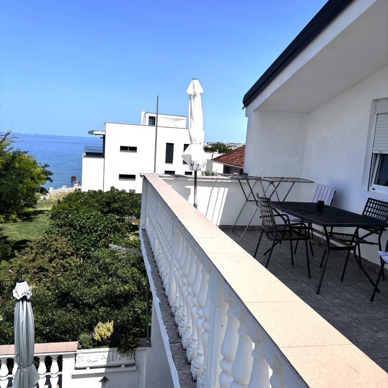 Dom rodzinny położony jest w spokojnej części miasta, tuż przy plaży Punta Rožica, w pierwszym rzędzie do morza. Plaża znajduje się 10 metrów od obiektu. Obiekt jest odpowiedni dla rodzin z dziećmi. Plaża jest również odpowiednia dla osób nieumiejących pływać. Do wynajęcia są 1. i 2. piętro. Mieszkamy na parterze, którego nie wynajmujemy. Posiadamy 6 apartamentów i jeden pokój dwuosobowy z łazienką i oddzielną kuchnią. W pobliżu znajduje się market, fast food i restauracje – wszystko w promieniu 200 metrów. Na terenie obiektu znajduje się parking. Zwierzęta są akceptowane w niektórych apartamentach za dodatkową opłatą 5 euro za dobę.