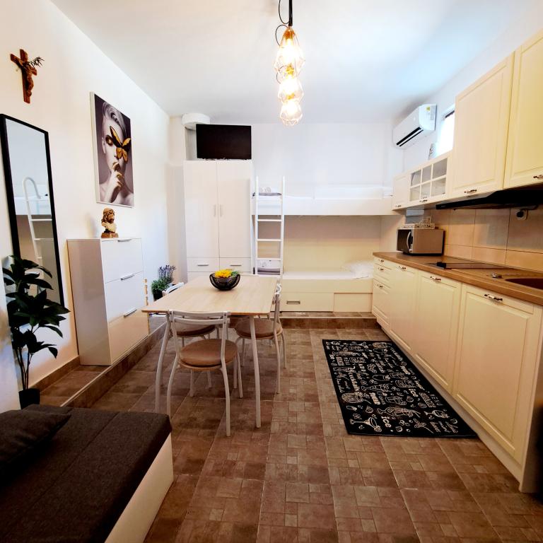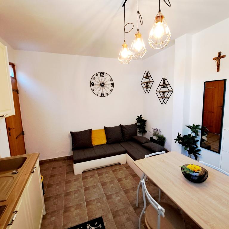 Piękny apartament, wszystko bardzo czyste i zadbane. Duży taras, podwórko, cień i spokój. Do plaży 2 min. A gospodarze bardzo mili, zawsze do Państwa dyspozycji, gościnni, cudowni. W otoczeniu naszych drogich przyjaciół czuliśmy się jak w domu. Apartamenty i gospodarzy polecam każdemu kto chce cieszyć się spokojem a jednocześnie być blisko morza.