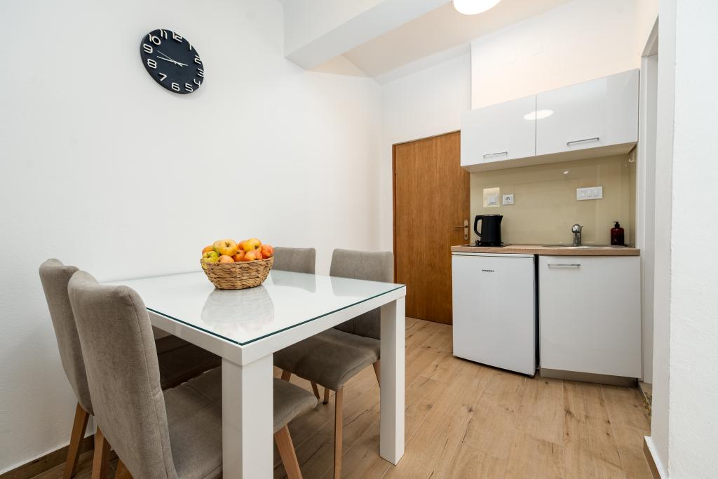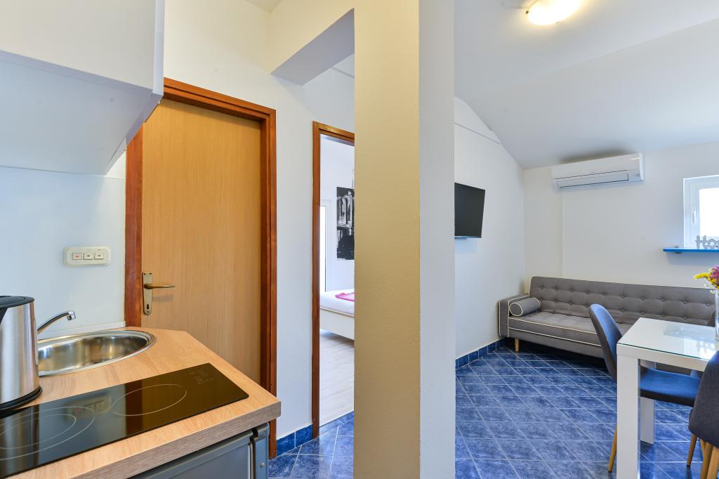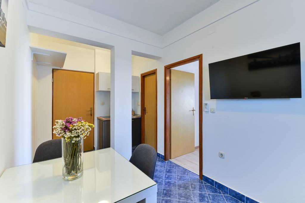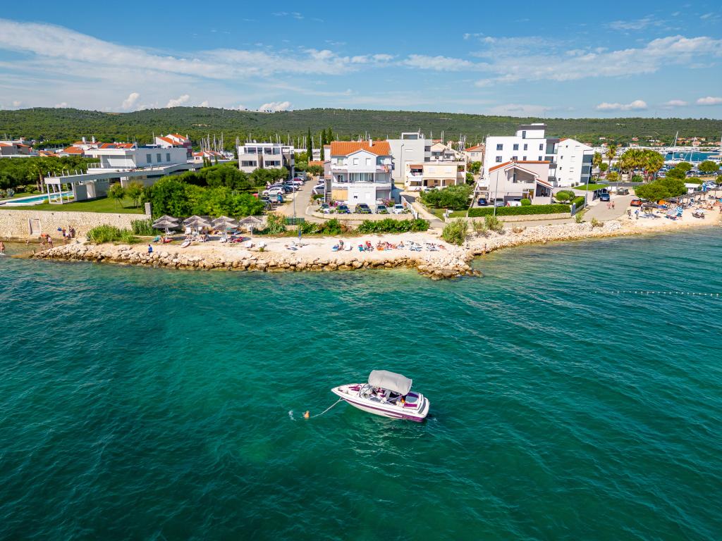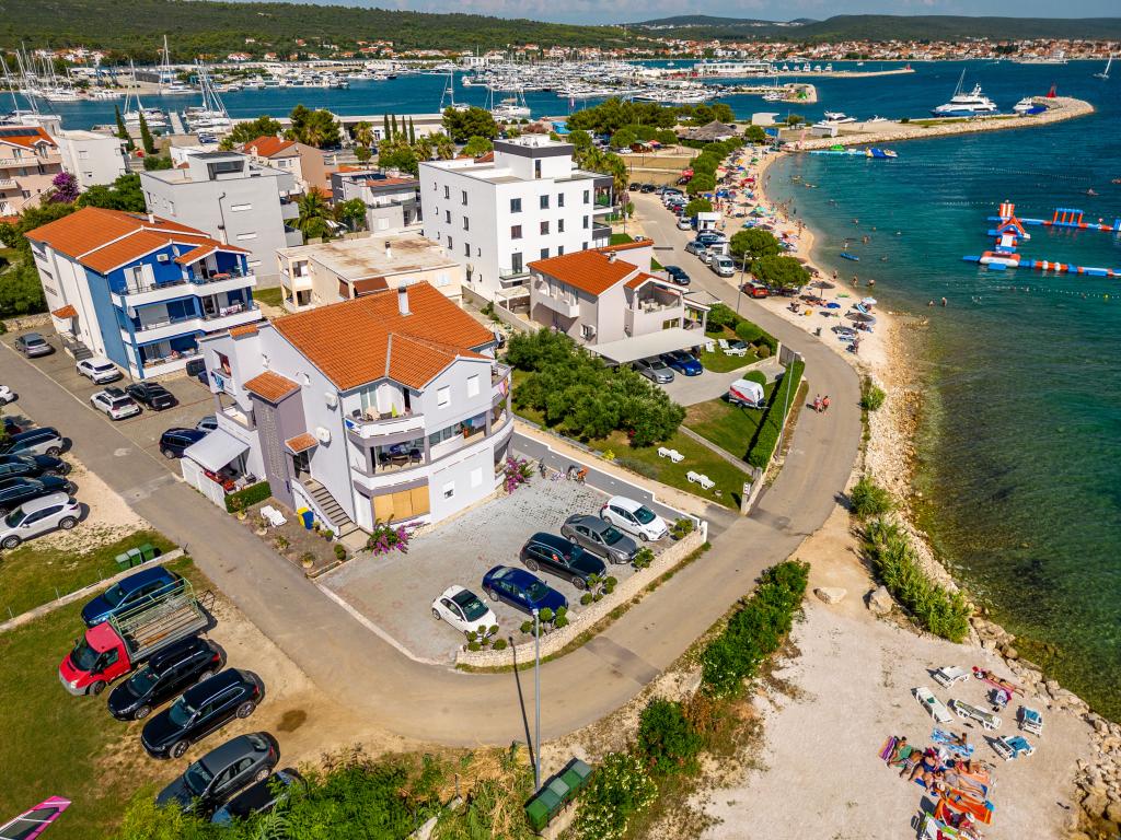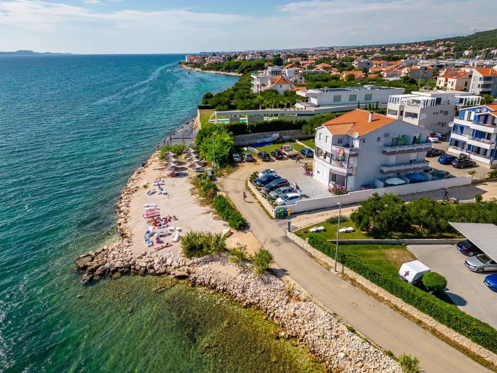 Apartamenty Suzy znajdują się w turystycznej części Bibinje o nazwie „Kraj Punta”. Obiekt położony jest w pierwszym rzędzie do morza, skąd roztacza się piękny widok na Morze Adriatyckie i wyspy Dalmacji. Odległość od starożytnego miasta Zadar wynosi 10 minut jazdy samochodem, gdzie znajduje się kilka dużych centrów handlowych. W promieniu 30 km znajdują się trzy parki narodowe: PN Paklenica, PN Kornati i PN Krka. Wycieczki do parków narodowych są również organizowane z Bibinje lub Zadaru. Wszystkie apartamenty są klimatyzowane, wyposażone w prywatną łazienkę, taras, telewizor z kanałami satelitarnymi i wyposażoną kuchnię. Najbliższa restauracja i sklep znajdują się 150 metrów od obiektu. Kawiarnia i bar koktajlowy oddalone są o 50 metrów. Plaża znajduje się 10 metrów od obiektu, a na niej Goście mogą wypożyczyć skuter wodny, uprawiać windsurfing lub grać w siatkówkę plażową. Obiekt oferuje bezpłatne Wi-Fi, bezpłatny parking i prywatne leżaki. Na przyjemny letni wypoczynek w promieniach słońca i zapachu morza, Apartamenty Suzy