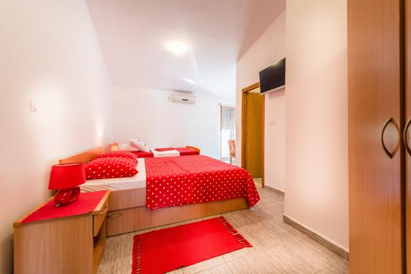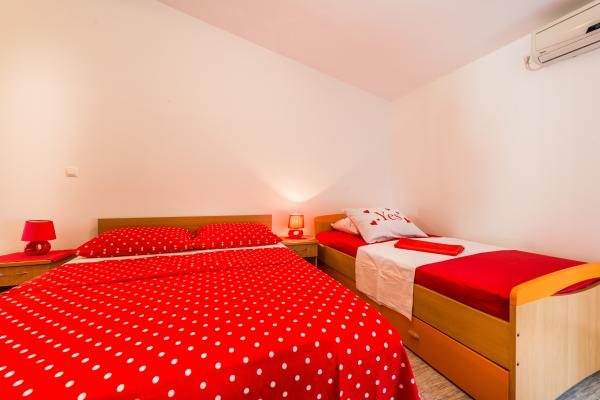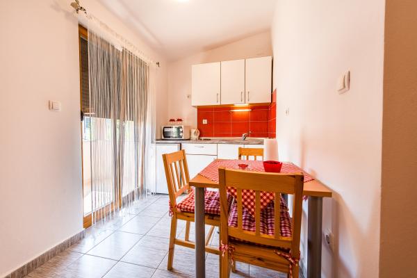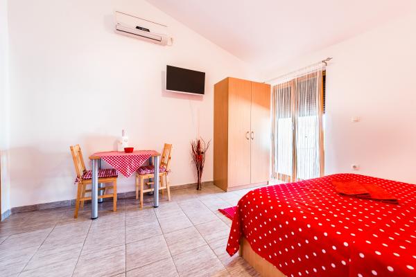 Oferujemy dwa nowo urządzone apartamenty typu studio o różnych rozmiarach. Każdy z nich wyposażony w pełną akcesoriów kuchennych, ręczników, a jeśli trzeba, również grill. Jest to możliwe do wykorzystania w ogrodzie. W apartamentach znajduje się także telewizor z dostępem do kanałów telewizji satelitarnej oraz klimatyzację. Apartamenty Duje posiadają tarasy z widokiem na ogród, z małym tarasem apartamentów roztacza się widok na morze. Dla swojego miejsca parkingowe. Do morza jest około 3 min. spacer