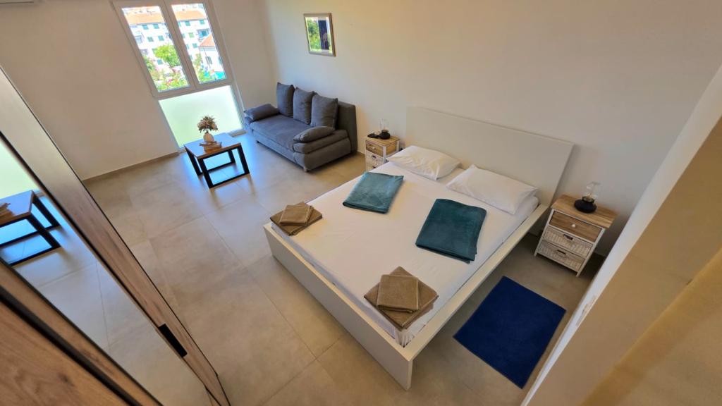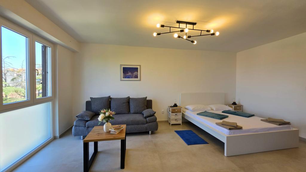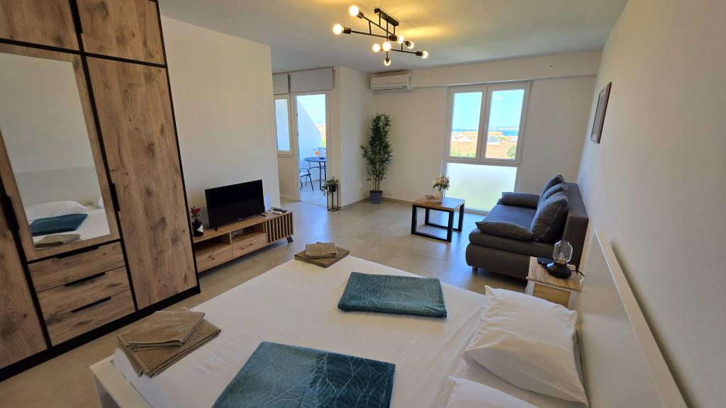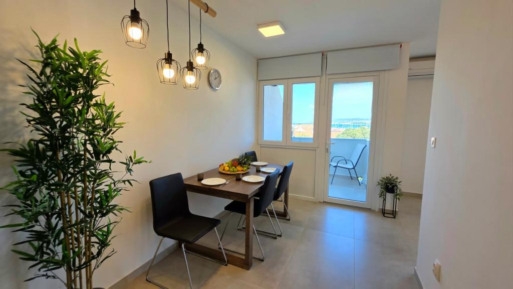 Nowo wyremontowany apartament w centrum Biogradu. W pobliżu znajdują się wszystkie niezbędne udogodnienia, takie jak restauracje, kawiarnie, cukiernie, sklepy itp. Plaża oddalona jest o 5 minut spacerem. Z balkonu roztacza się widok na morze i centrum Biogradu. Apartament wyposażony jest w zmywarkę i pralkę. W pobliżu znajduje się dworzec autobusowy. Apartament znajduje się na czwartym piętrze w budynku bez windy.