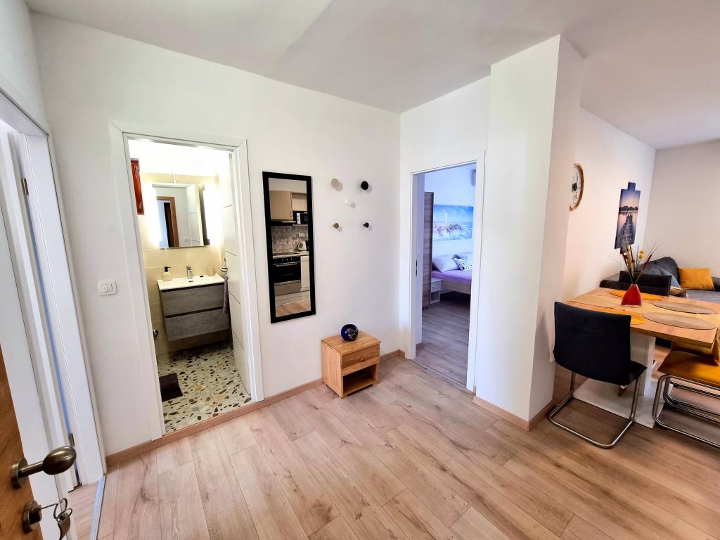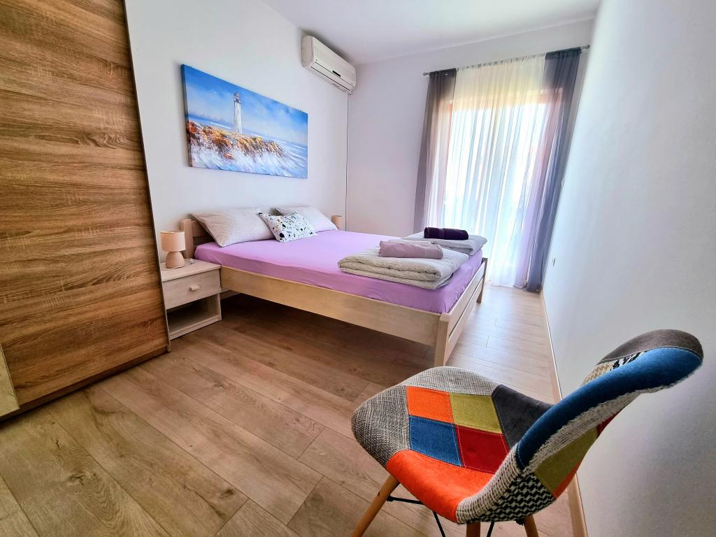 W pełni wyposażony i nowoczesny apartament z dwiema sypialniami dla 4 osób w Biogradzie na Moru. Obiekt położony jest w spokojnej części centrum, zaledwie kilka minut spacerem od plaży Dražice. Promenada i nabrzeże z restauracjami i kawiarniami znajdują się w równie bliskiej odległości. Na terenie obiektu znajduje się parking na jeden samochód. Apartament składa się z dwóch oddzielnych pokoi, każdy z własną klimatyzacją, dwiema łazienkami i w pełni wyposażoną kuchnią.